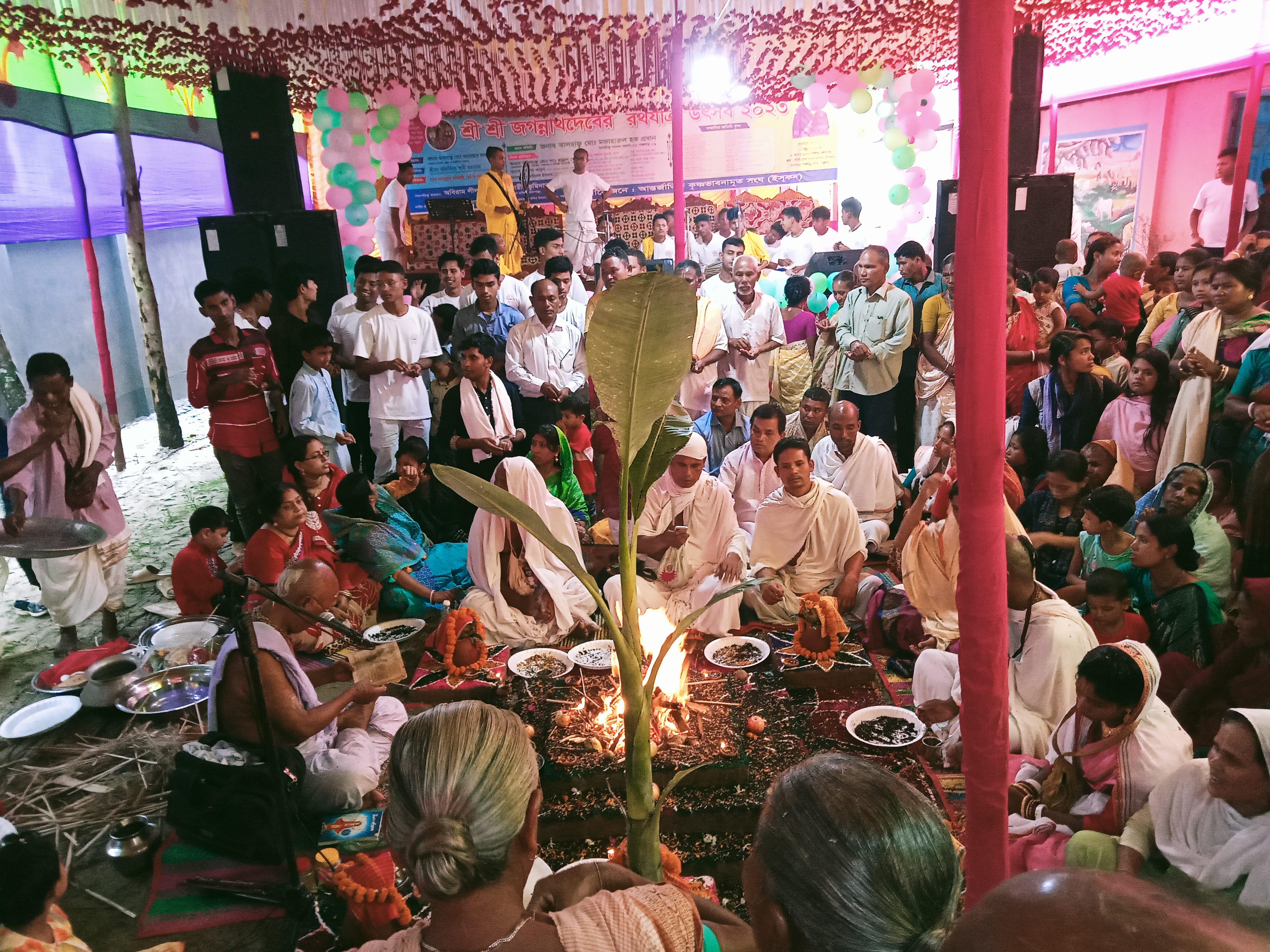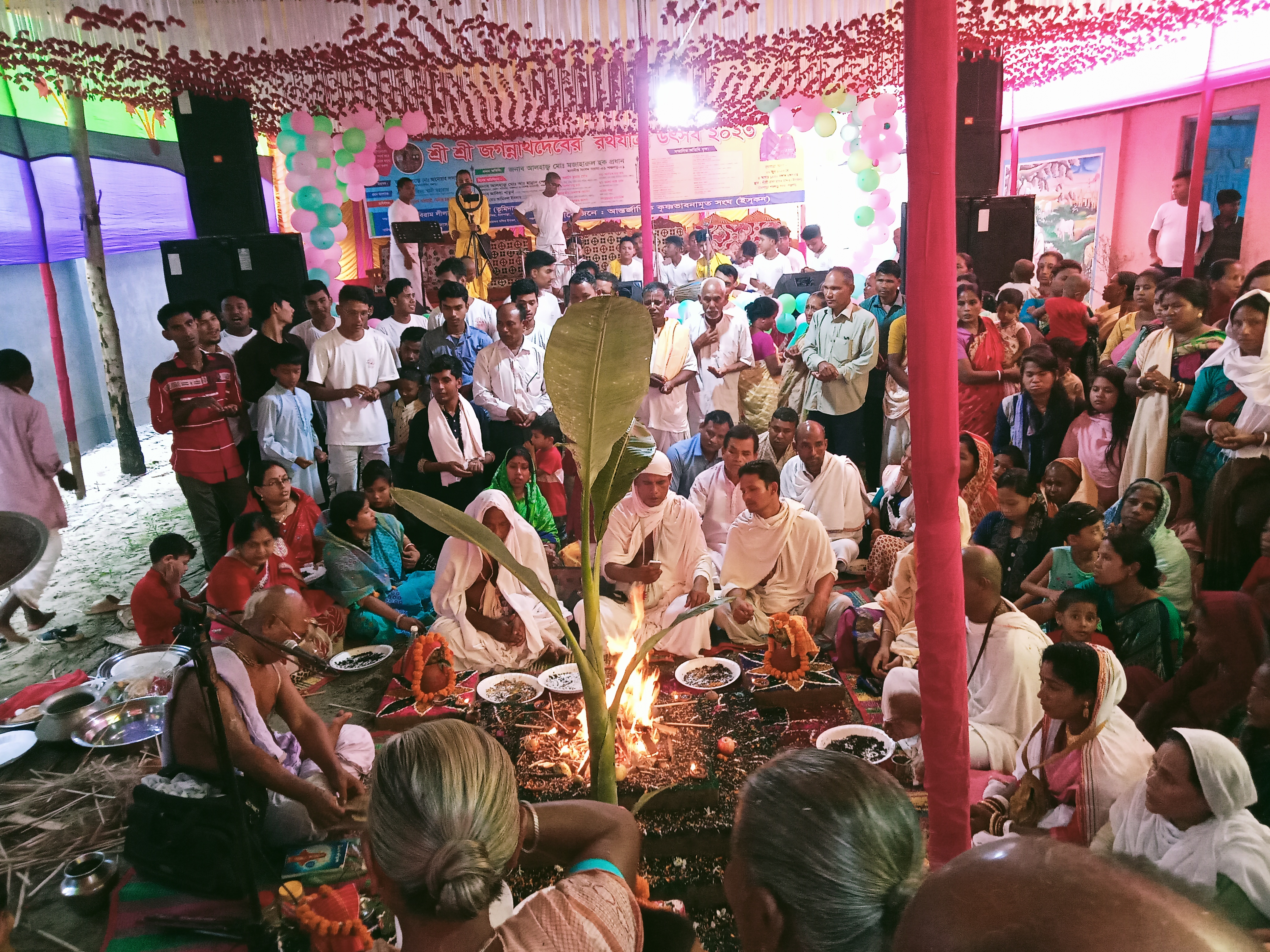 যজ্ঞ যেখানে ইসকন সম্প্রদায়ের বড় বড় প্রভু সাধু পুজো করছিল ।