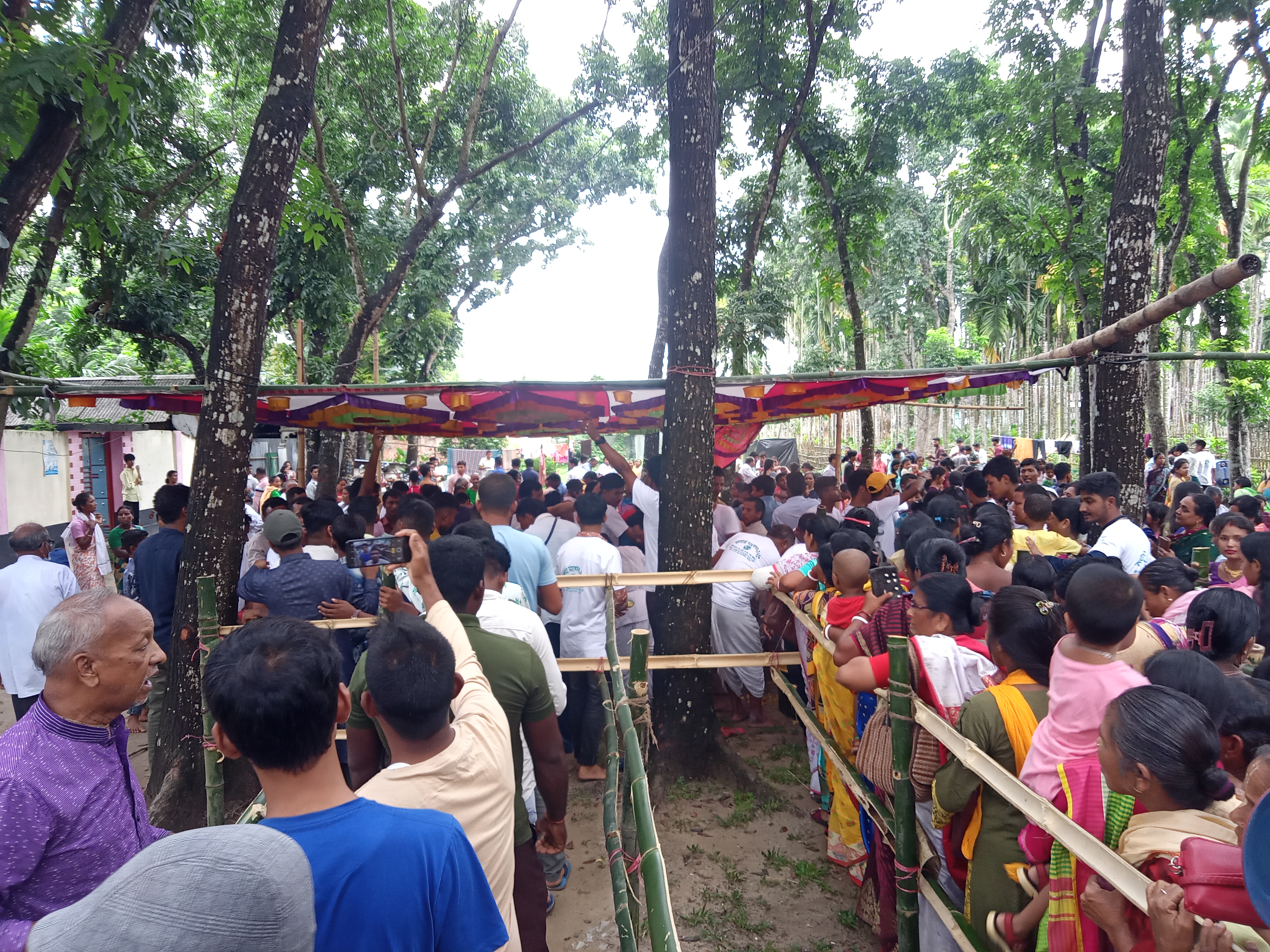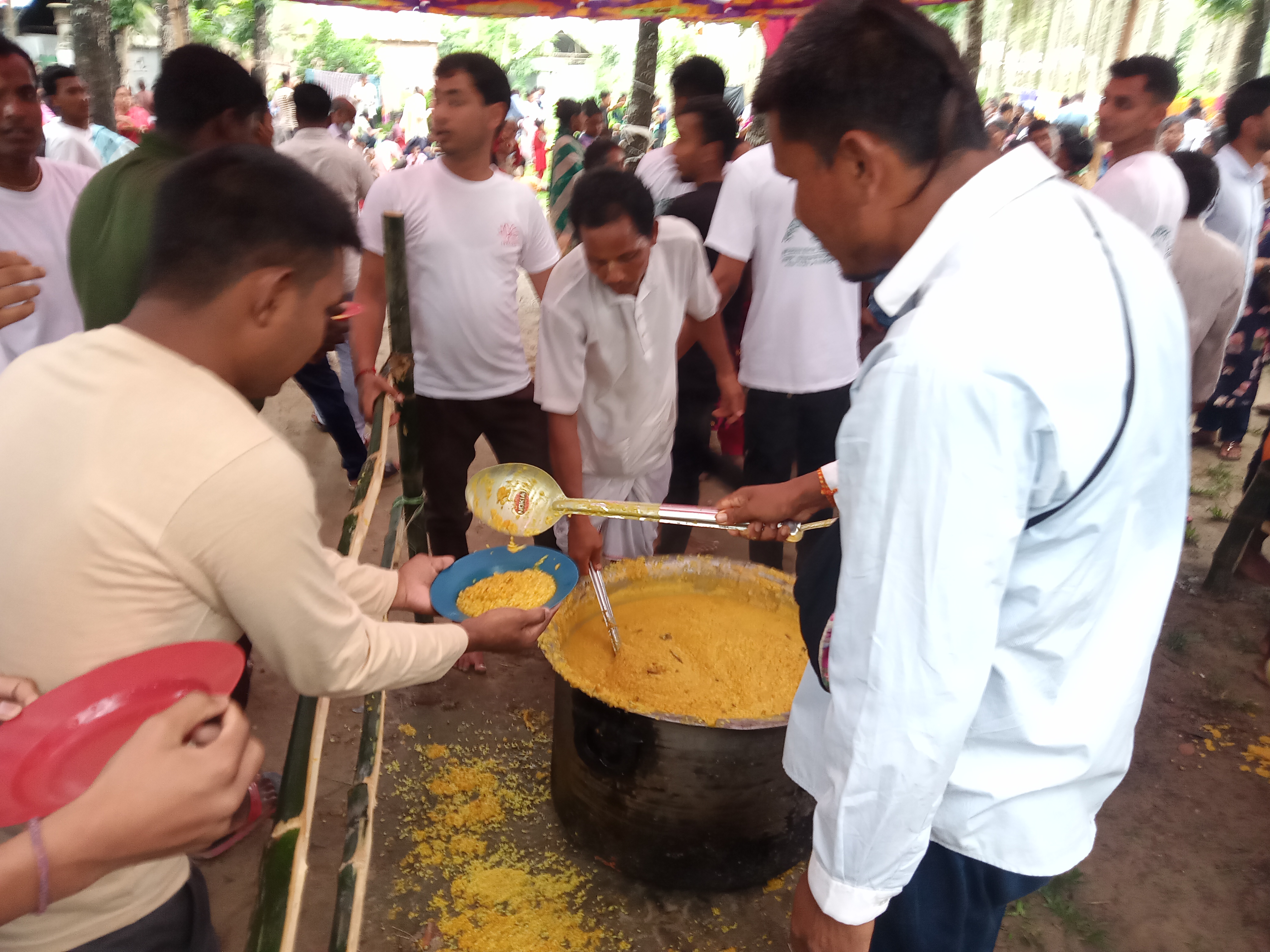 এক পর্যায়ে পূজা শেষে প্রসাদ ভোগ আয়োজন হয় ।আর প্রসাদ খেতে গিয়েই অনেক সময় ব্যাহত করতে হয়েছে। আসলে অনেক ভক্তবৃন্দ হওয়ার কারণে প্রসাদ খেতে অনেকটাই কষ্ট করতে হয়েছে ।আসলে ঈশ্বরের প্রসাদ পাওয়াটা অনেক ভাগ্যের ব্যাপার বলা যায়।