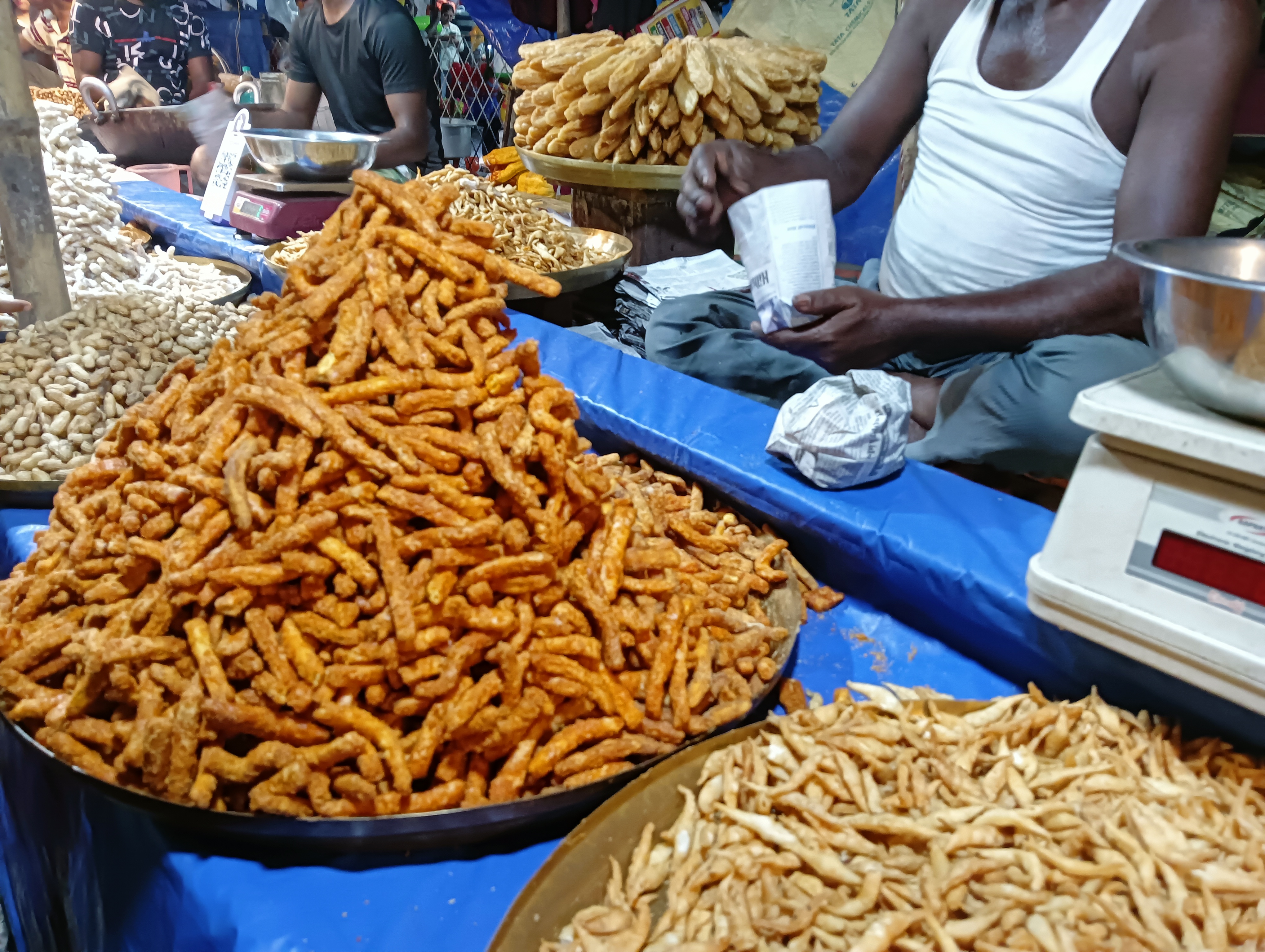 সেই তুলনায় আজকের ভিড়টা অনেকটাই কম ছিল ,এর কারণ হয়তো আজ সকাল থেকেই প্রচুর পরিমাণে বৃষ্টি হয়েছে, তাই হয়তো অনেক লোক বেরোয়নি। কিন্তু বিকেলের দিকে বৃষ্টিটা যেহেতু থেমে গিয়েছিল, তাই আমরা যাওয়ার সুযোগ পেয়েছিলাম। যাইহোক, এর মধ্যে ছিল জিলিপি, নিমকি, চানাচুর আর গজা।