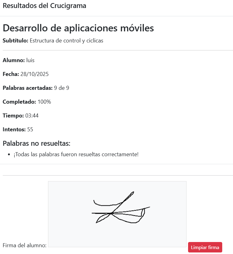 - Actividades lúdicas completadas: