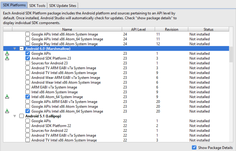 그 다음, SDK Manager라는 곳에 들어가 아래 4가지를 설치하시면 됩니다.