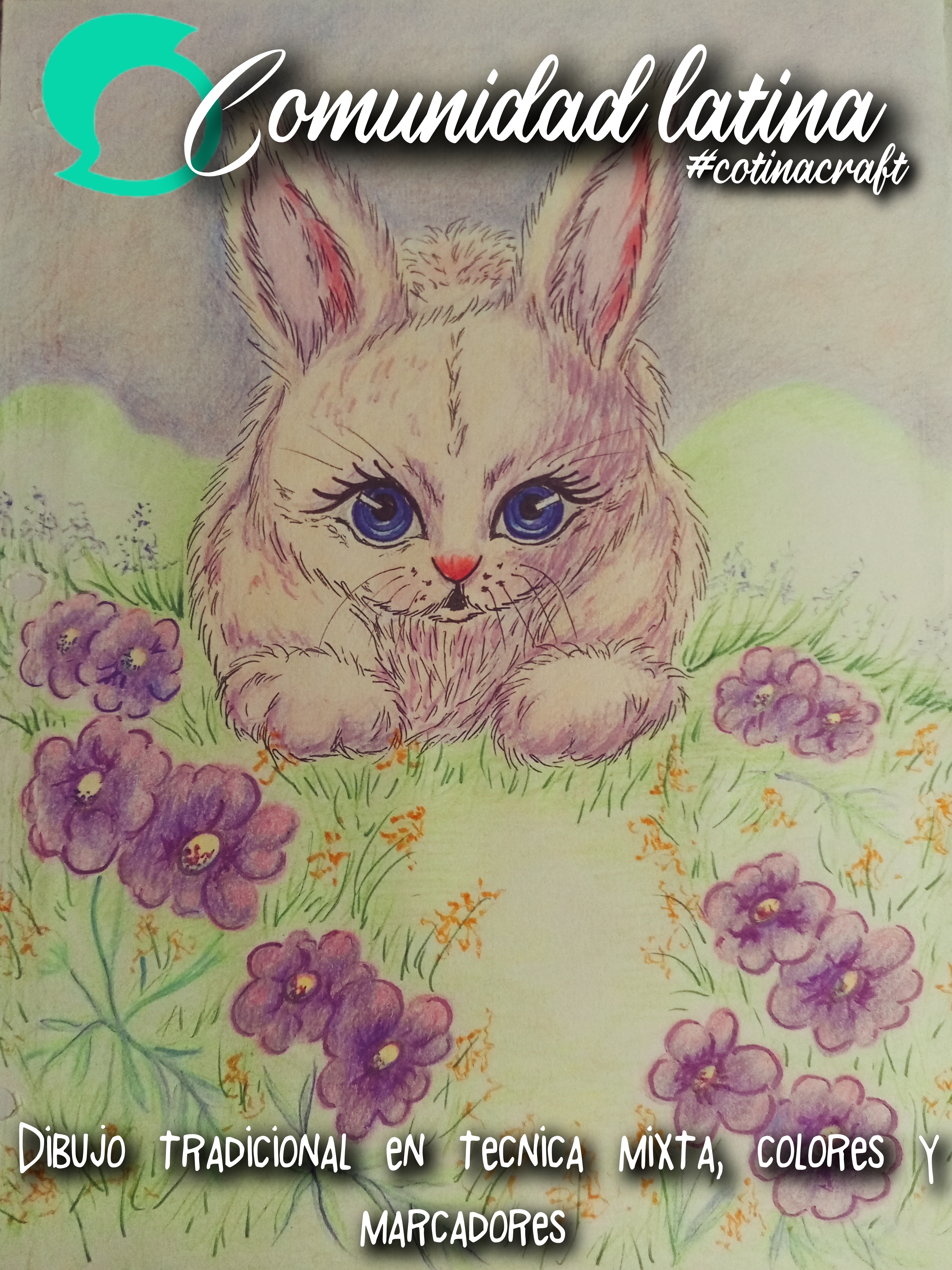| 🎨✏️ Cotinacraft, Dibujo Artístico Conejo//Técnica Mixta 🖍️ Colores de madera y ... |
