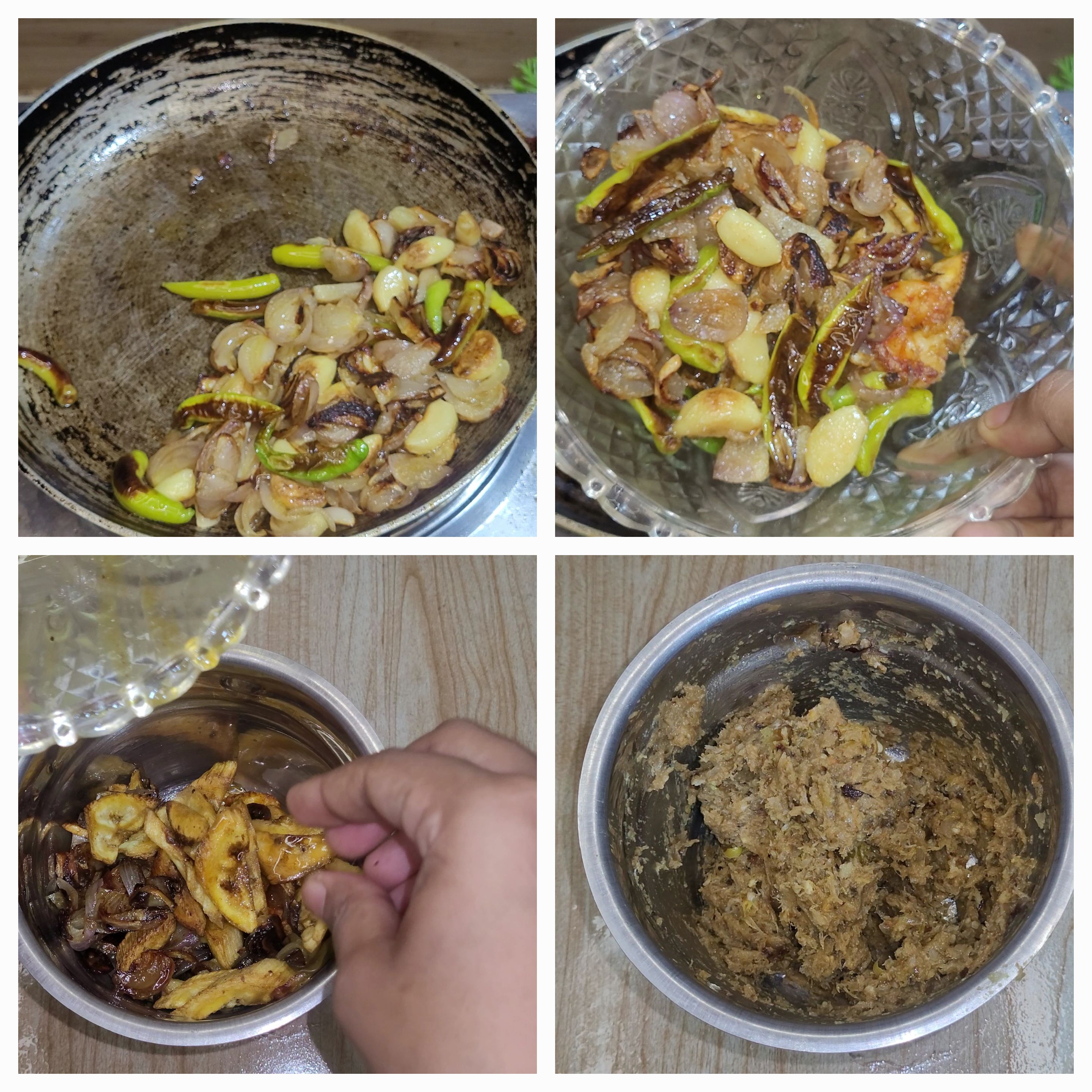 ভাজার পর সবগুলো তুলে নিলাম।ঠান্ডা হওয়ার জন্য অপেক্ষা করলাম। তারপর ঠান্ডা হলে এক এক করে সব কিছু দিয়ে ভালোভাবে ব্লেন্ড করে নিলাম। সাথে কিছুটা পরিমাণে লবণ দিয়ে দিলাম। তৈরি হয়ে গেল মজাদার ভর্তা।