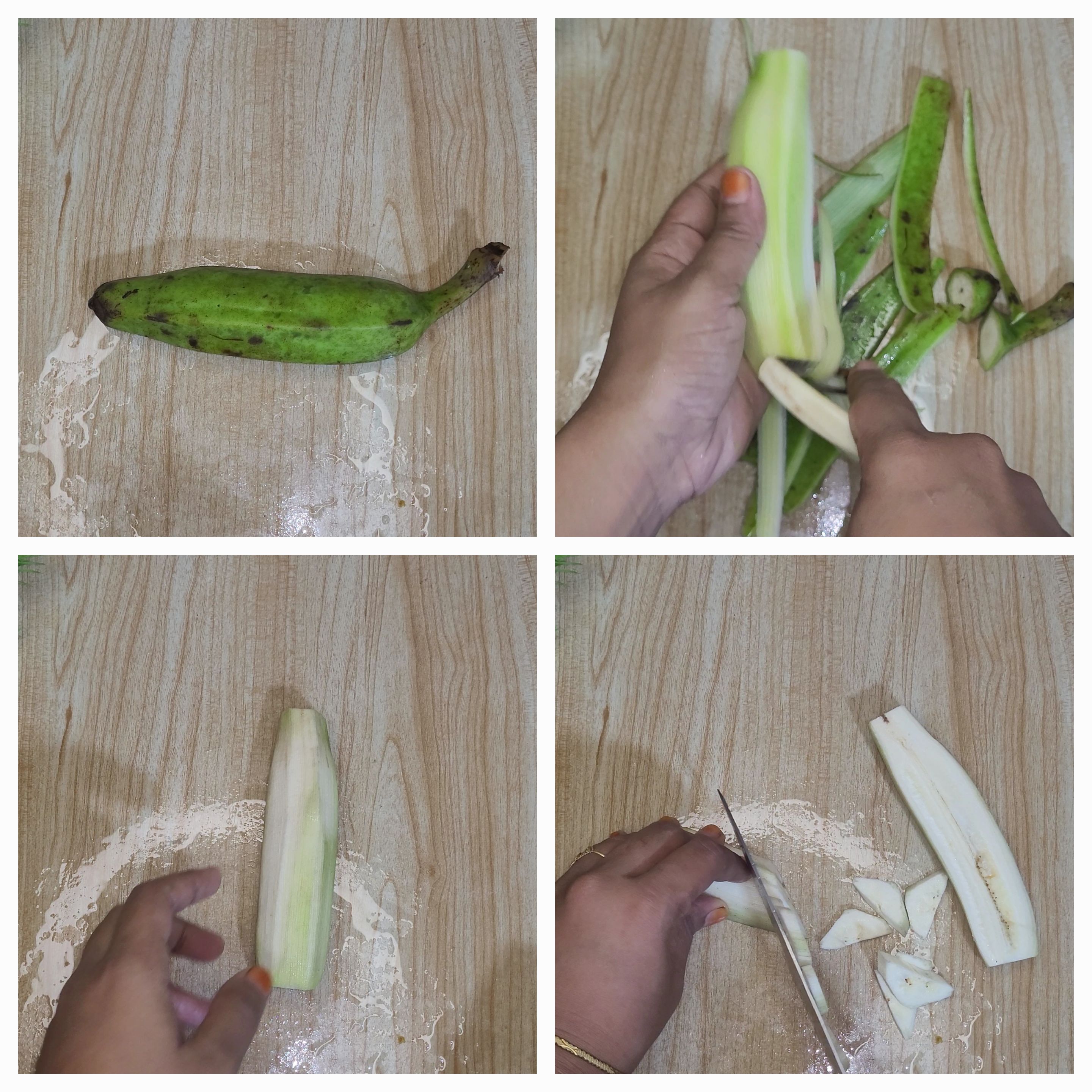 প্রথমেই একটি কাঁচকলা ধুয়ে খোসা ছাড়িয়ে নিলাম।