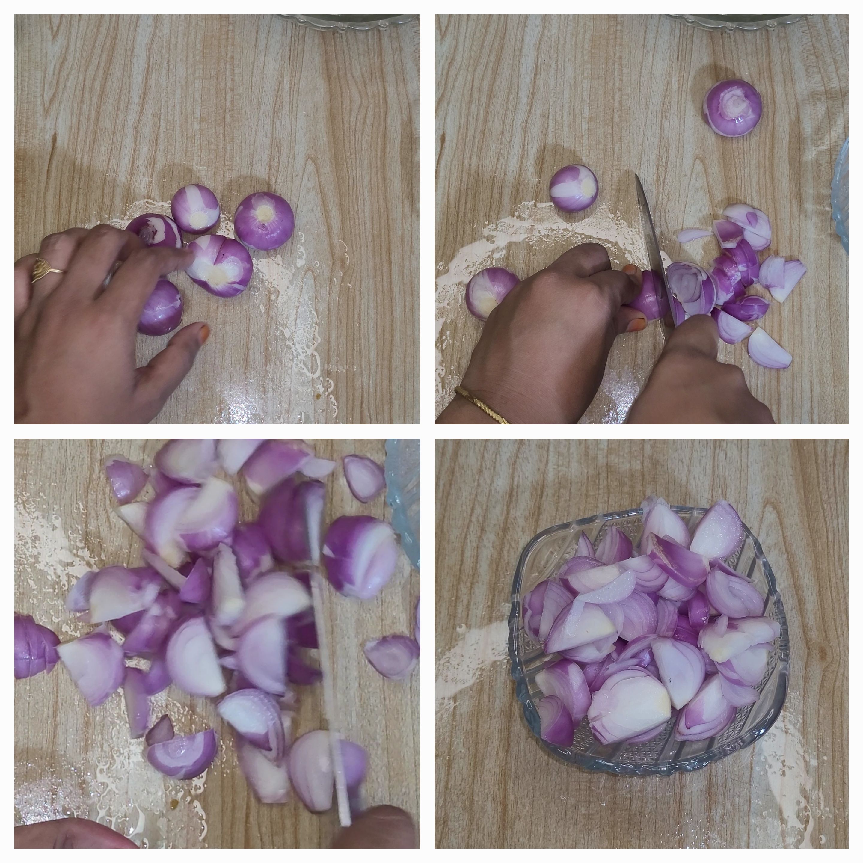 এই ধাপে আমি যে কয়টা পেঁয়াজ নিয়েছিলাম সেগুলোকে ভালোভাবে ধুয়ে ছোট ছোট করে টুকরো করে নিলাম।