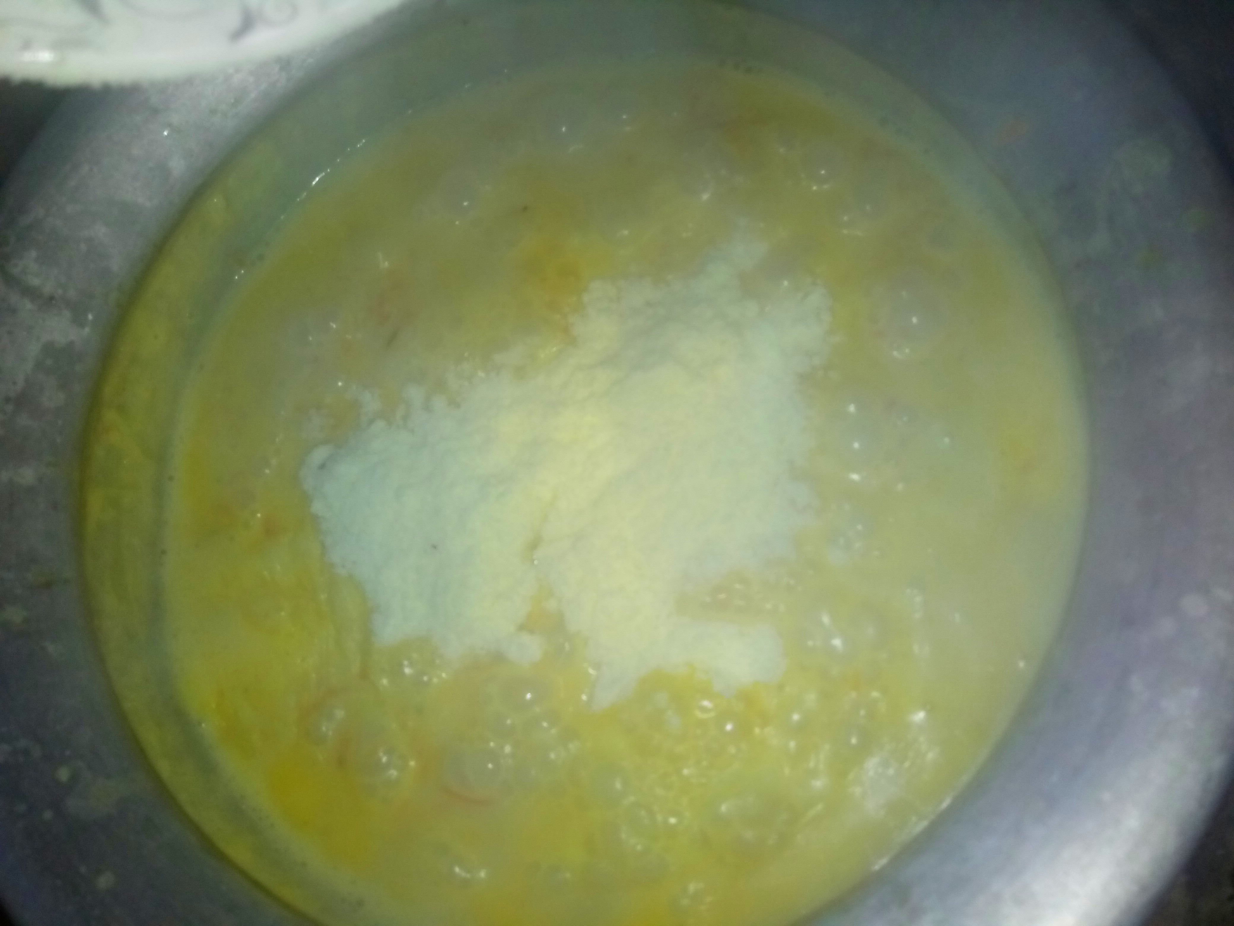 ভালোভাবে রান্না করতে থাকলাম ,এগুলো সিদ্ধ হওয়া পর্যন্ত রান্না করলাম ।যখন দেখলাম এগুলো কিছুটা ঘন হয়ে এসেছে তখন এর মধ্যে গুড়ো দুধ দিয়ে ভালোভাবে নেড়ে সবকিছু একসাথে মিশিয়ে দিলাম। এরপরে ২ মিনিট রান্না করে আমি নামিয়ে নিলাম।