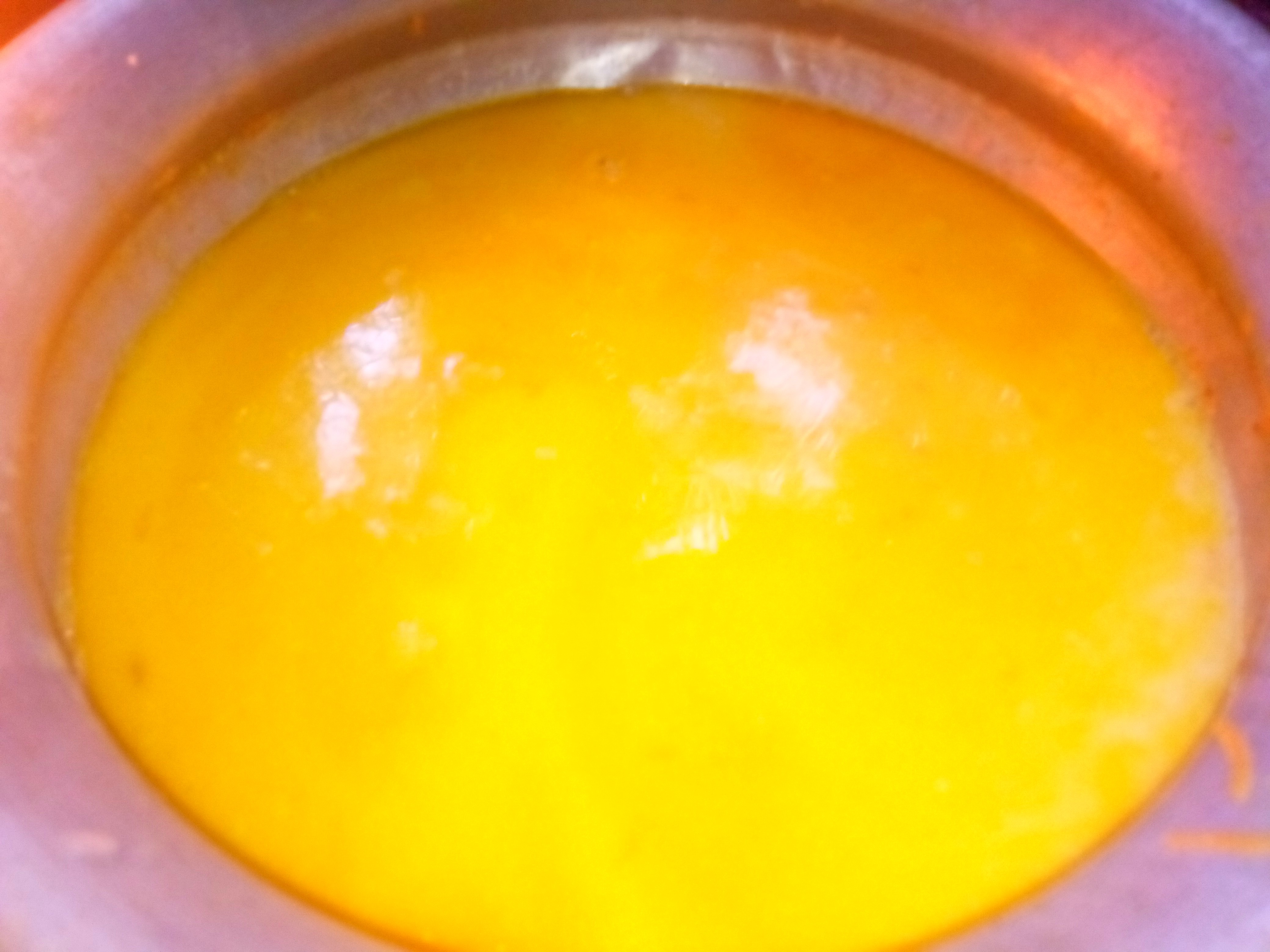 এরপরে আমি একটি পাতিল নিলাম।পাতিলে ১ চা চামচ পরিমাণ ঘি দিয়ে দিলাম।
