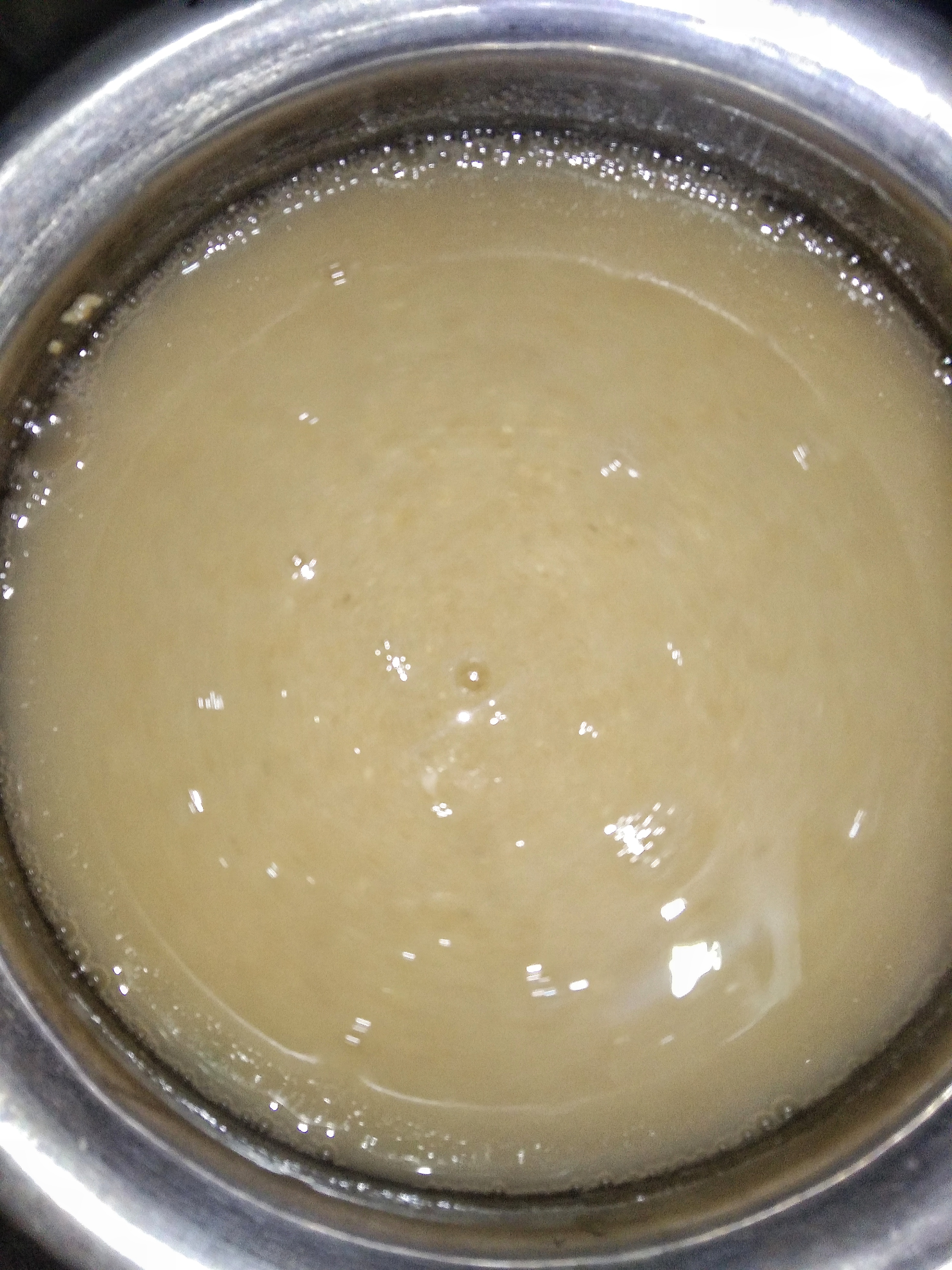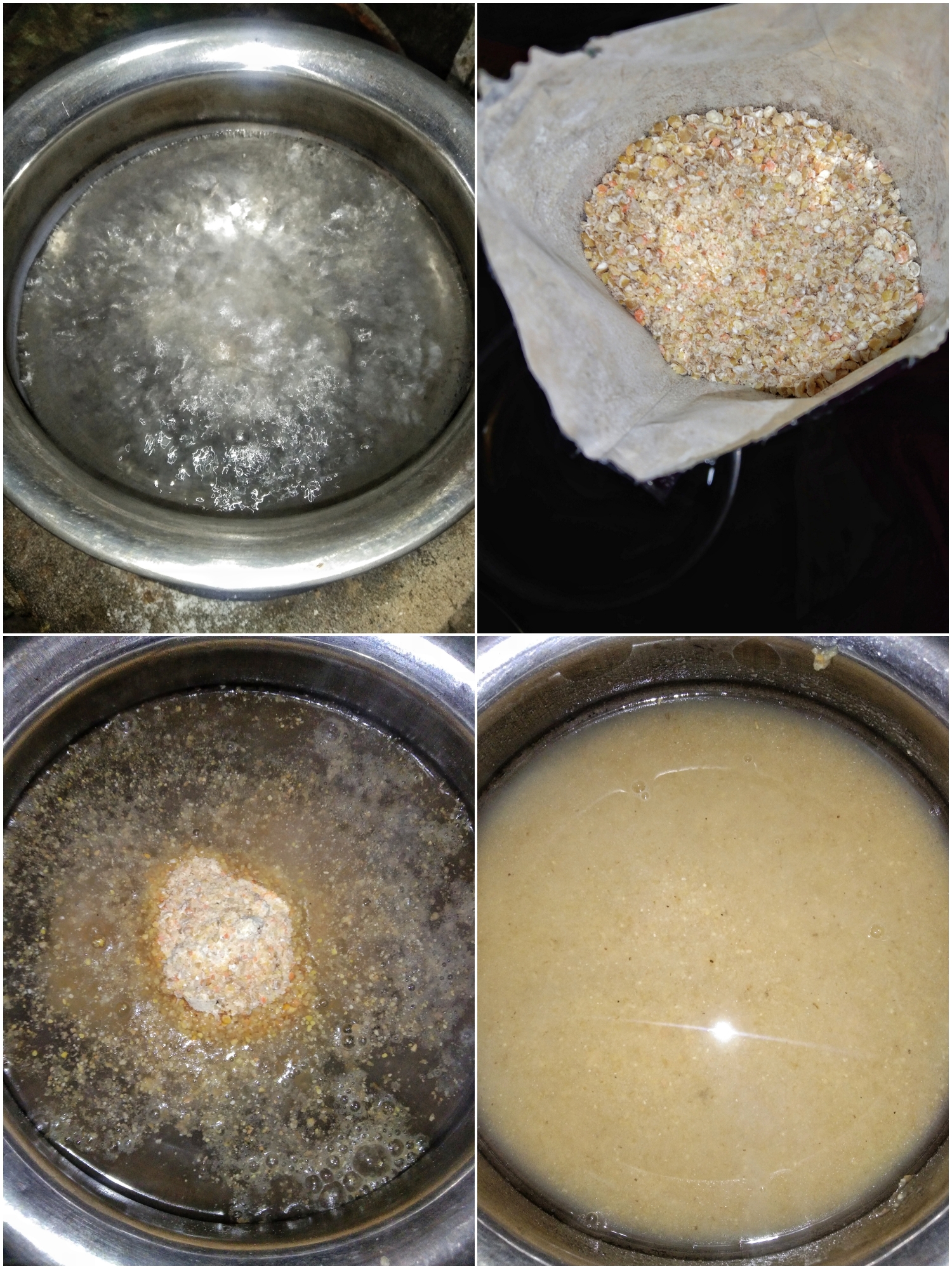তো এরপর যখন জ্বাল দিতে দিতে পানি গুলো মোটামুটি শুকিয়ে যাবে তখন এর মধ্যে ভিজিয়ে রাখা চাল ডালের গুঁড়া গুলোকে পানিসহ এর মধ্যে দিয়ে দিব।