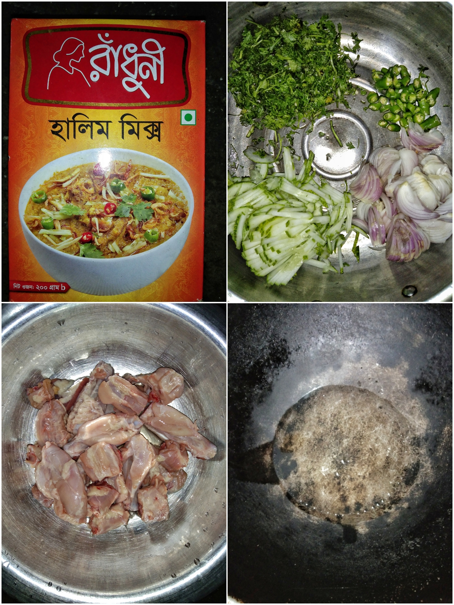 তো হালিম রান্না করার জন্য প্রথমে সমস্ত উপকরণগুলো গুছিয়ে নিব। এবং সমস্ত উপকরণ গোছানোর পর মাংসগুলোকে ধুয়ে পরিষ্কার করে নিব এবং পেঁয়াজ, ধনিয়া পাতা ও খিরা গুলোকে কুঁচি কুঁচি করে কেটে নেব।