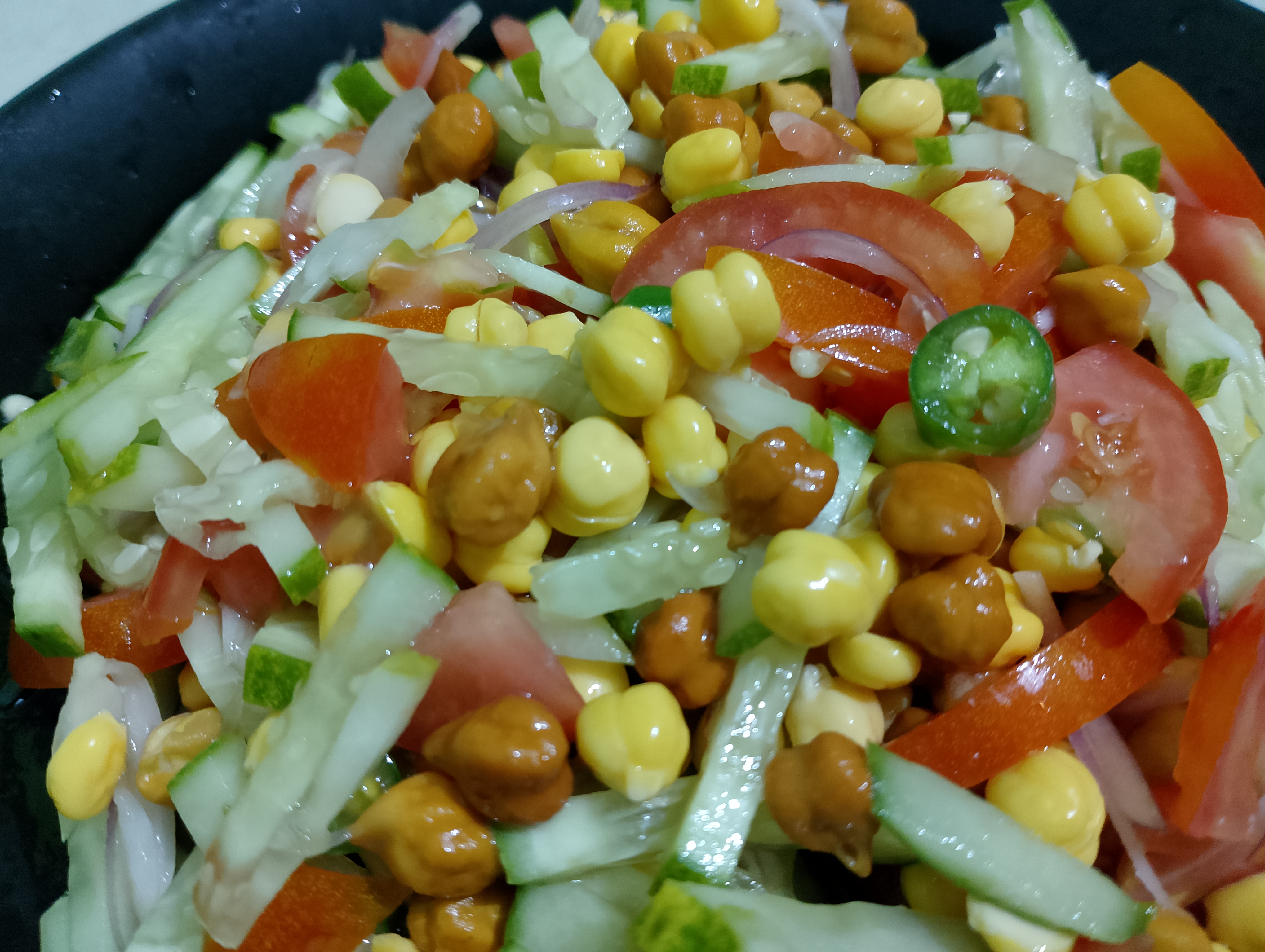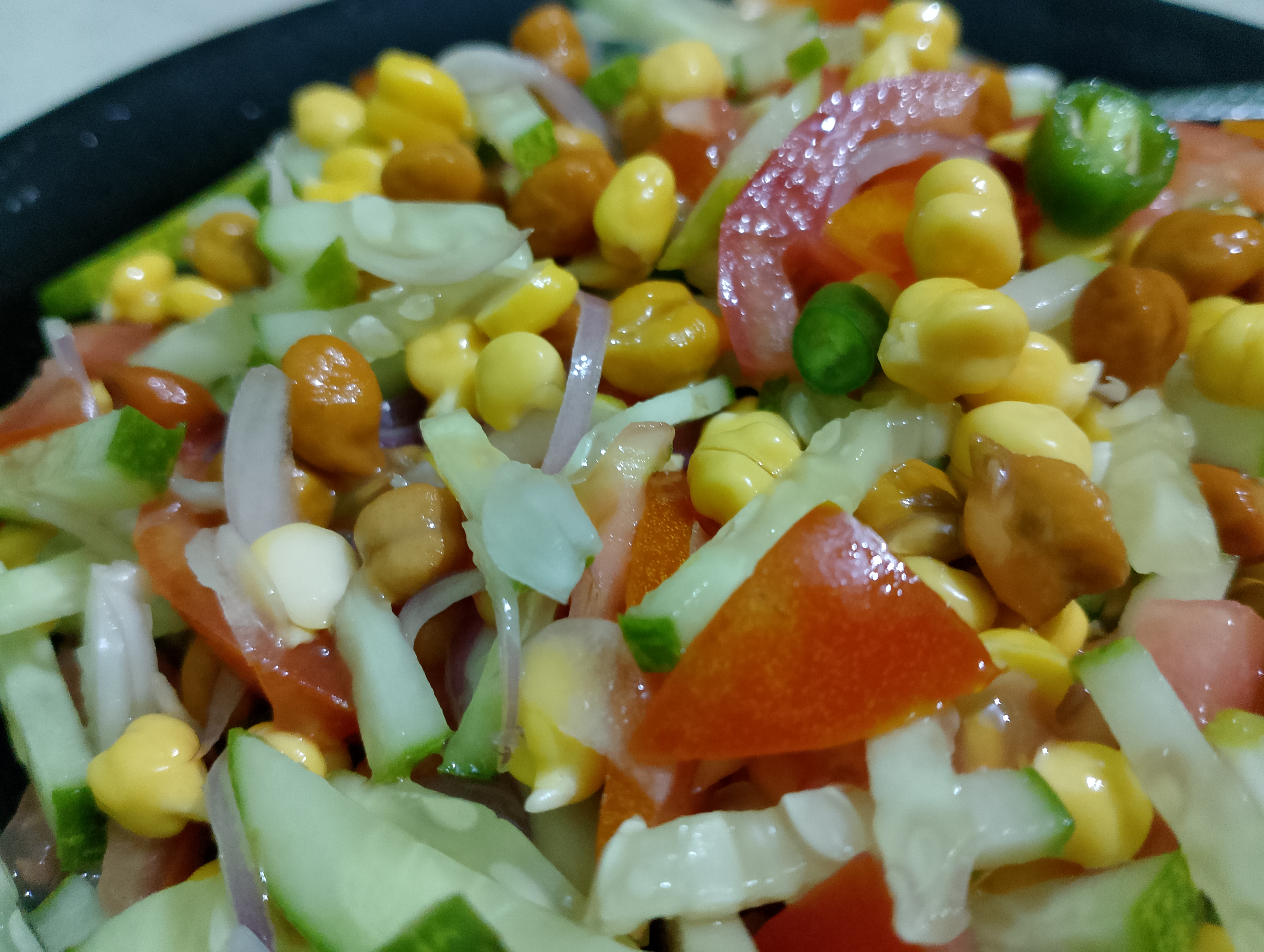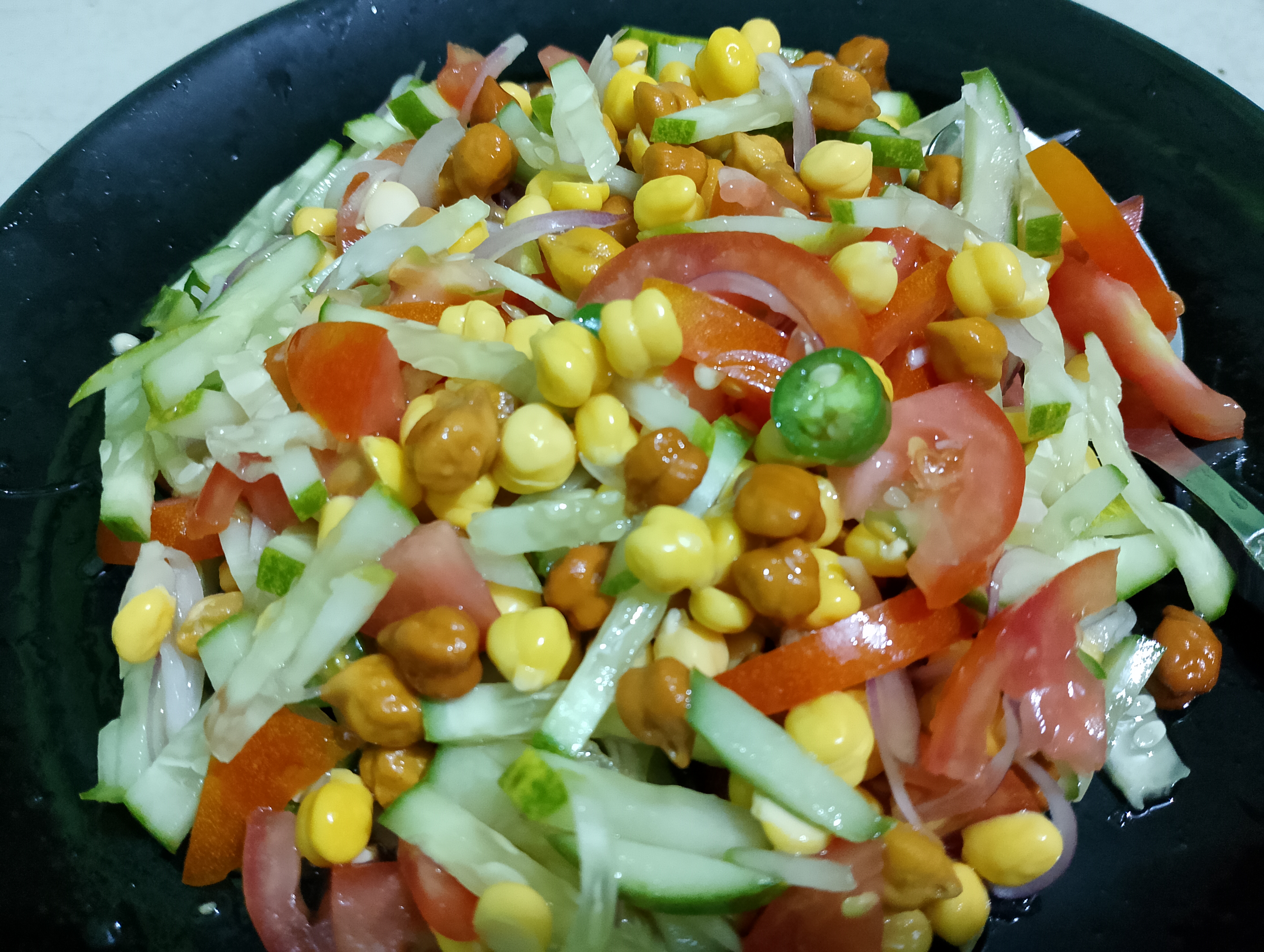 তারপর খিরা, টমেটো কুচি গুলো কাঁচা ছোলার সাথে ভালো ভাবে মাখিয়ে তৈরী করে ফেলাম পুষ্টি গুণে পরিপূর্ণ সুস্বাদু কাঁচা ছোলা মাখা রেসিপি।