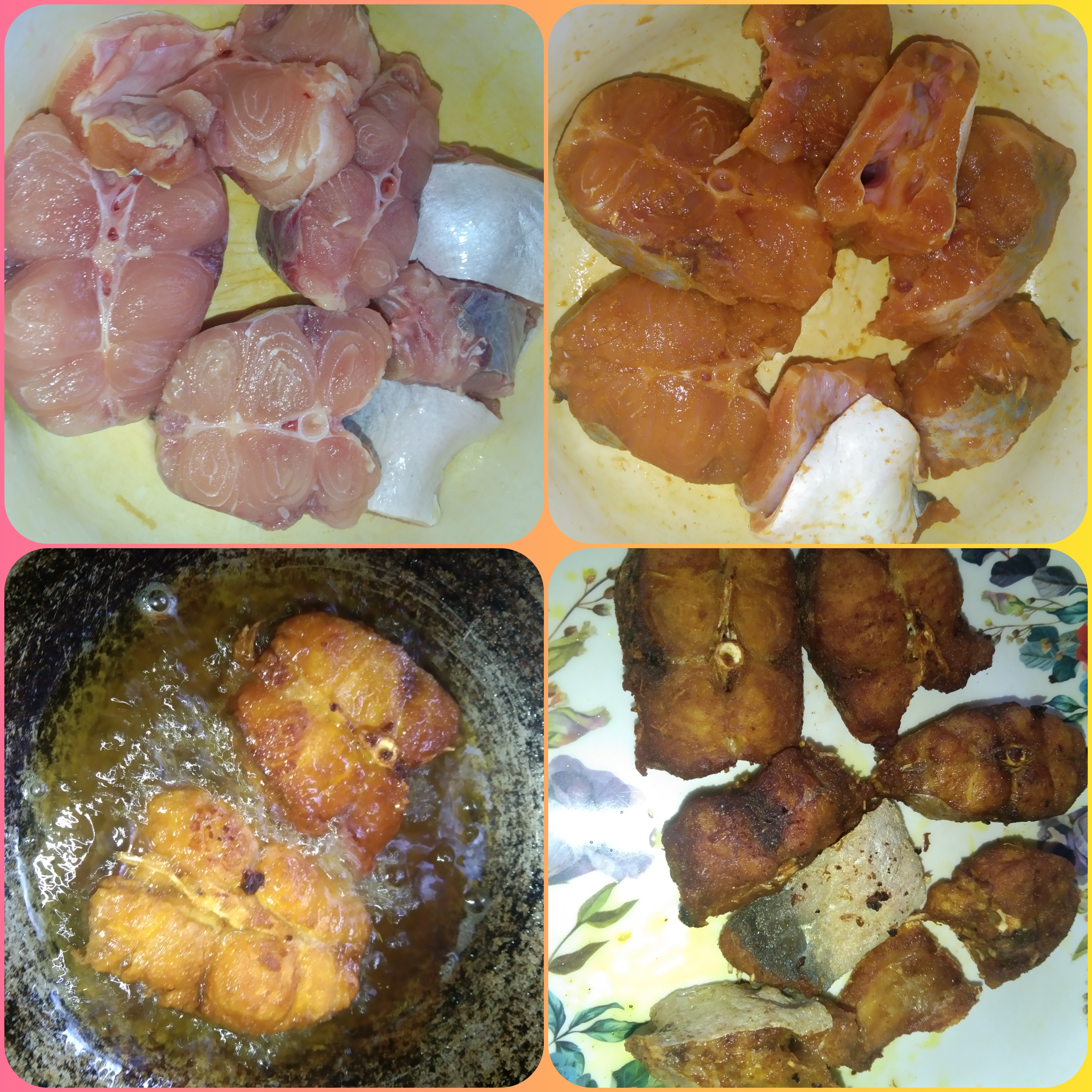 - এবার আমি প্রথমেই পাঙ্গাস মাছ গুলো কে ভালো করে পরিষ্কার করে নিলাম। তার পরে পাঙ্গাস মাছের গা থেকে খোসা ছাড়িয়ে নিলাম। এবার আমি সামান্য পরিমাণ মসলা দিয়ে মাখিয়ে নিলাম। তার পরে এবার আমি চুলায় কড়াই বসিয়ে দিয়ে তেল গরম করে নিলাম। এখন আমি মাছ গুলো কে ভালো করে ভেজে নিয়ে উঠিয়ে নিলাম।