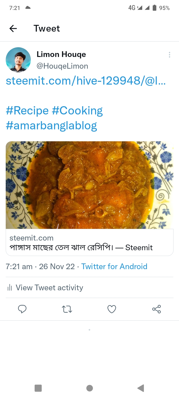 হ্যালো আমার বাংলা ব্লগ পরিবার। কেমন আছেন আপনারা সকলেই? আশাকরি আপনারা সকলেই আল্লাহর রহমতে ভালো আছেন। আমিও আলহামদুলিল্লাহ ভালো আছি। আমার বাংলা ব্লগ পরিবারের সবাইকে আমার পক্ষ থেকে আন্তরিক শুভেচ্ছা ও অভিনন্দন জানিয়ে শুরু করছি। আজকে আমি আপনাদের মাঝে হাজির হলাম। আমার নতুন একটি রেসিপি নিয়ে। পাঙ্গাস মাছের তেল ঝাল রেসিপি। আশাকরি আপনাদের সবার রেসিপি দেখে ভালো লাগবে। চলুন শুরু করা যাক।