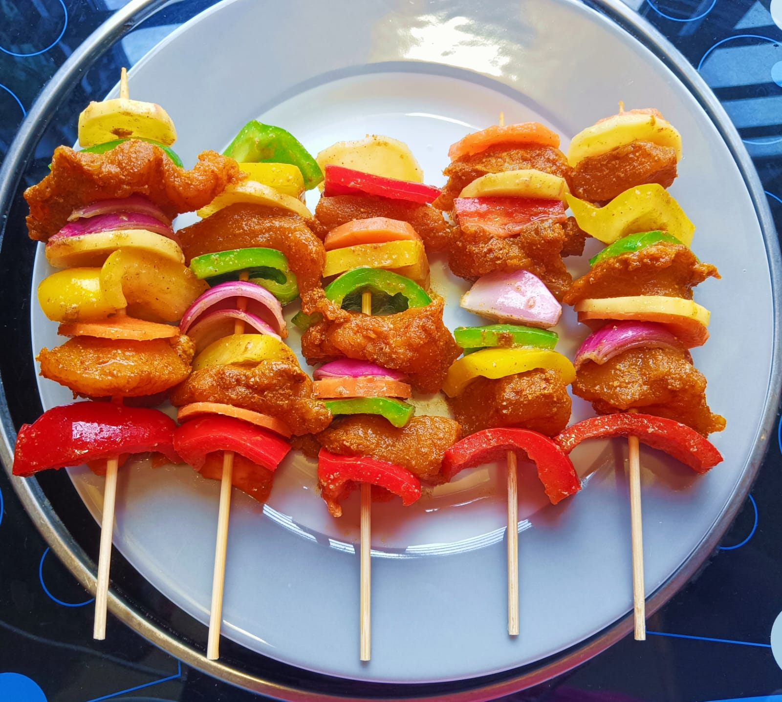 যাইহোক আজ আমি তিন রঙের ক্যাপসিকাম ব্যবহার করে চিকেন সাসলিক রেসিপি তৈরি করেছি। যার কারণে এই রেসিপি খেতে যতটা স্বাদ হয়েছিল, ঠিক ততটাই দেখতে লোভনীয় হয়েছিল। চিকেন সাসলিক যখন তৈরি করছিলাম, তখন থেকেই চিকেন সাসলিক গুলো এতটাই কালারফুল লাগছিল, যা দেখে মনে হচ্ছিল রান্না করার আগেই খেয়ে ফেলি হাহাহা। আমি তো অনেকদিন ধরেই অসুস্থ ছিলাম, যার কারণে আমার মুখের রুচি একদম নেই বললেই চলে।