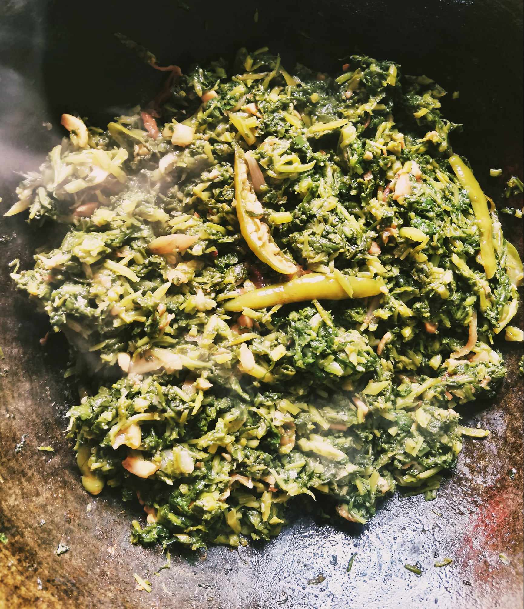এবার শাকটা সিদ্ধ হওয়া এবং পানি টেনে যাওয়া অবদি অপেক্ষা করতে হবে।
