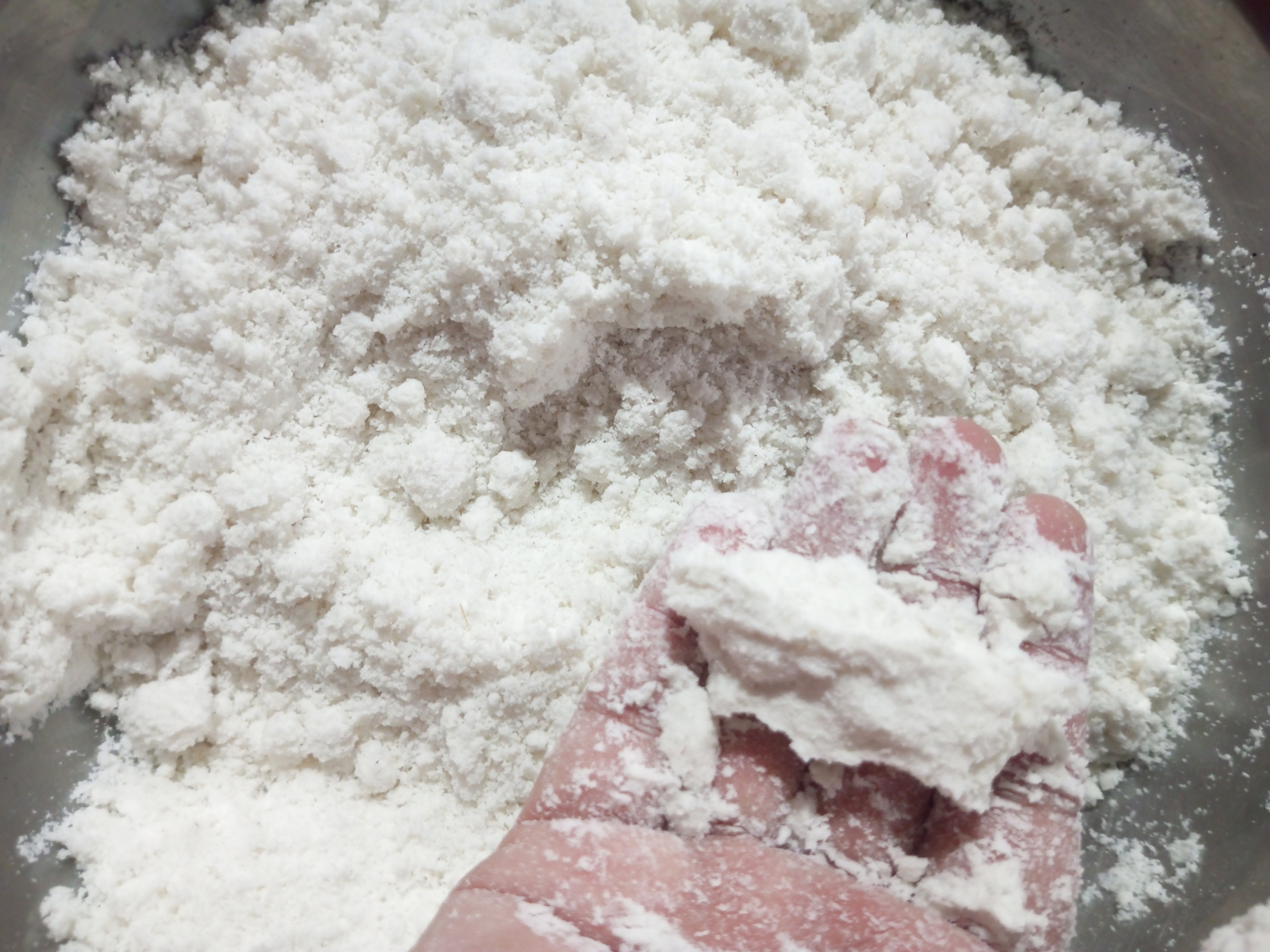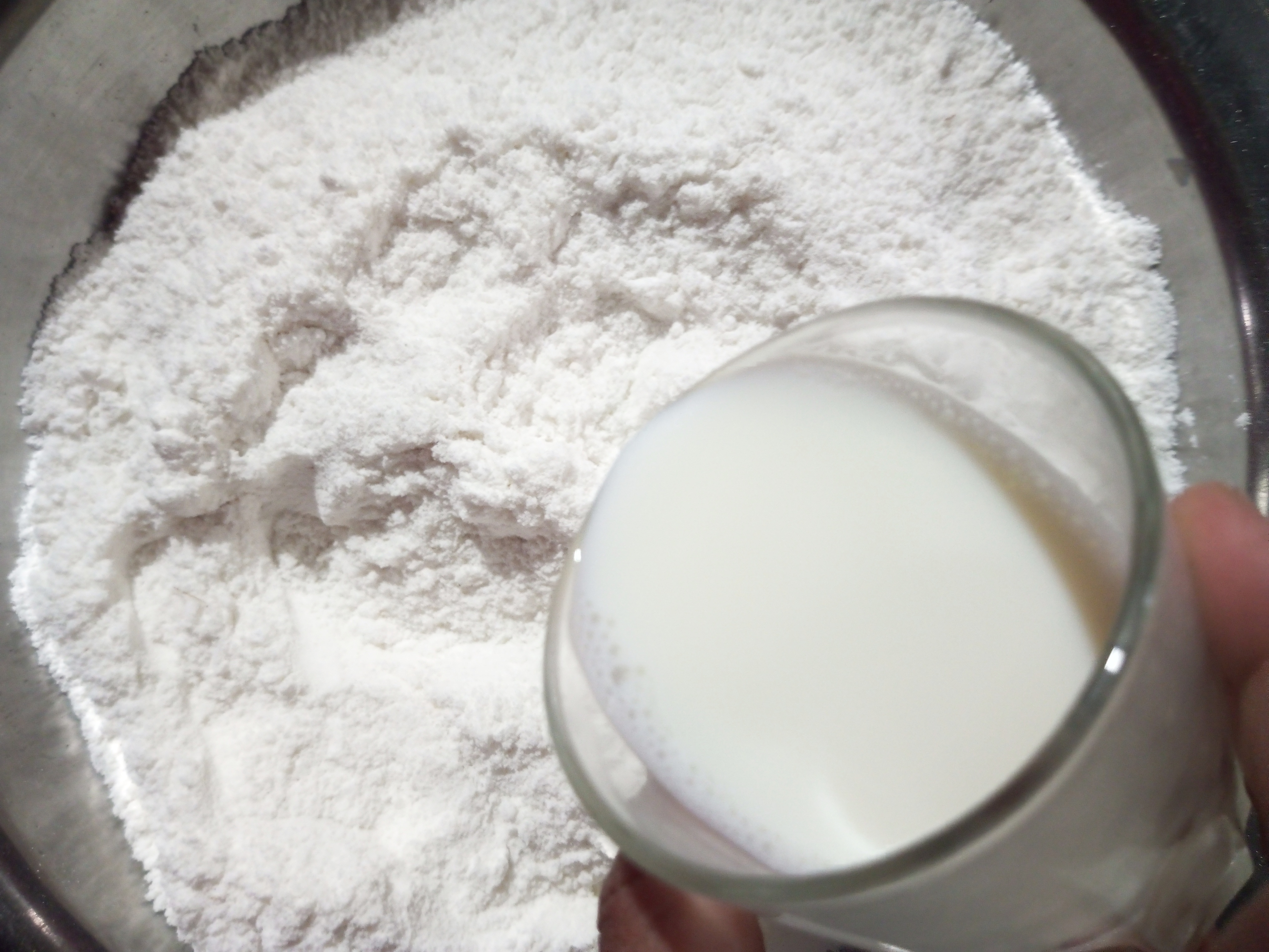 এরপর কুসুম গরম দুধ দিয়ে চালের গুড়ার সাথে ভালো করে মিক্সড করে নিব যতক্ষণ না হাতের মধ্যে দলা পাকিয়ে আসে।