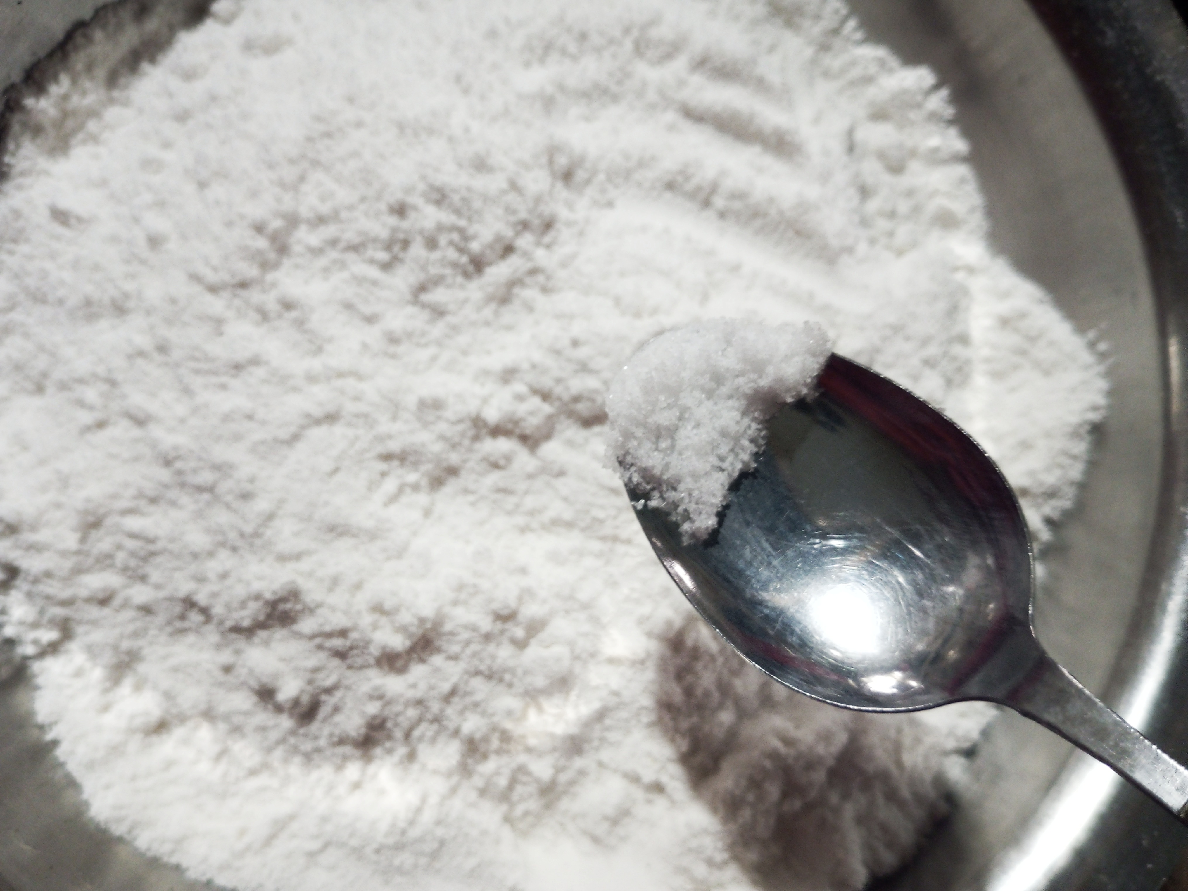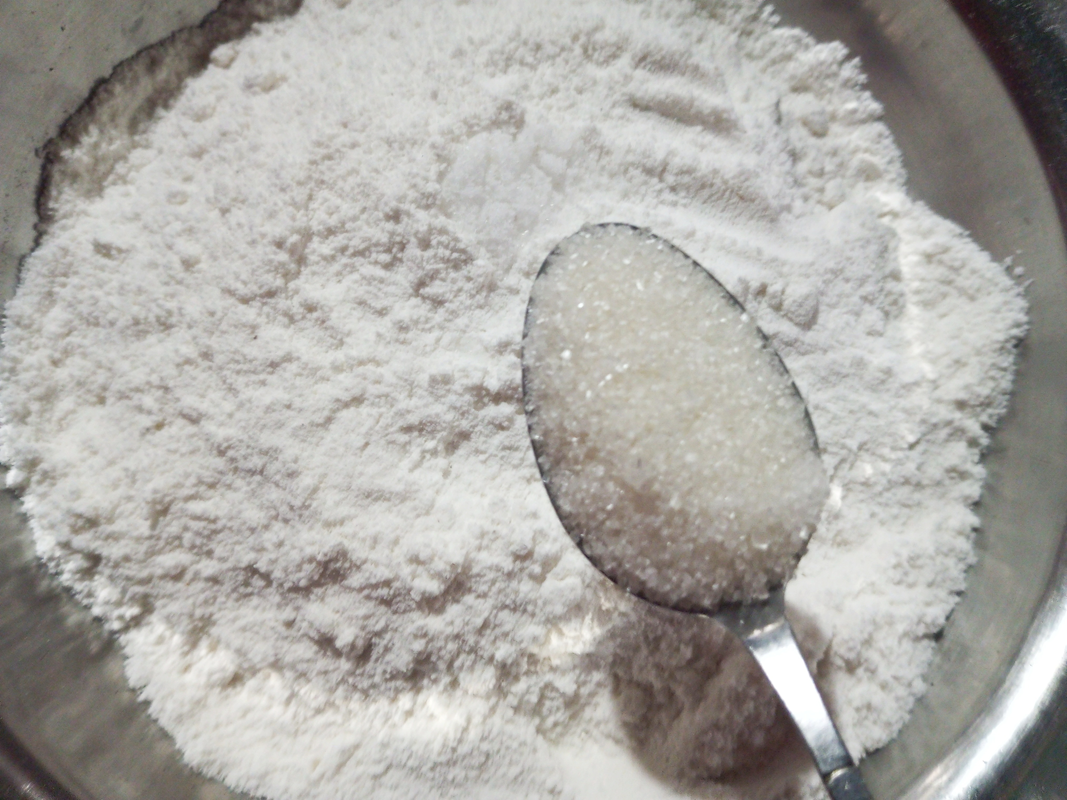 চালের গুড়ার মধ্যে পরিমাণ মতো লবণ এবং তিন চা চামচ চিনি দিয়ে ভালো করে মিক্সড করে নিব।