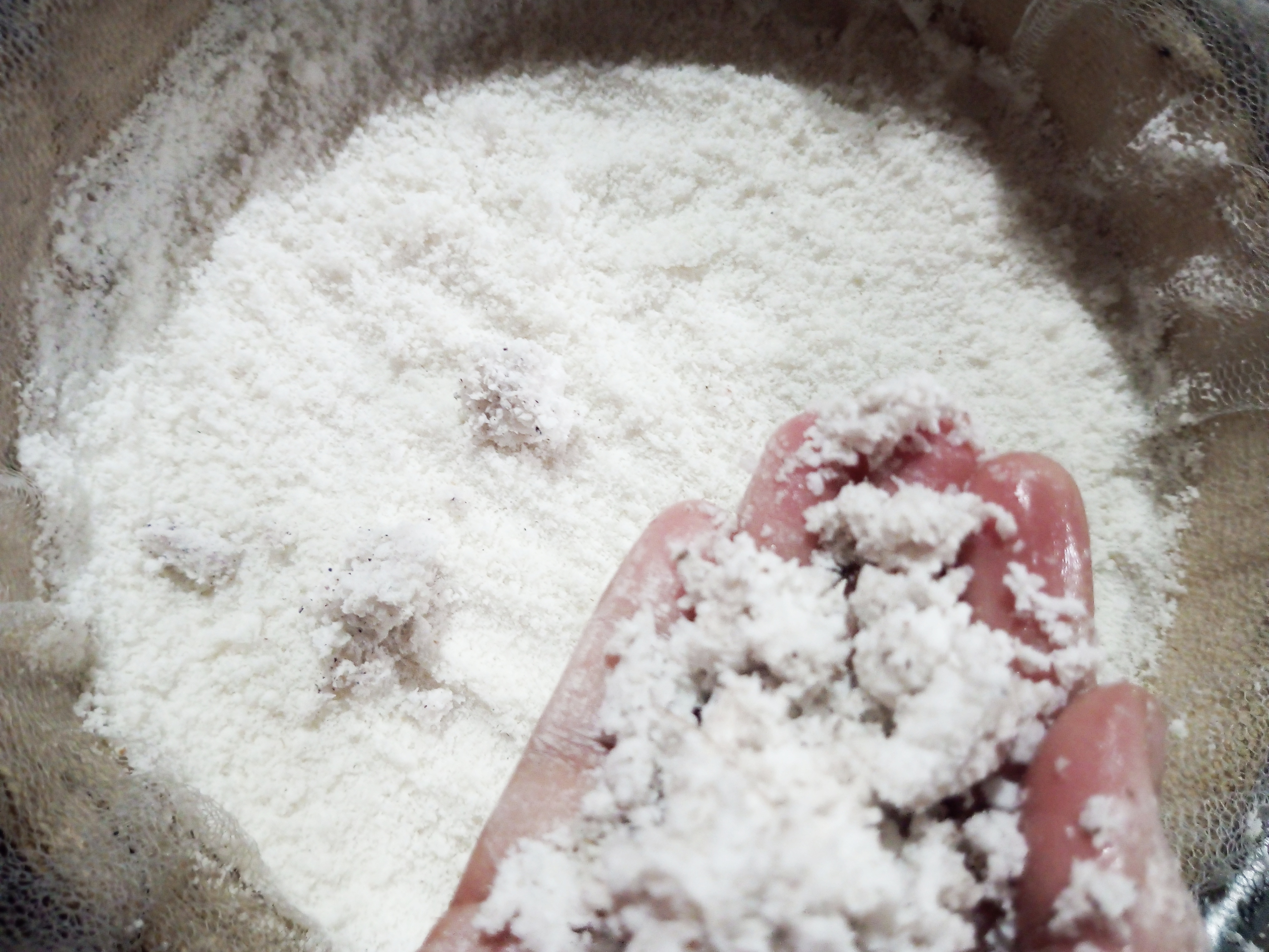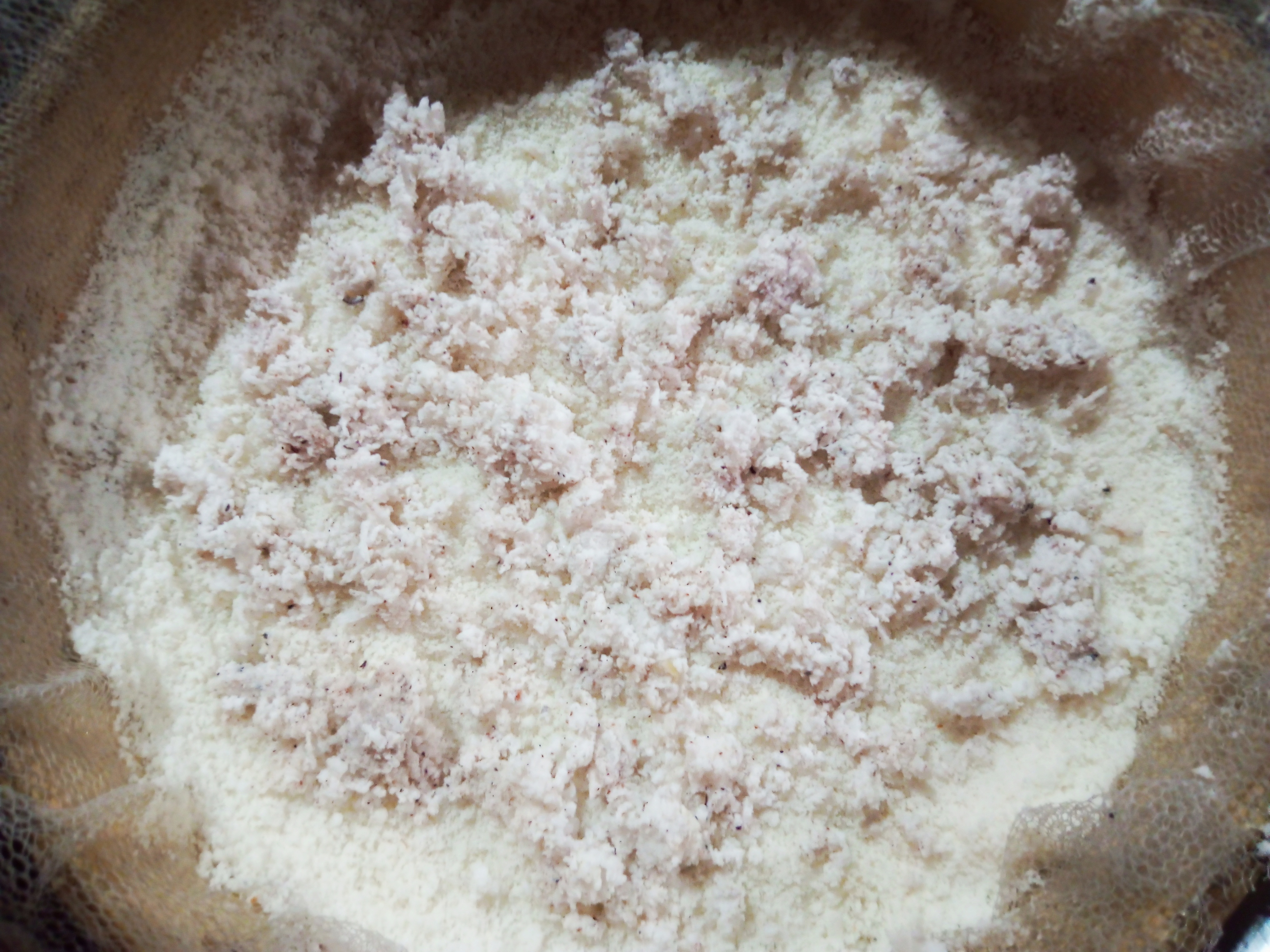 এই পর্যায়ে লবণ চিনি এবং দুধ দিয়ে মেশানো চালের গুড়াগুলো একটি পরিষ্কার চালনির সাহায্যে চেলে নিতে হবে। চেলে নেয়ার পর দেখুন কতটা মসৃণ হয়েছে দেখতে।