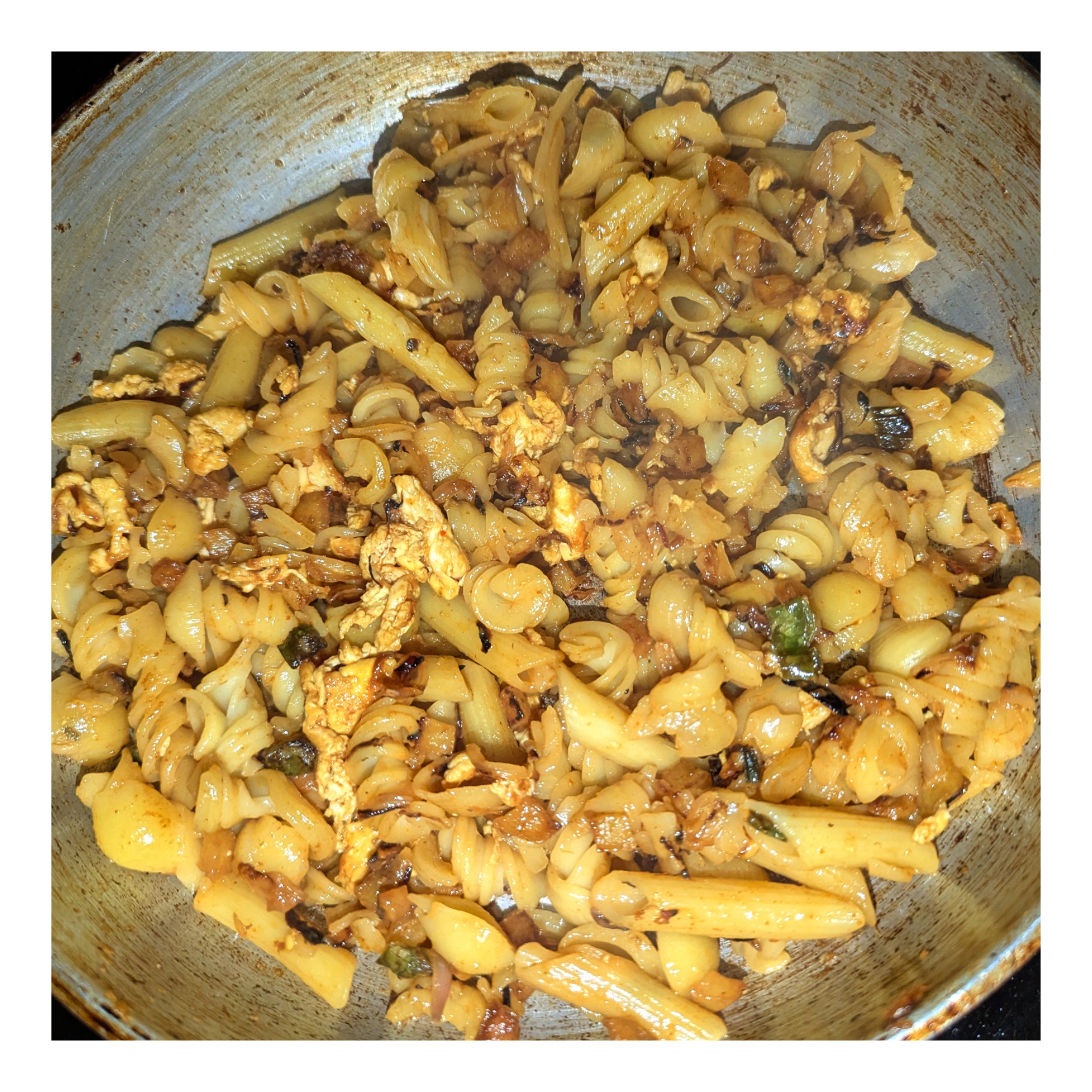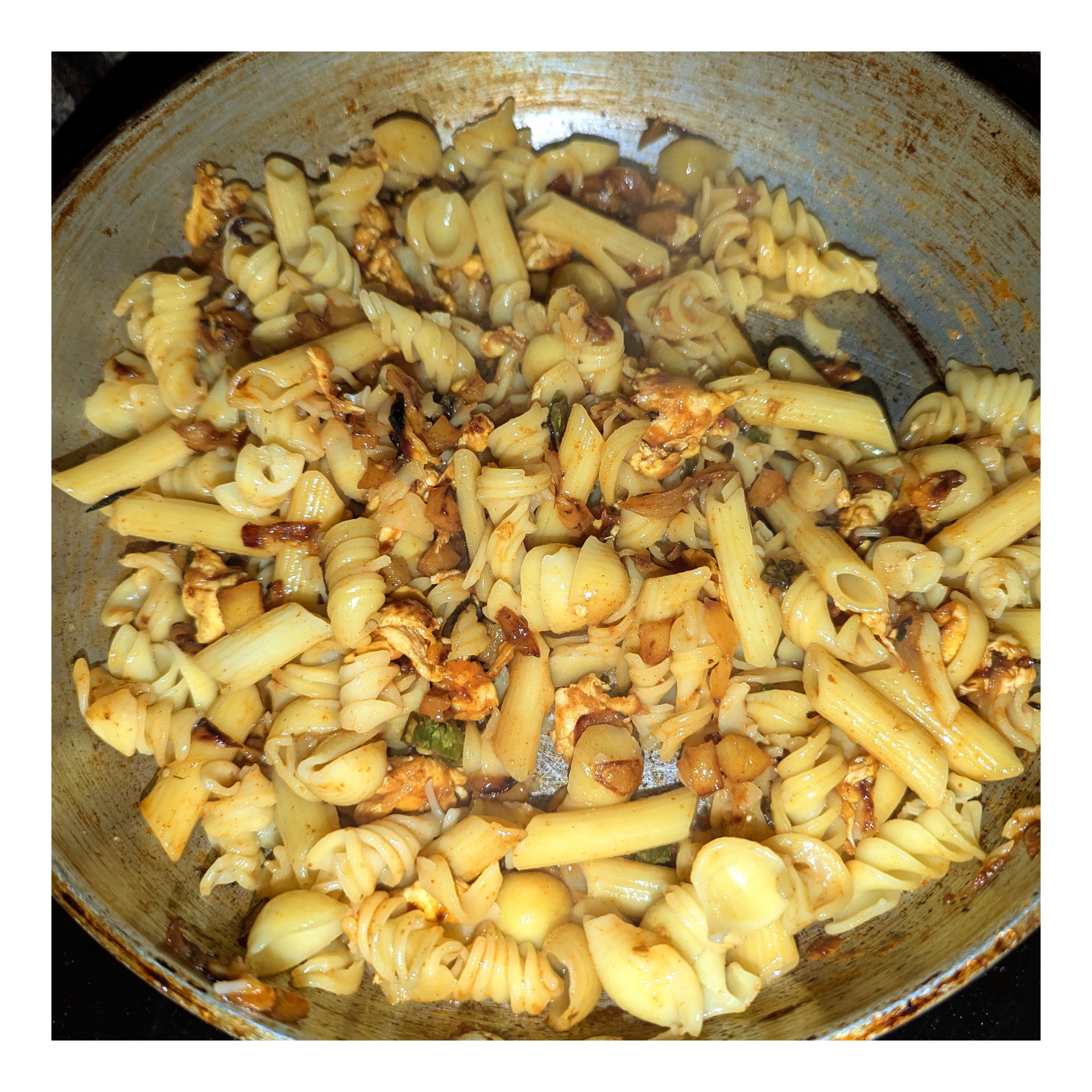 পাস্তাগুলোকে ভালো করে নেড়ে চেড়ে মসলা এবং সবজির সাথে মিশিয়ে নিয়েছি। এভাবেই বেশ কিছুক্ষণ ধরে রান্না করে নিয়েছি।