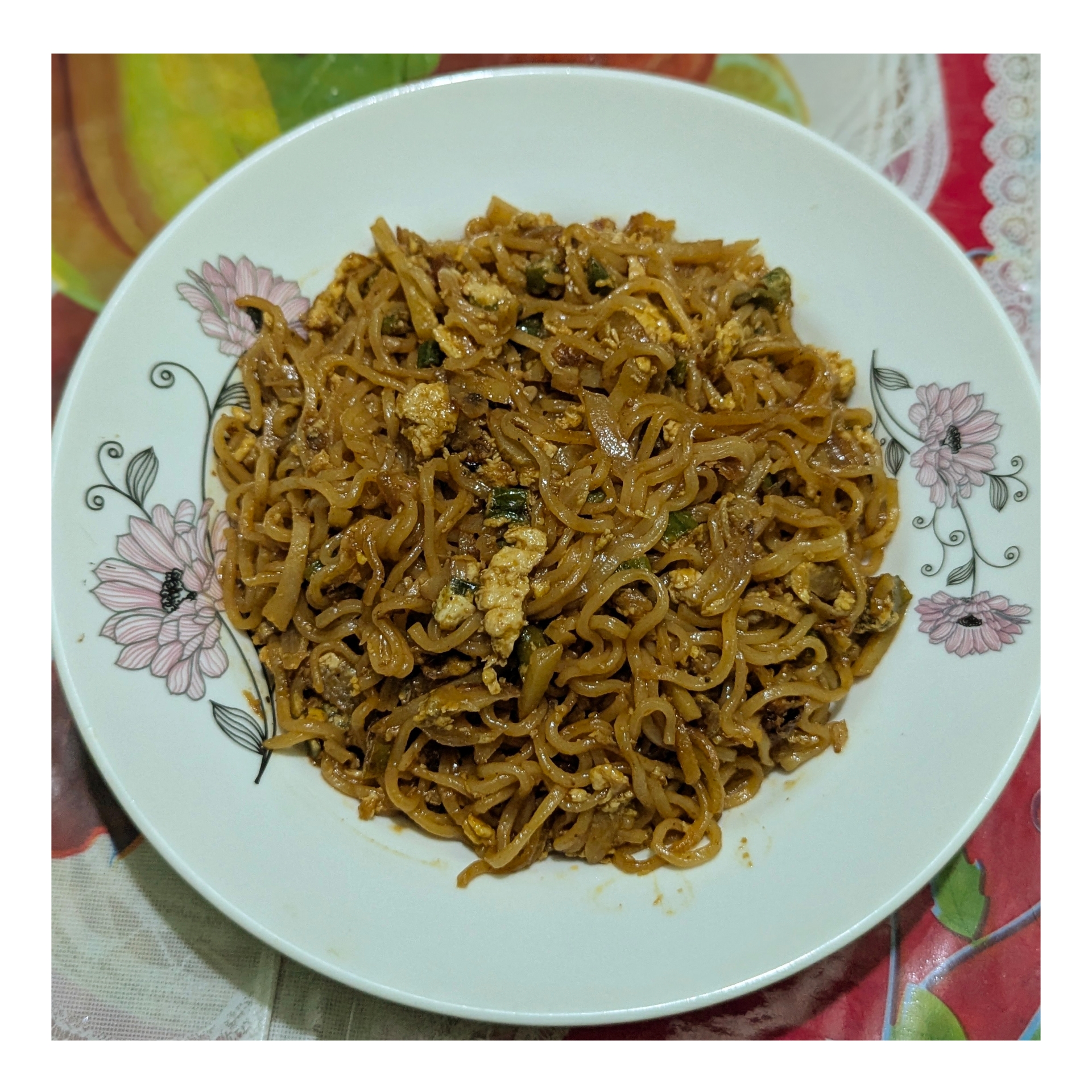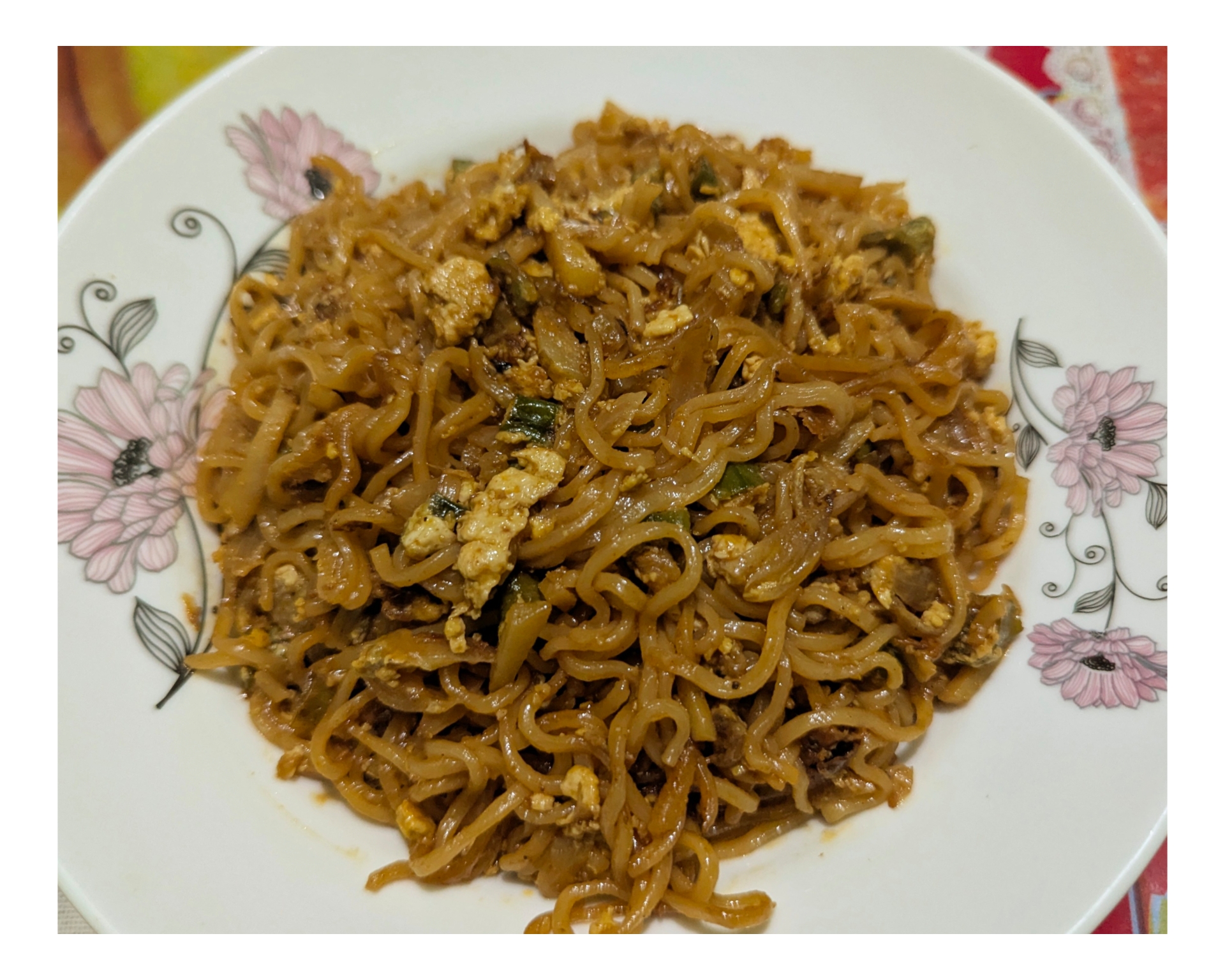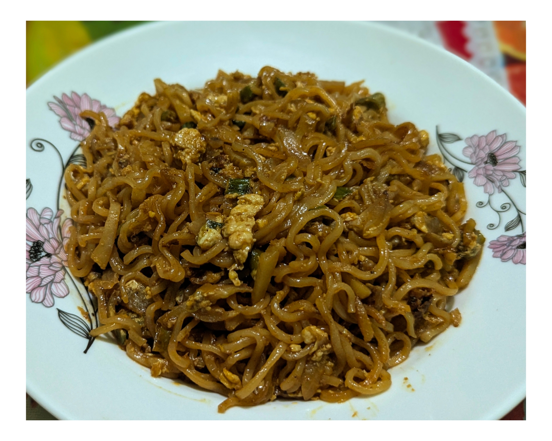 এবারে একটি পাত্রে পরিবেশন করে নিয়েছি। নুডুলস খেতে বেশ হয়েছিল। এভাবে নুডুলস রান্না করলে আসলেই মজা হয়। ঝাল ঝাল মিষ্টি মিষ্টি একটা ফ্লেভার আসে।