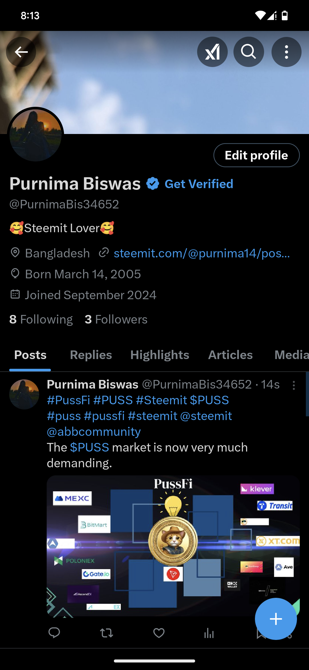 আমি পূর্ণিমা বিশ্বাস, আমার ইউজার নেম @purnima14। আমি আমার মাতা-পিতা এবং নিজের মাতৃভূমি ও মাতৃভাষাকে ভালবাসি। আমি হৃদয় থেকে ভালবাসি সৃষ্টিকর্তা ও তার সকল সৃষ্টিকে। আমি বর্তমানে কুষ্টিয়া পলিটেকনিক ইনস্টিটিউটে সিভিল টেকনোলজিতে ডিপ্লোমা ইন-ইঞ্জিনিয়ারিং নিয়ে লেখাপড়া করছি। আমি ভ্রমণ করতে, কবিতা লিখতে ও আবৃত্তি করতে, গান শুনতে, যেকোনো ধরনের রেসিপি তৈরি করতে ও প্রাকৃতিক দৃশ্যের ফটোগ্রাফি করতে অনেক পছন্দ করি। "আমার বাংলা ব্লগ" কমিউনিটিতে কাজ করতে পেরে আমি গর্বিত।