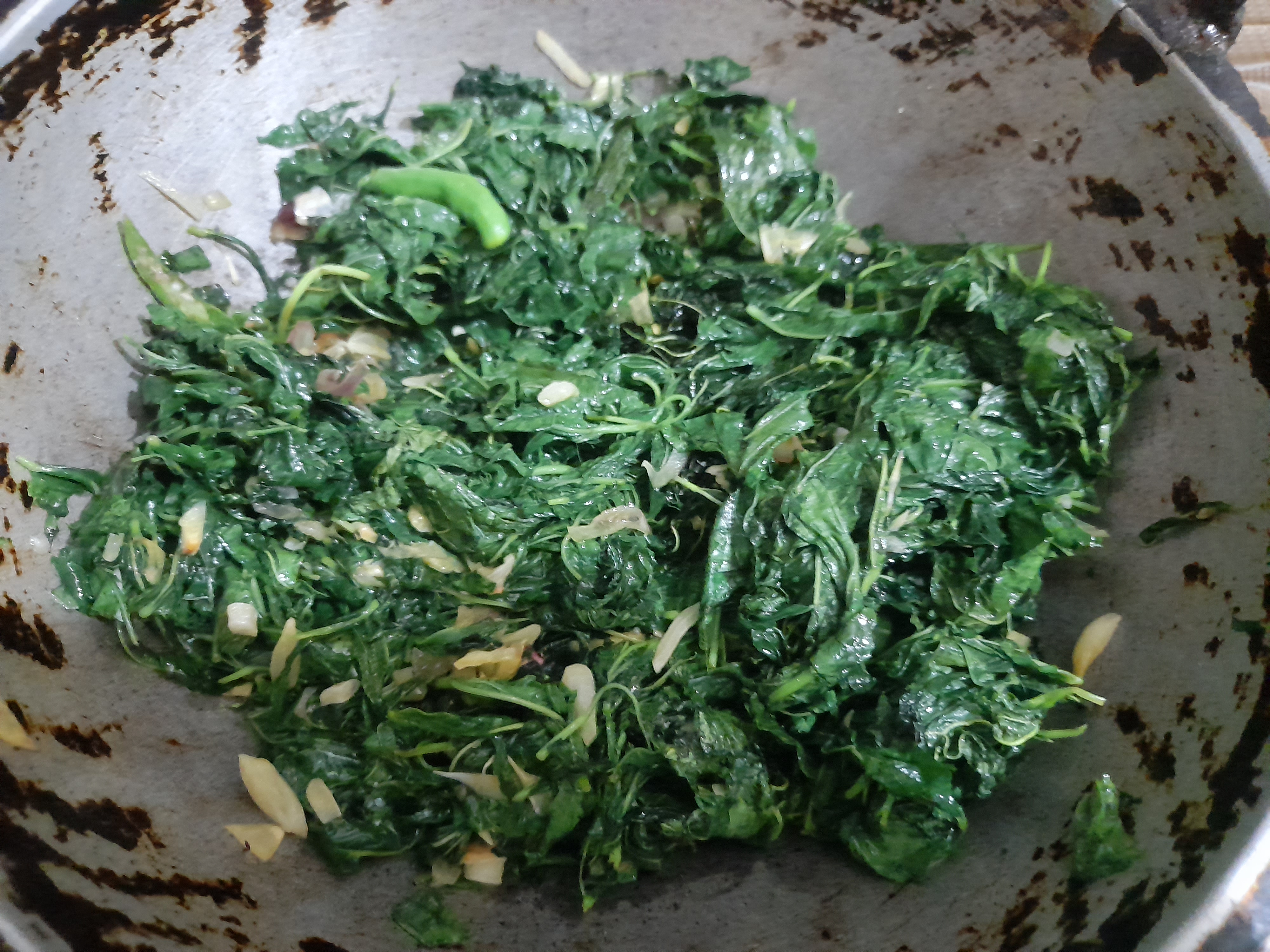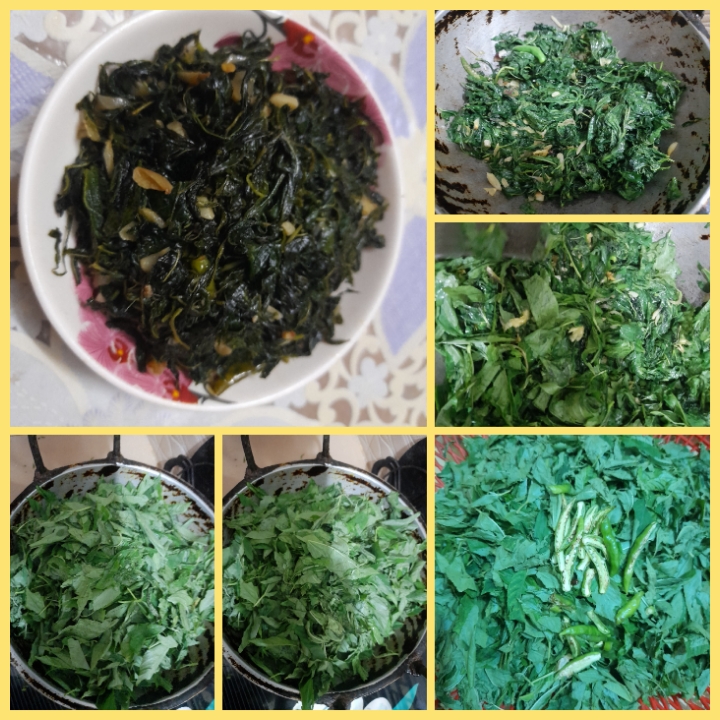 পাট শাক ভাজি রেসিপির প্রস্তুত প্রণালীর ছবি।