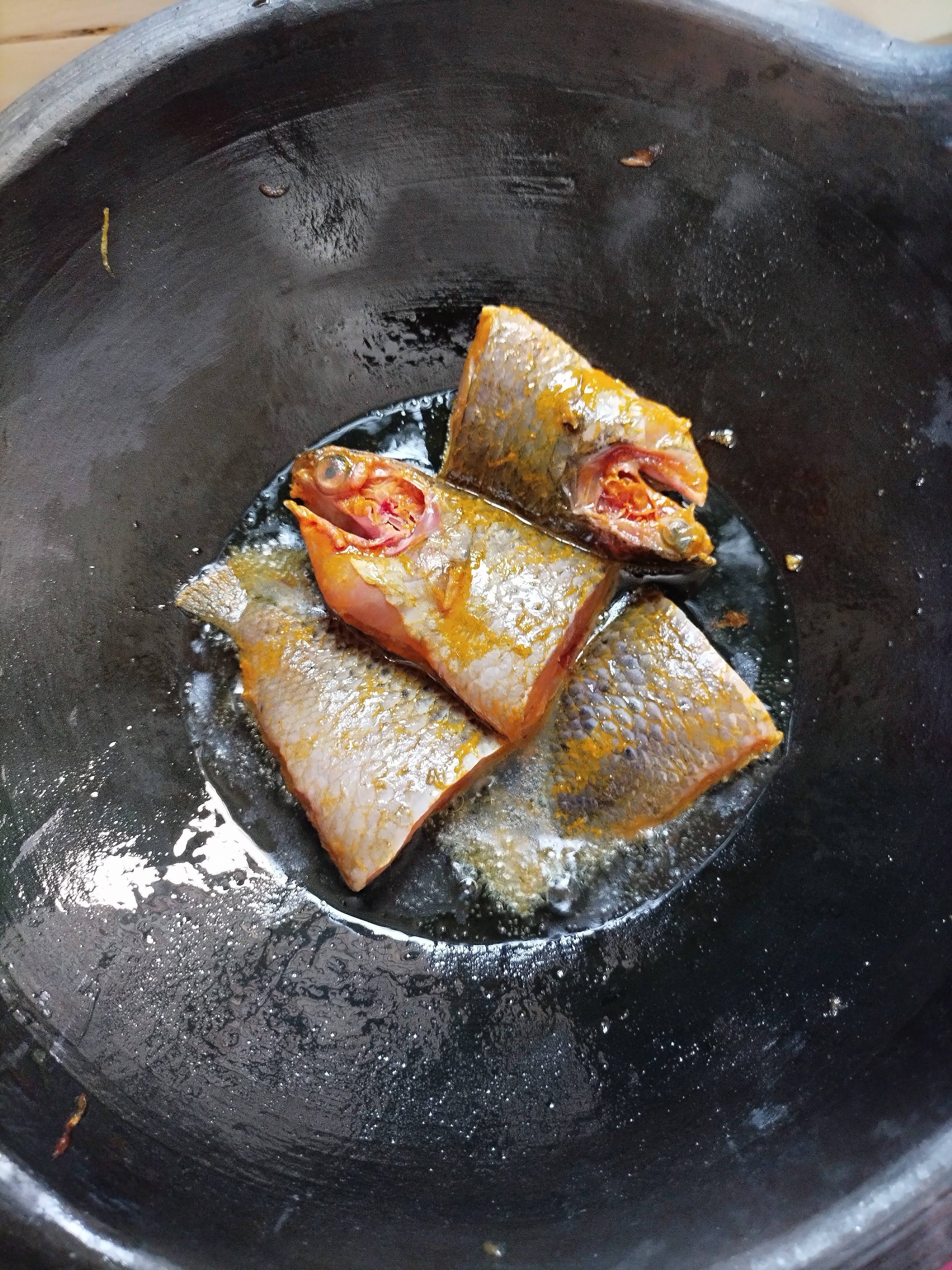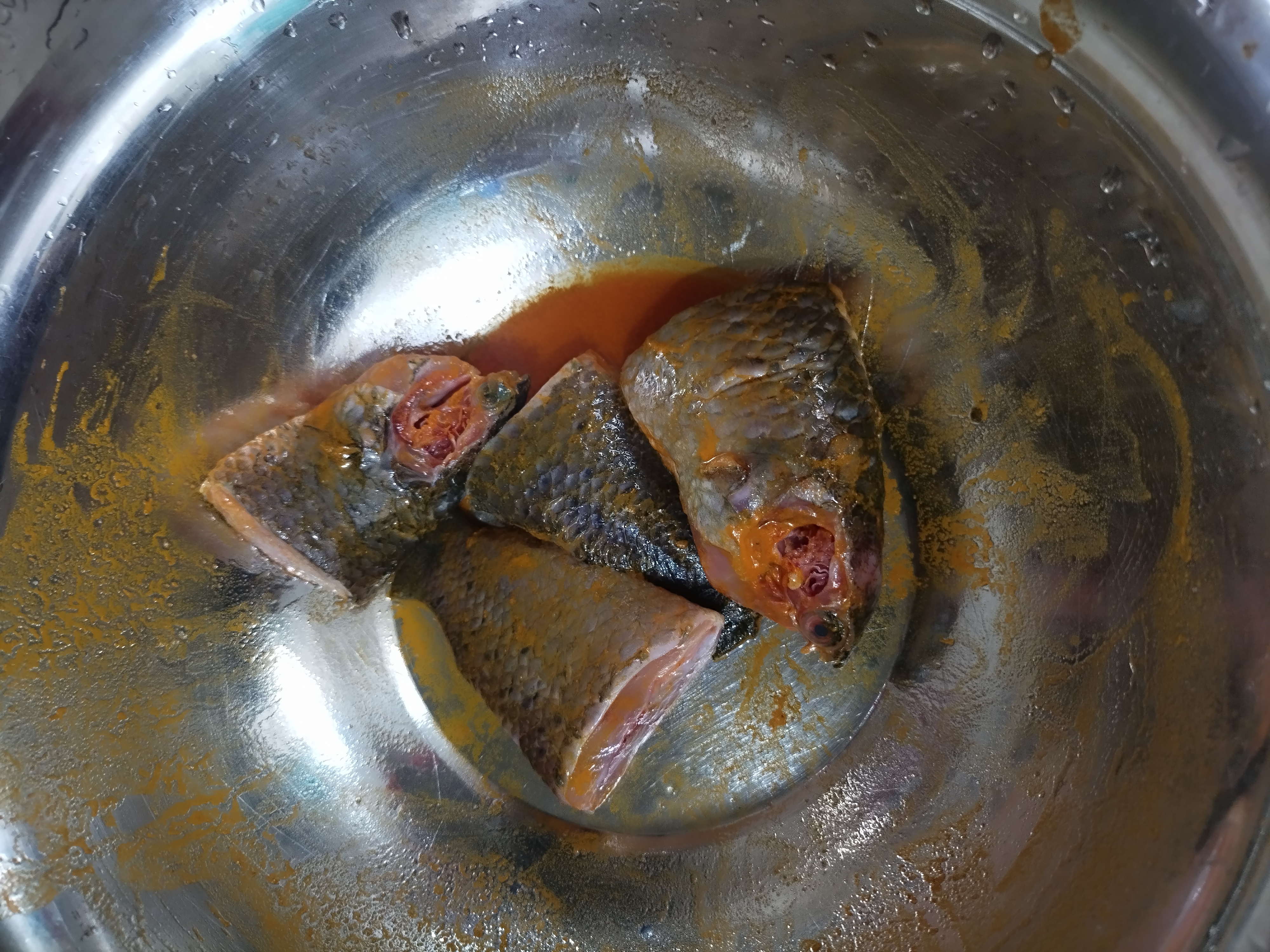 প্রথমে আমরা হলুদ মরিচ ও লবন দিয়ে মেখে নিব।