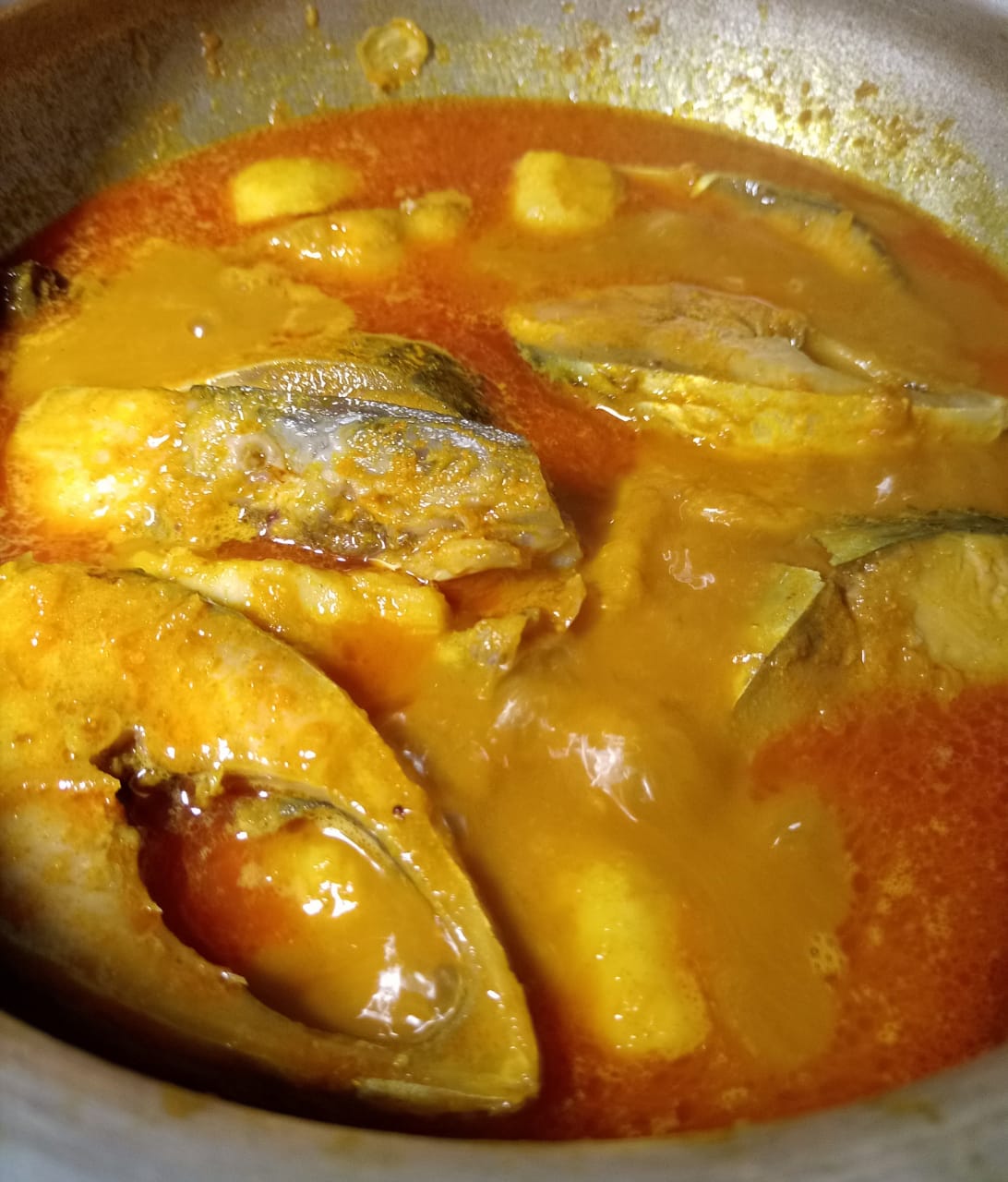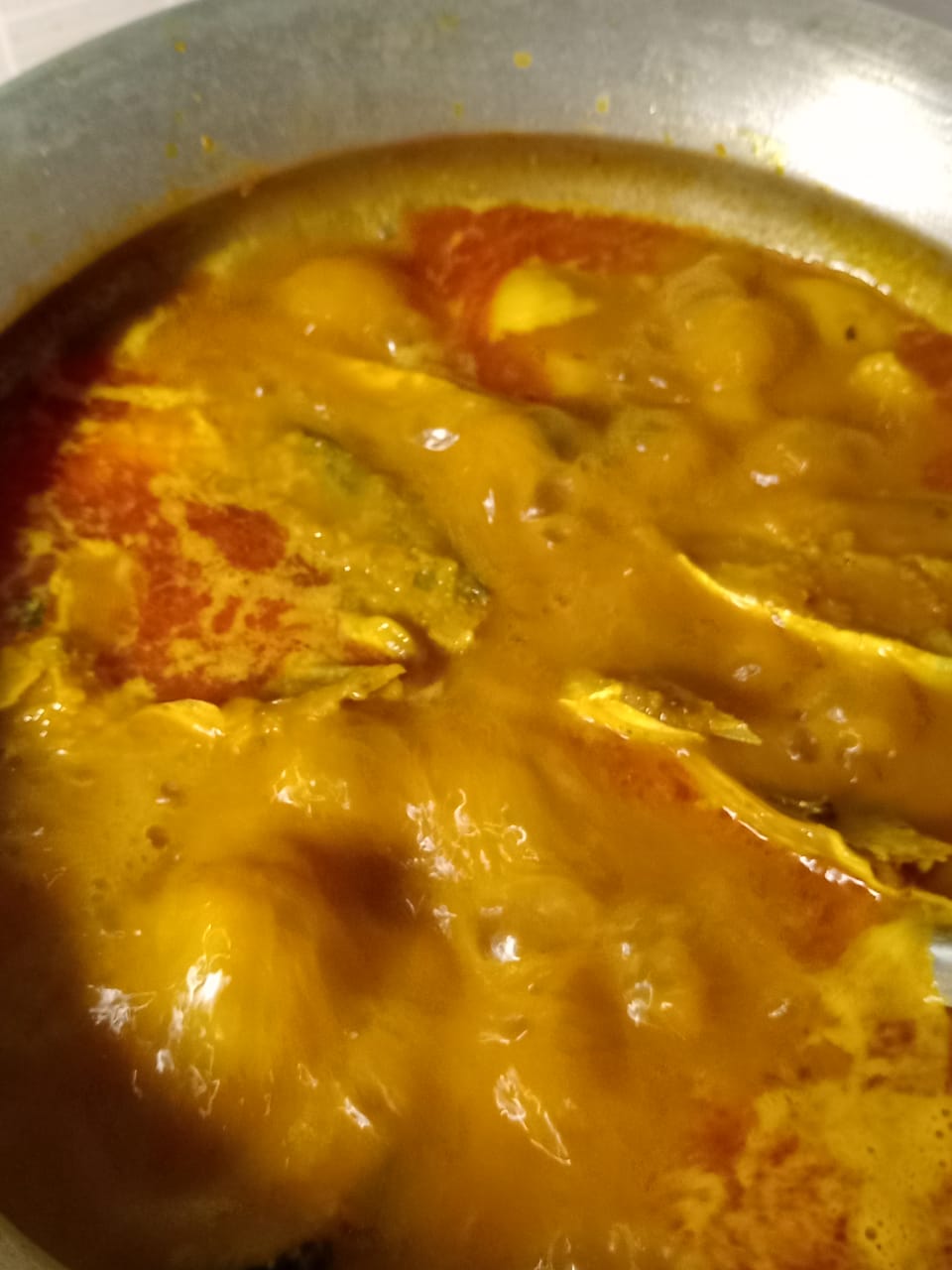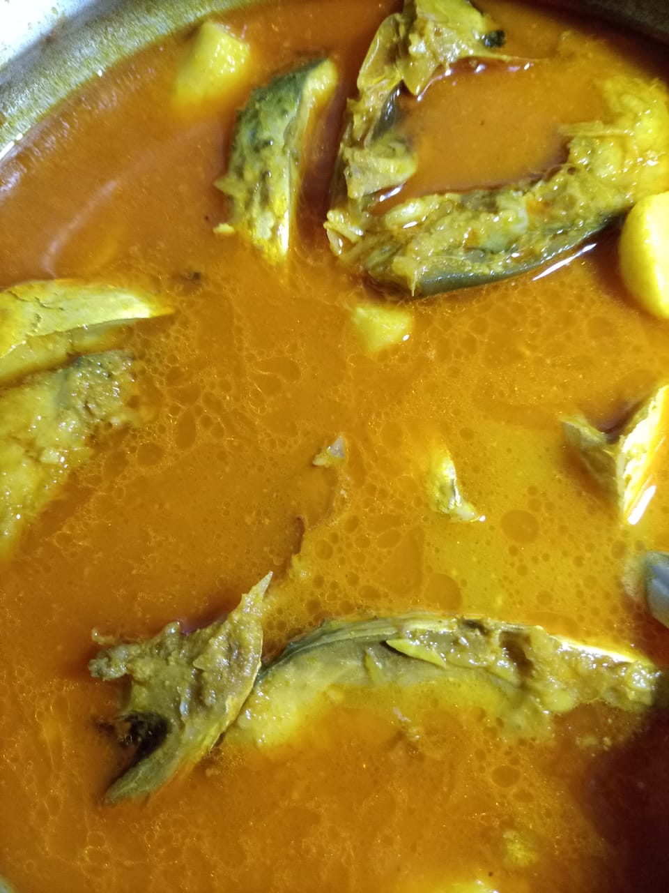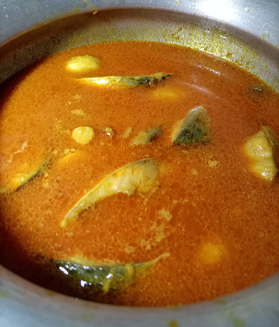 আমার কচুর মুখী দিয়ে ইলিশ মাছ রান্না সিদ্ধ হচ্ছে।