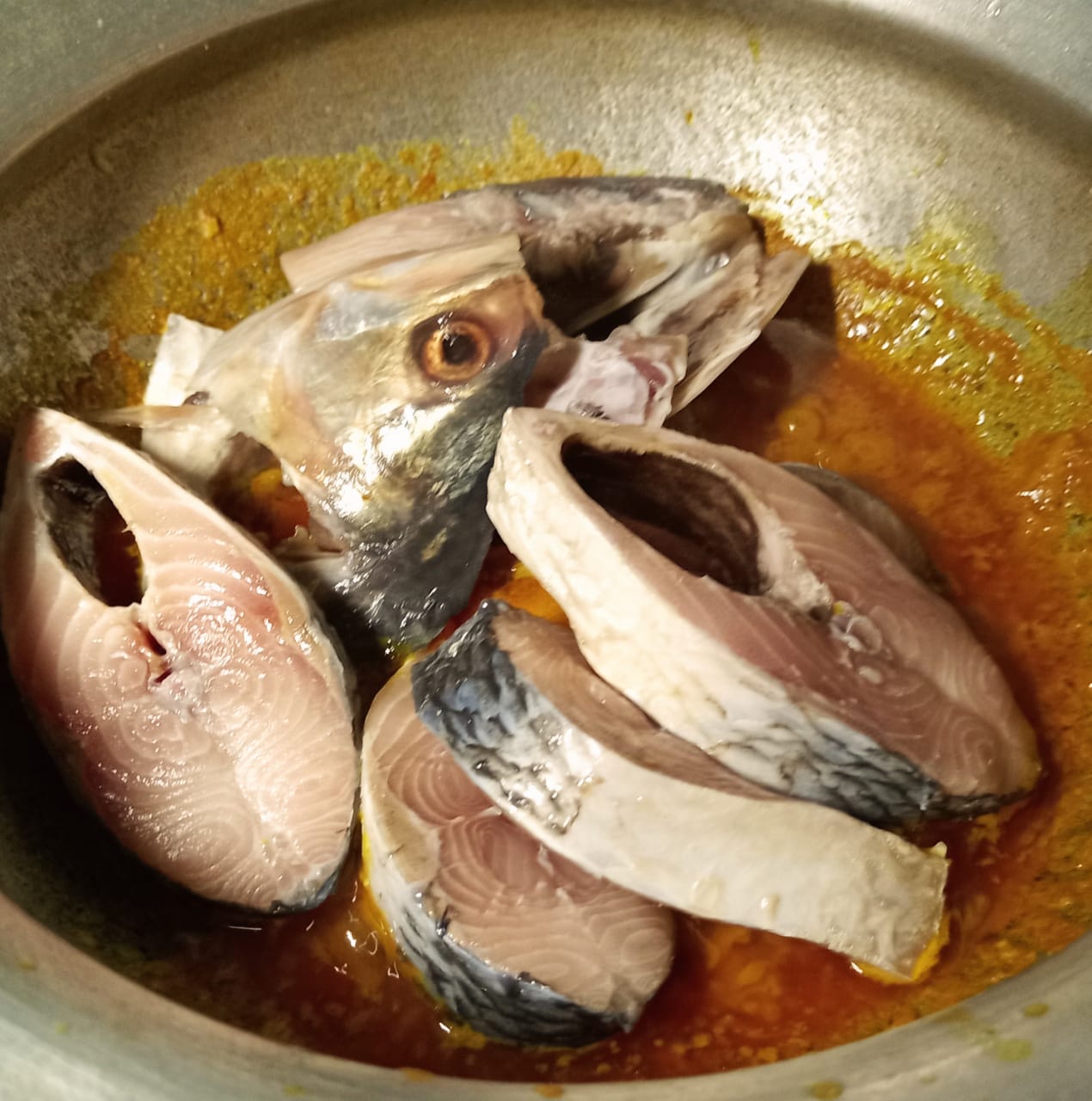 মাছ আর কচুর মুখী গুলো ভাল করে মসলাতে মিক্স করে নিতে হবে যাতে কষানোর সময় সব গুলোতে ঝুল ডুকে। মাছ সাবধানে নাড়তে হবে যাতে ভেঙ্গে না যায়।