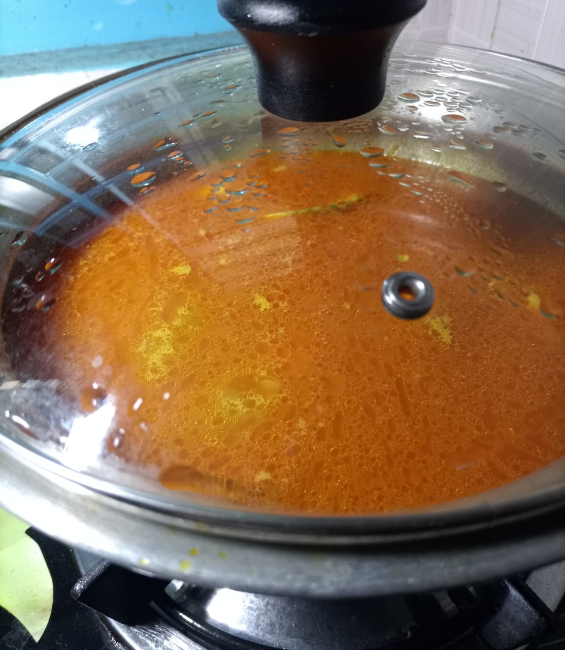 এখন ঢাকনা দিয়ে সিদ্ধ করে নিতে হবে হালকা করে।