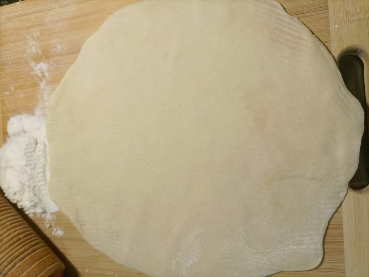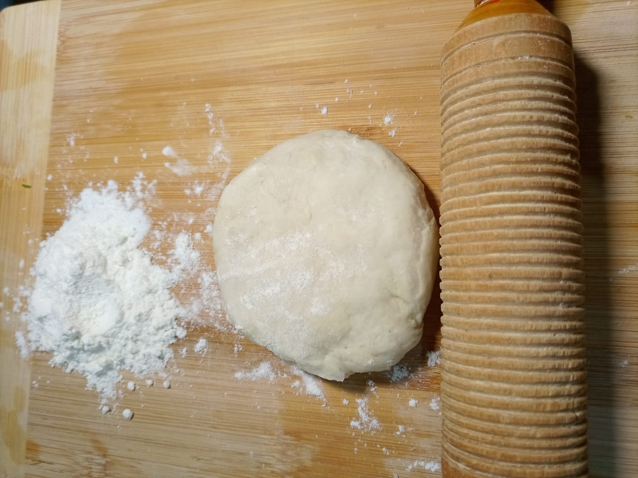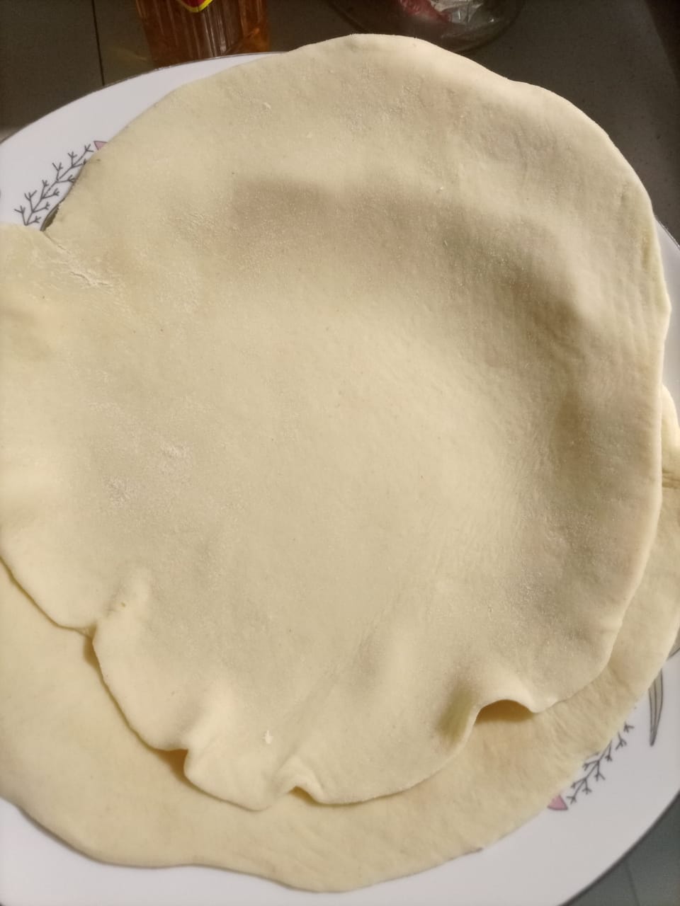 এই পর্যায়ে আমি আমার আগে তৈরী করা রুটির ডো ছিল তা থেকে সাইজ মত রুটির মেলার জন্য ডো নিয়েছি।