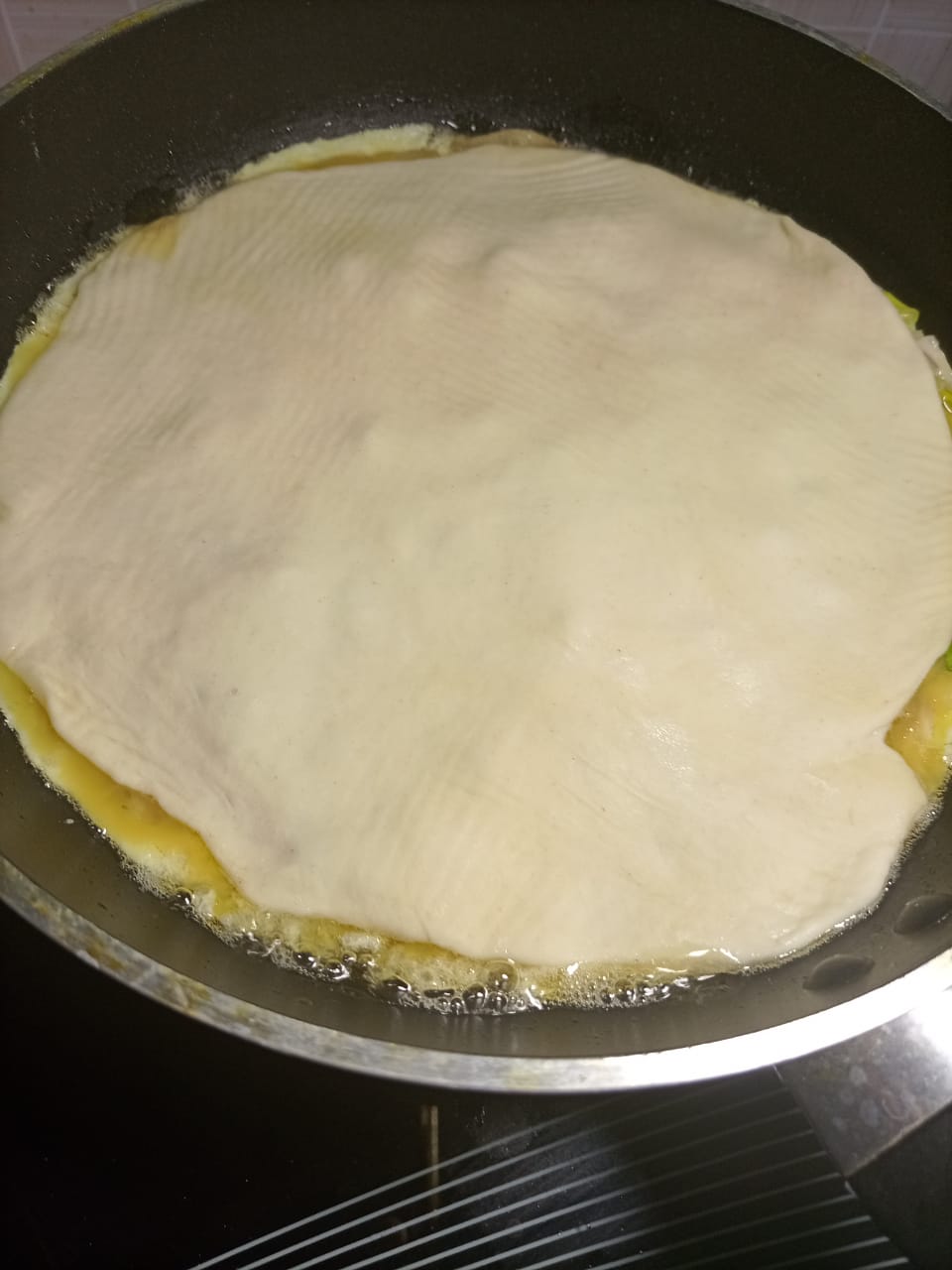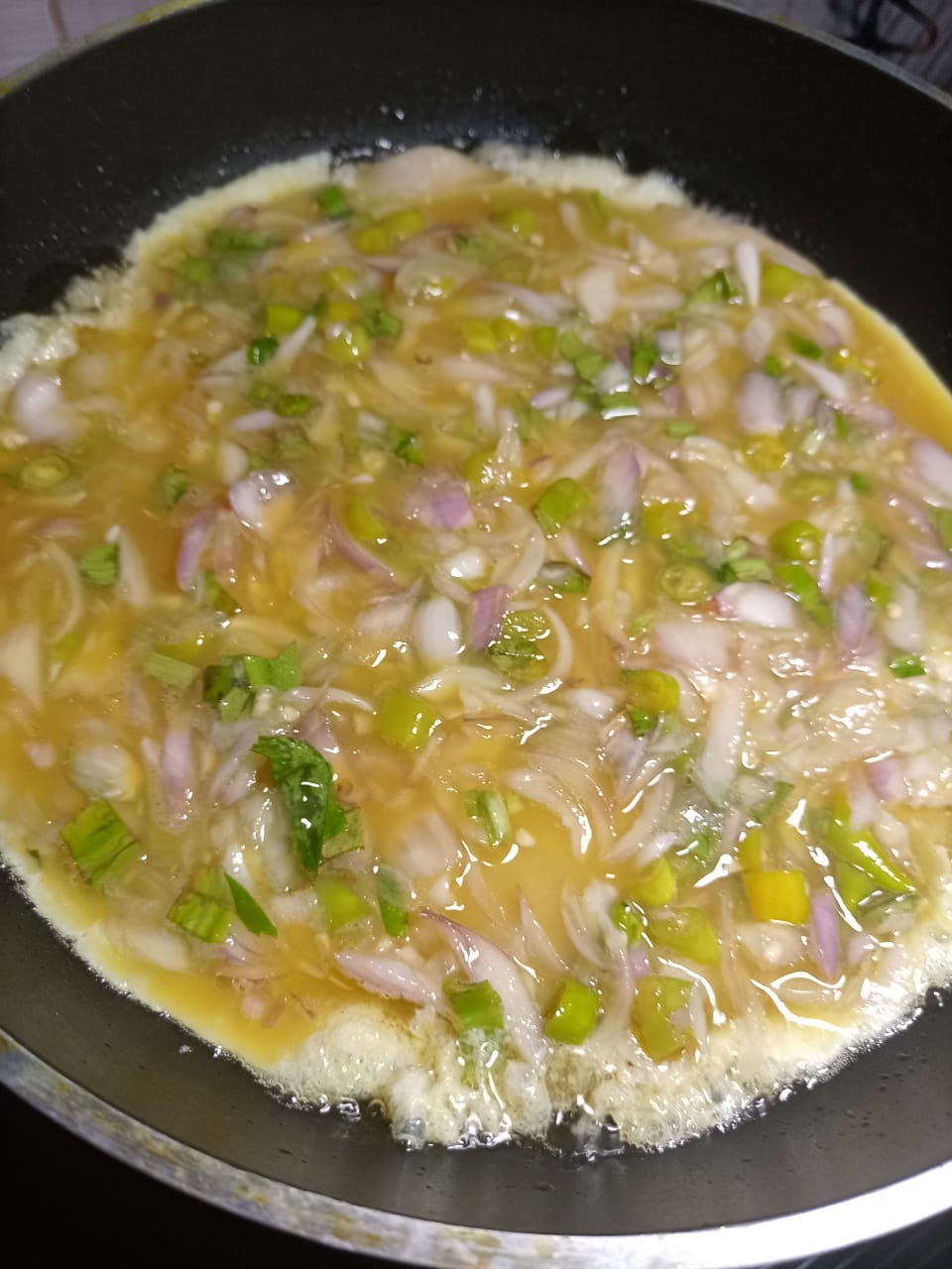 রুটি টা তেলের মধ্যে হালকা ভাজা হয়ে আসলে আমি ডিমের মিশ্রণ দিয়ে দিবো