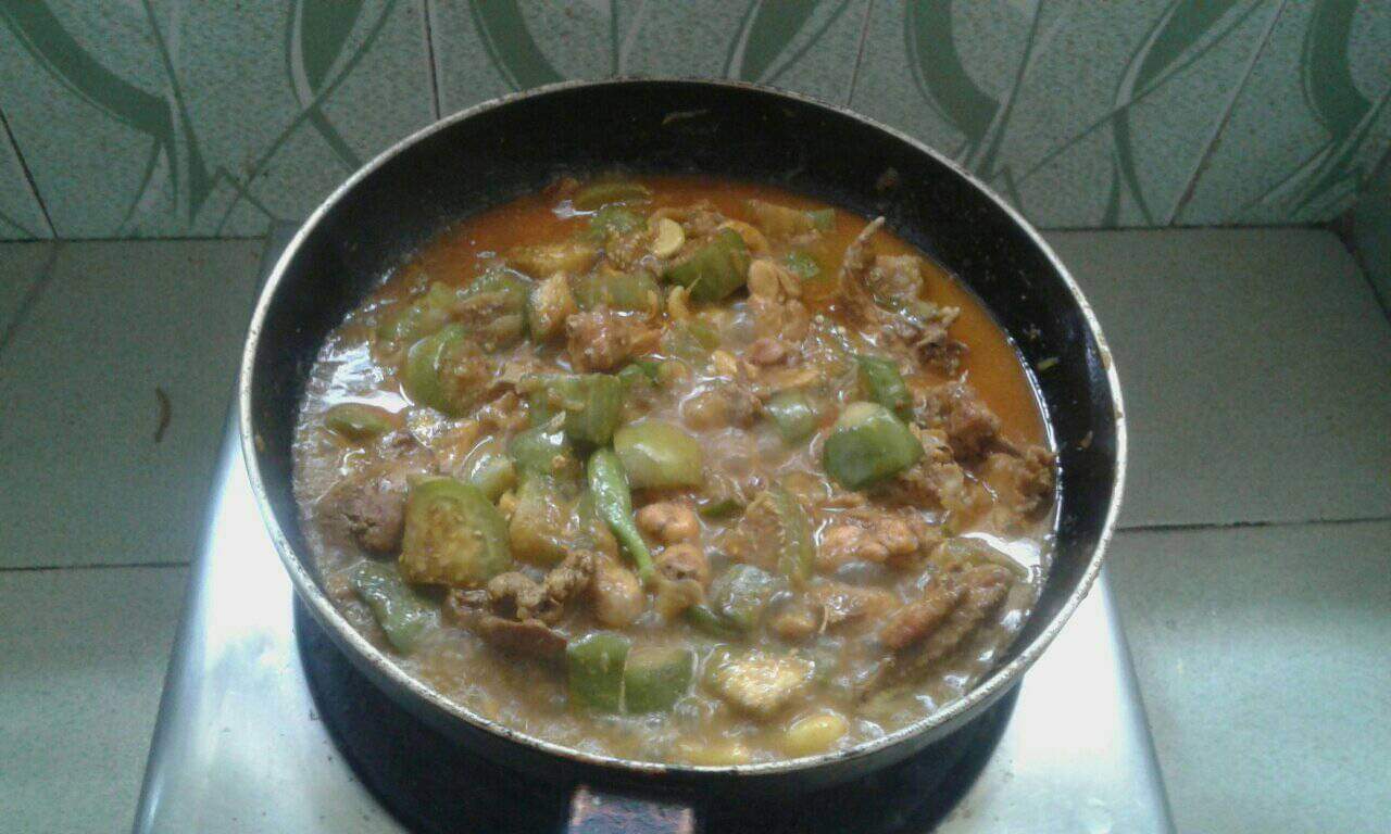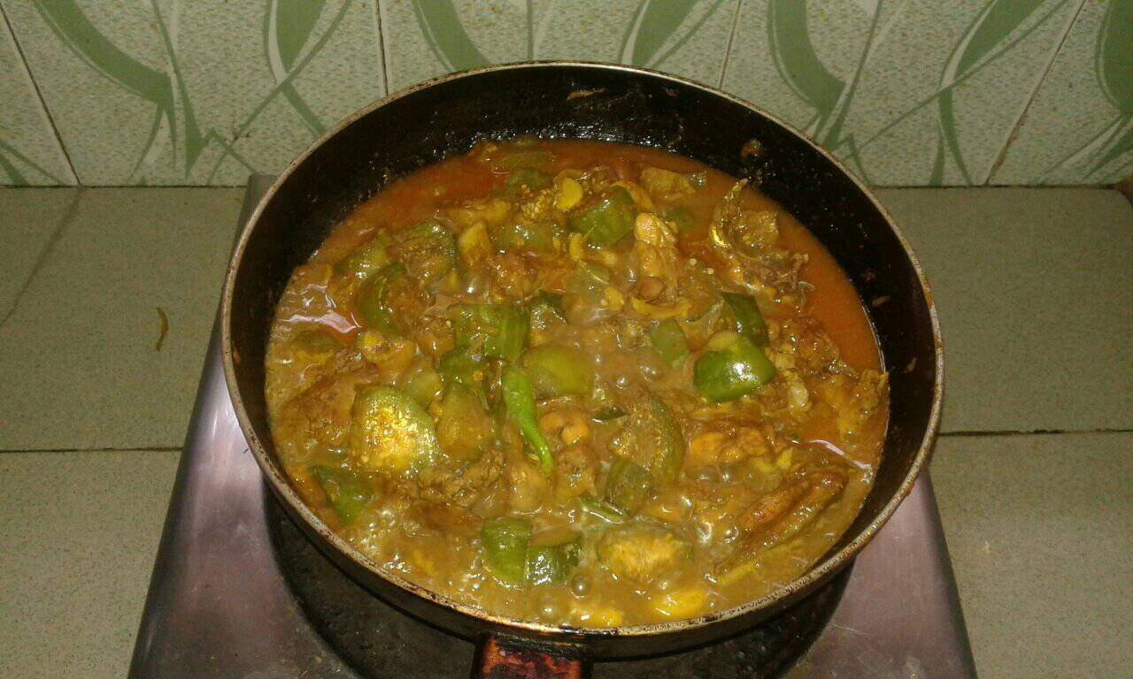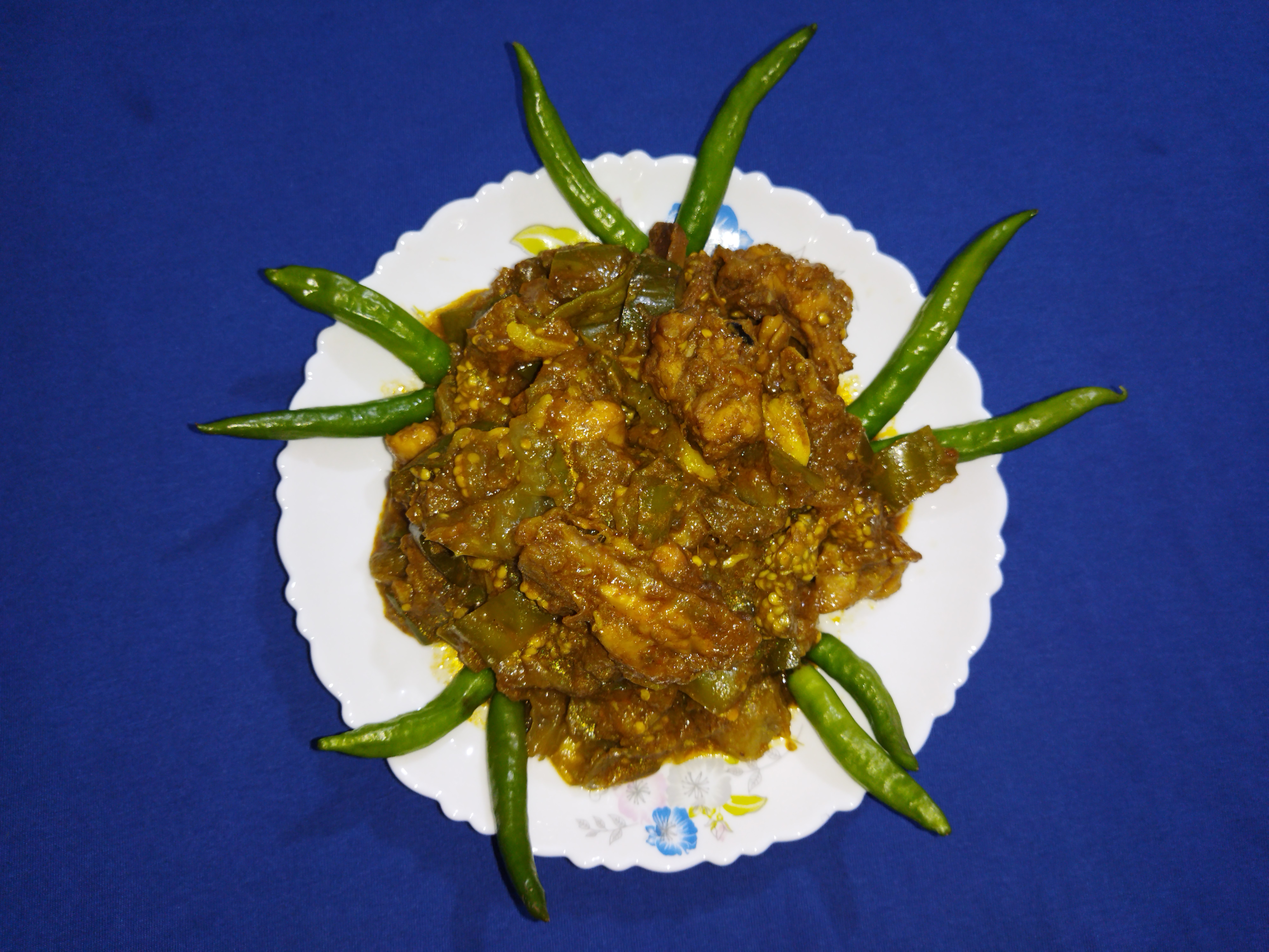 বেগুন ও মুরগির মাংস ভুনা।