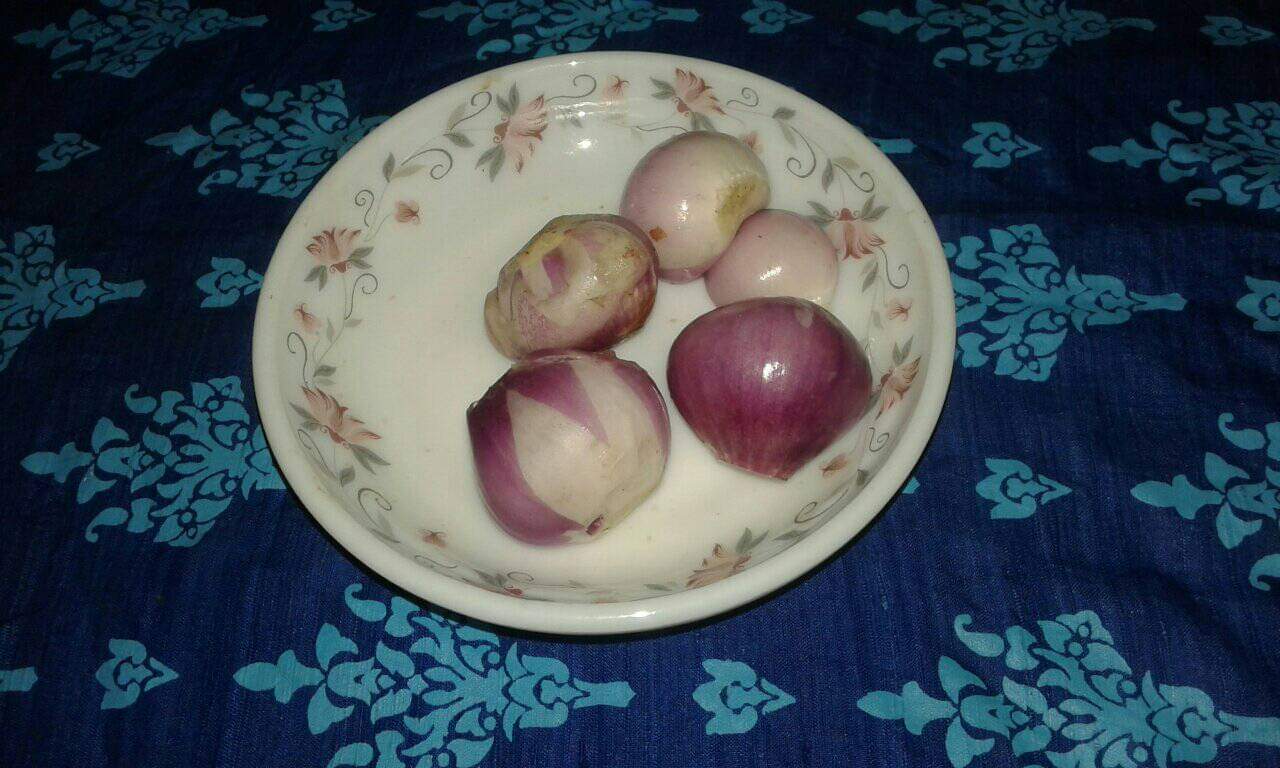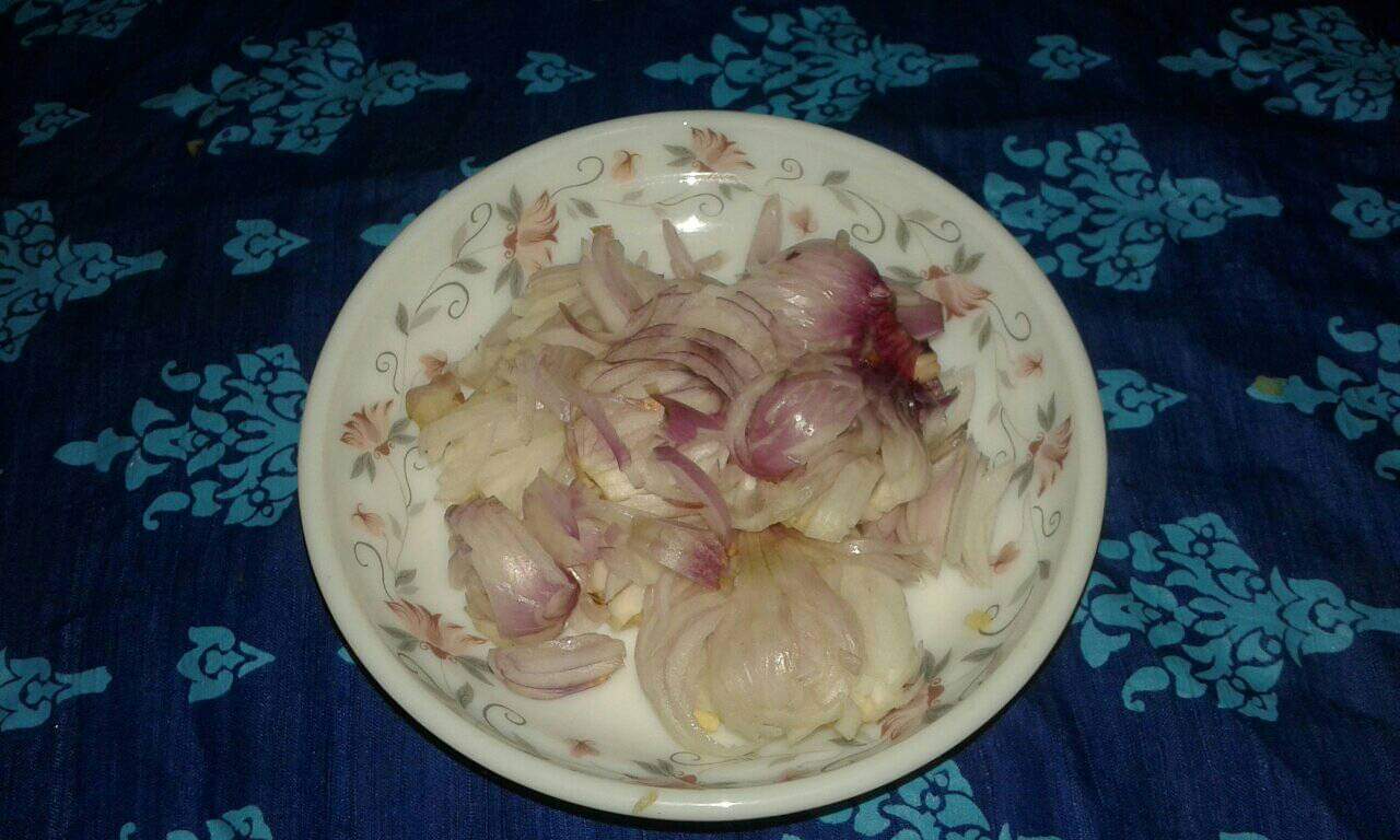 পেঁয়াজের খোসা পরিষ্কার করে সুন্দর করে পানি দিয়ে ধুয়ে নিয়ে পেঁয়াজ গুলো কেটে নিয়েছি রান্নার জন্য।