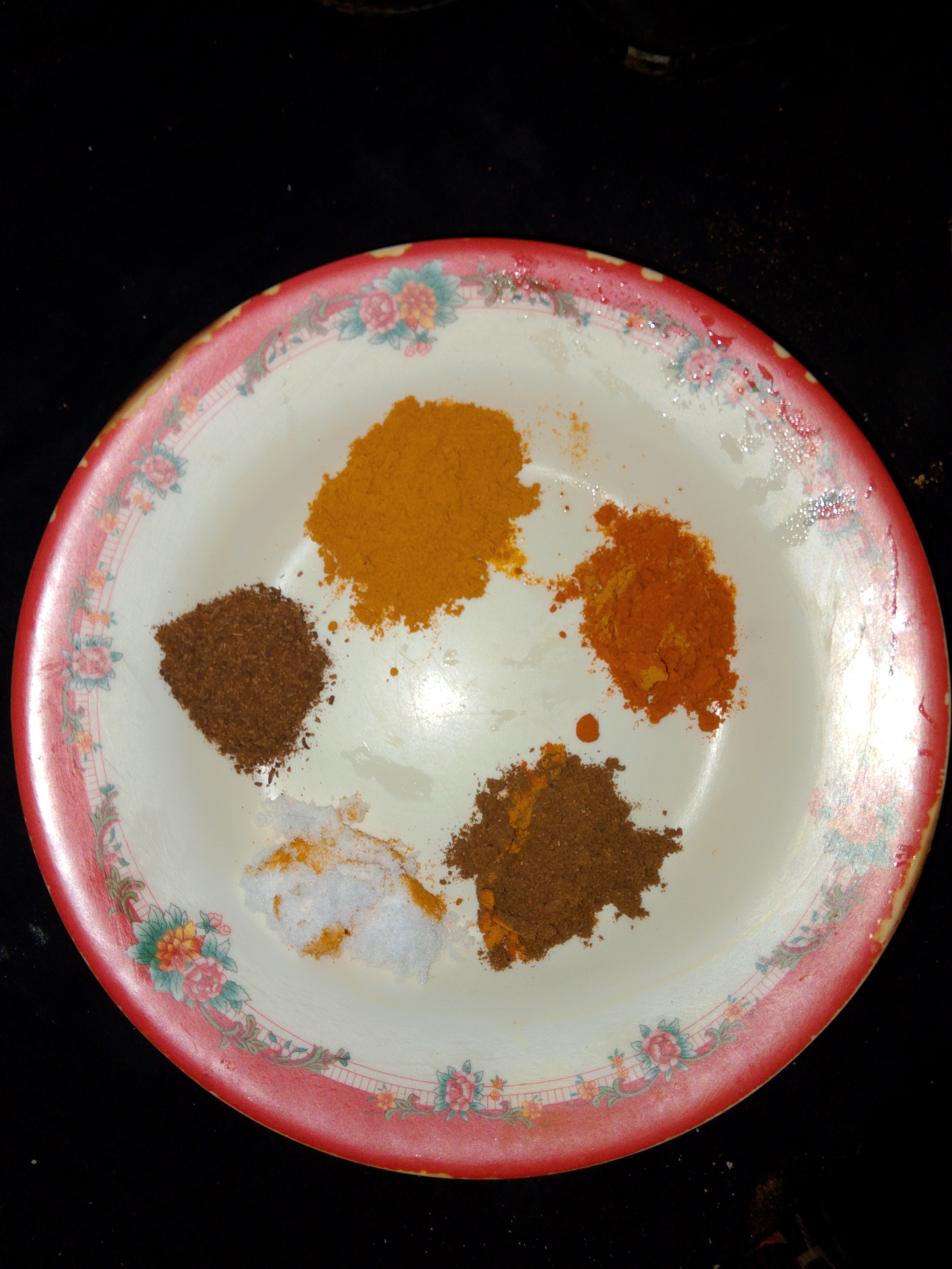 এখানে আমি লবণ,মরিচের গুড়া,হলুদের গুঁড়া,জিরা গুঁড়া এবং ধনিয়া গুড়া দিয়ে দিই।