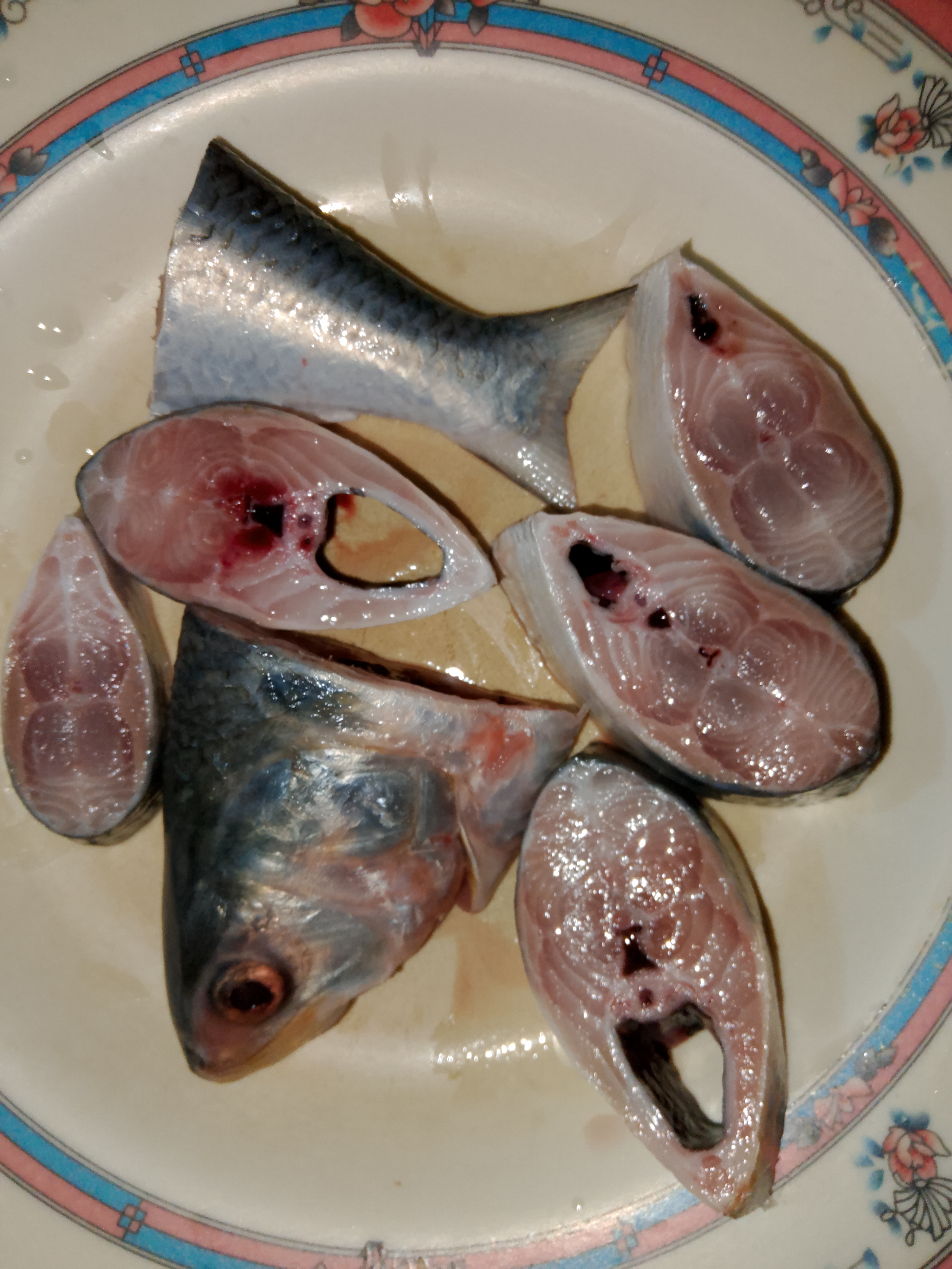 এখানে আমি ইলিশ মাছটি ৩০ মিনিট মতো আগে ফ্রিজ থেকে বের করে রেখেছিলাম। তারপর সুন্দর করে আইস ছাড়িয়ে কেটে নিয়েছে। মাছটি ৭ পিস হয়েছিল।