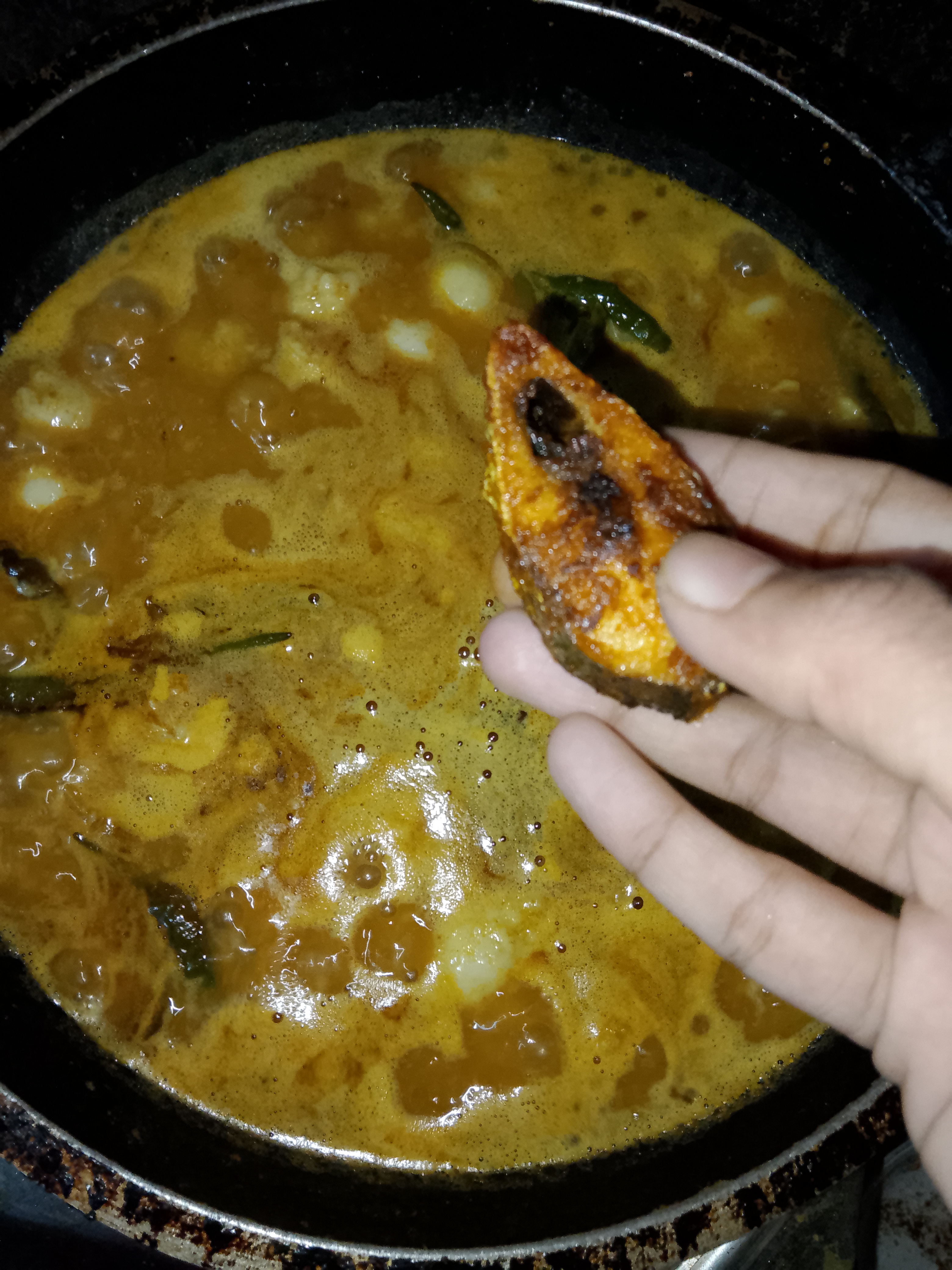 তারপর রান্নার প্রায় শেষের দিকে মাছগুলো দিয়ে দিই।