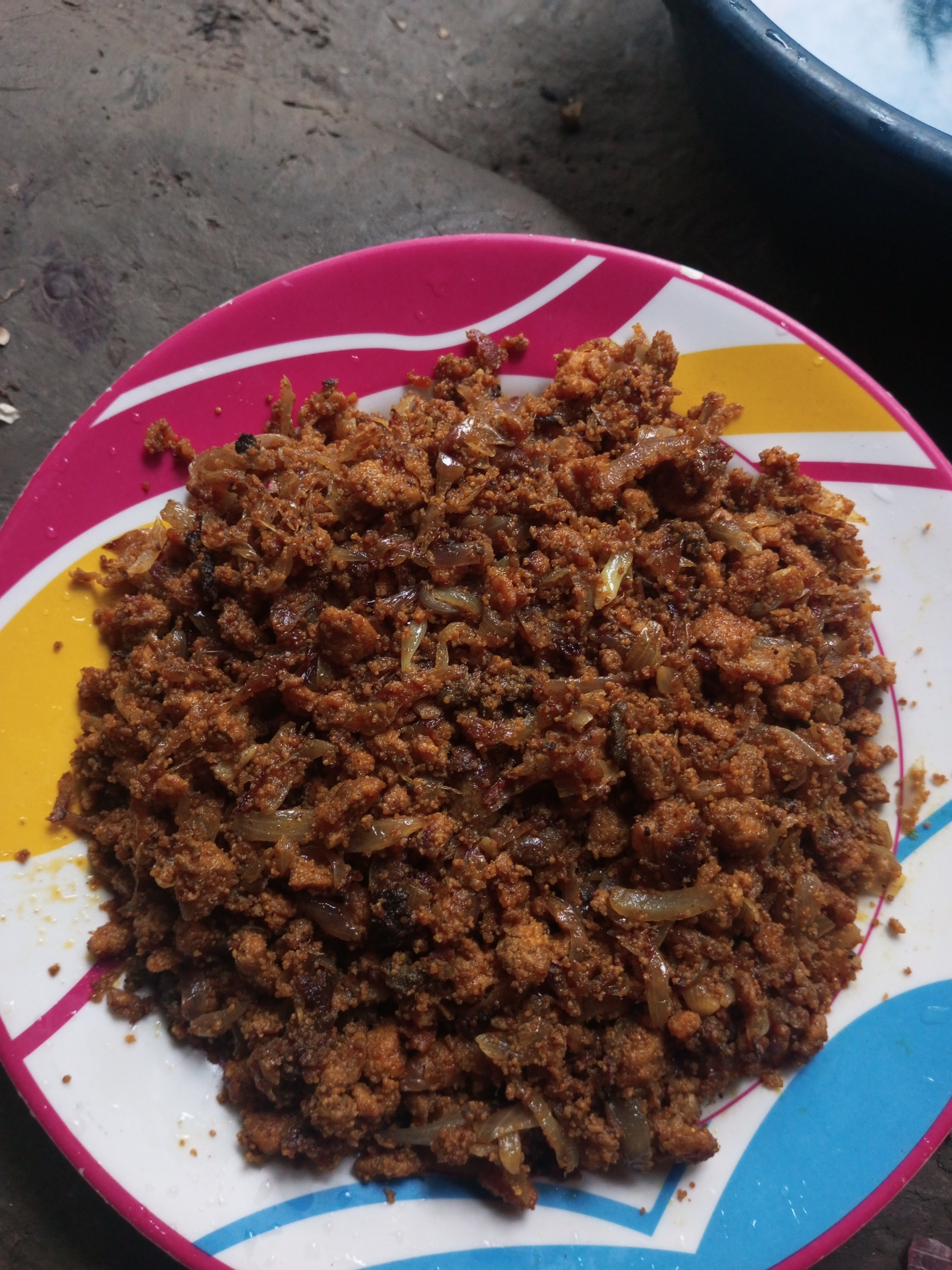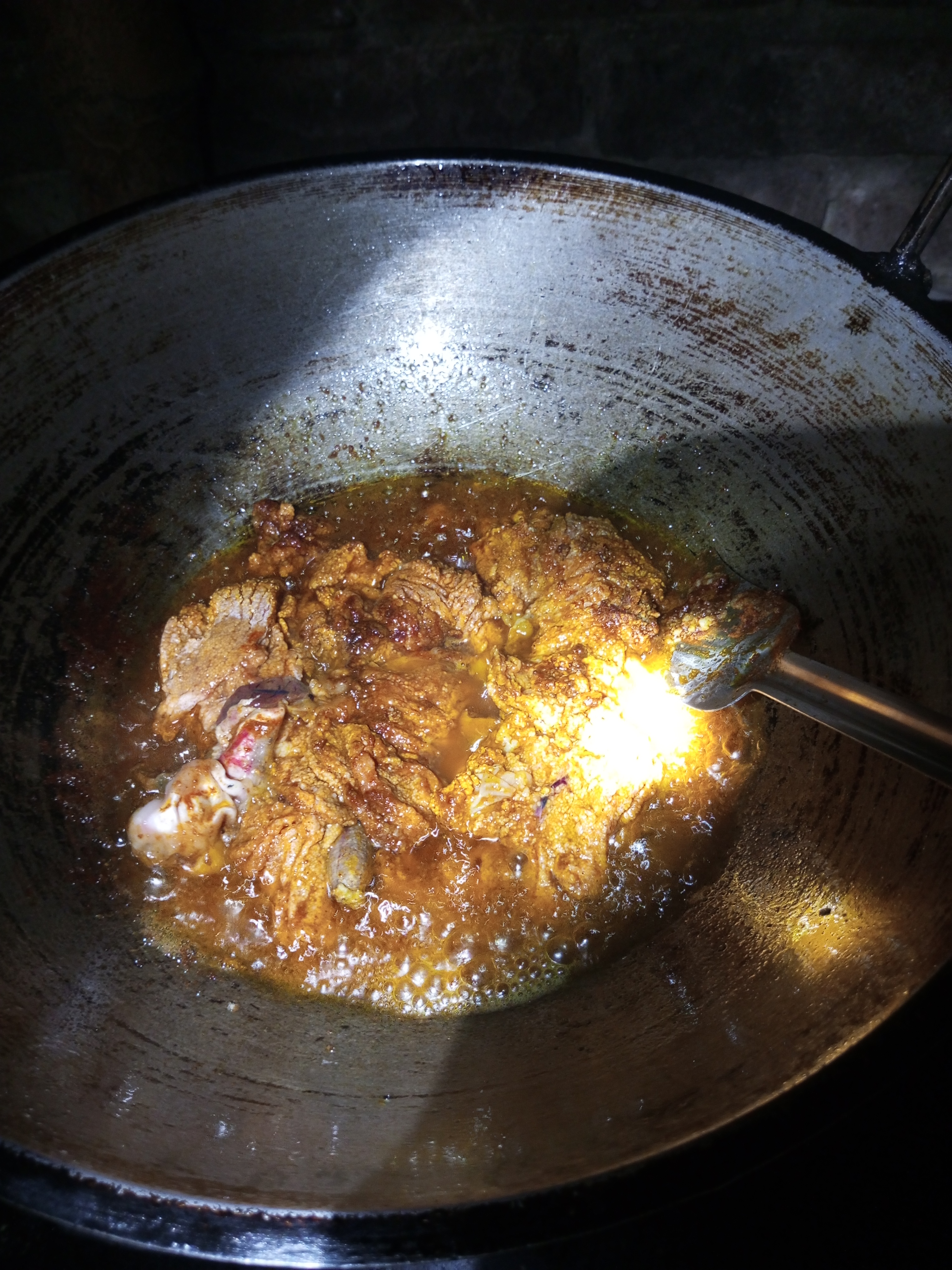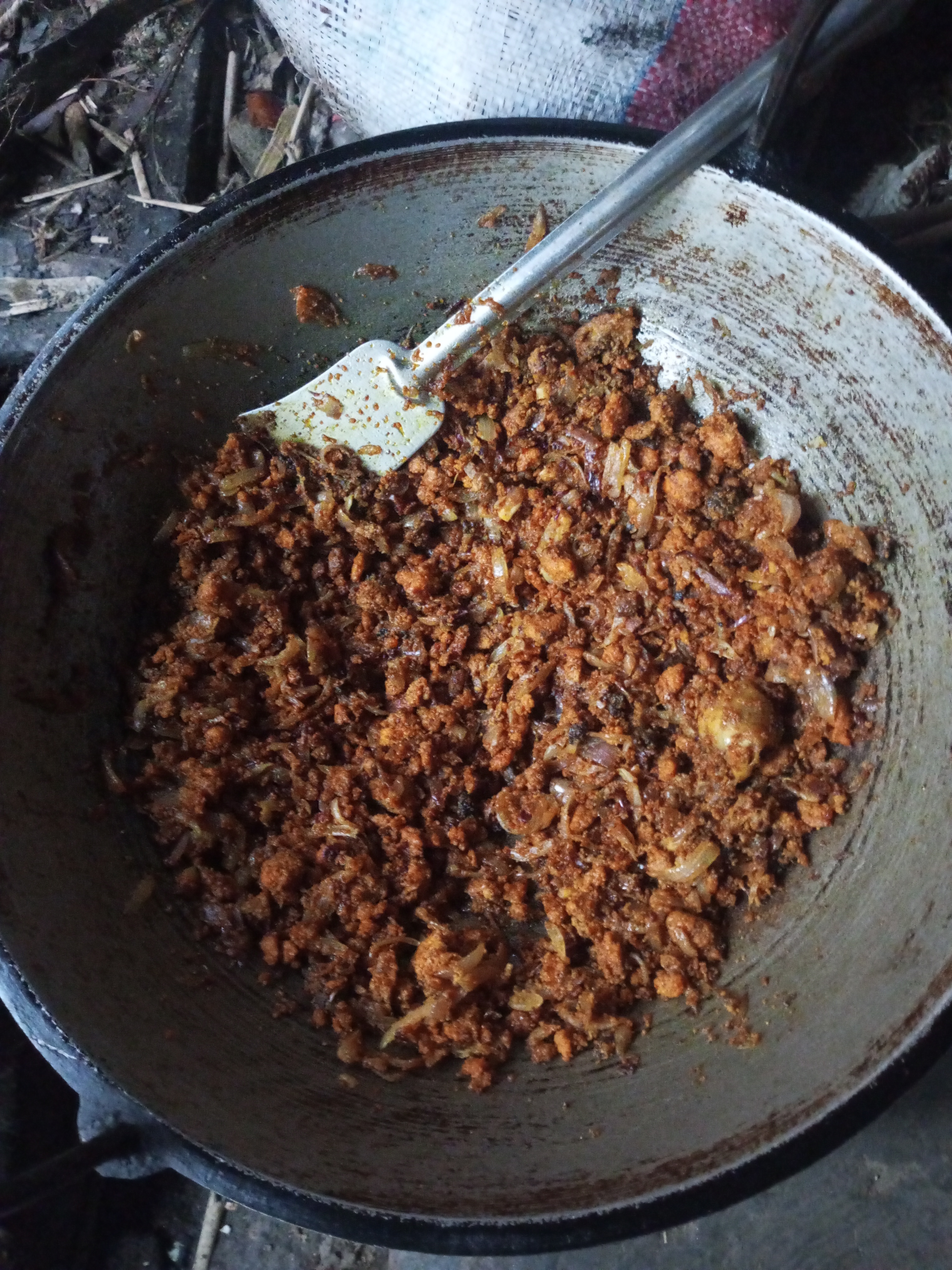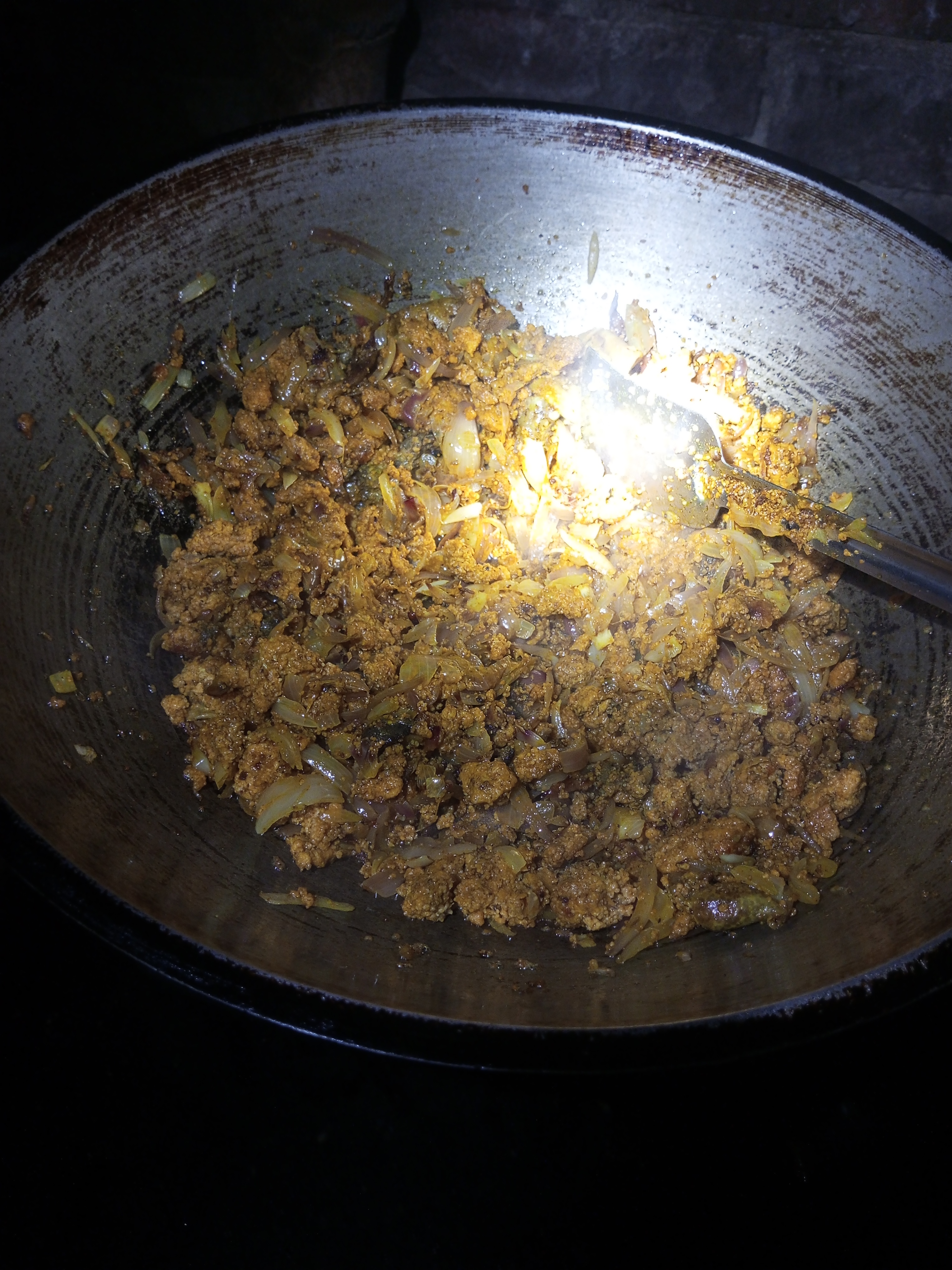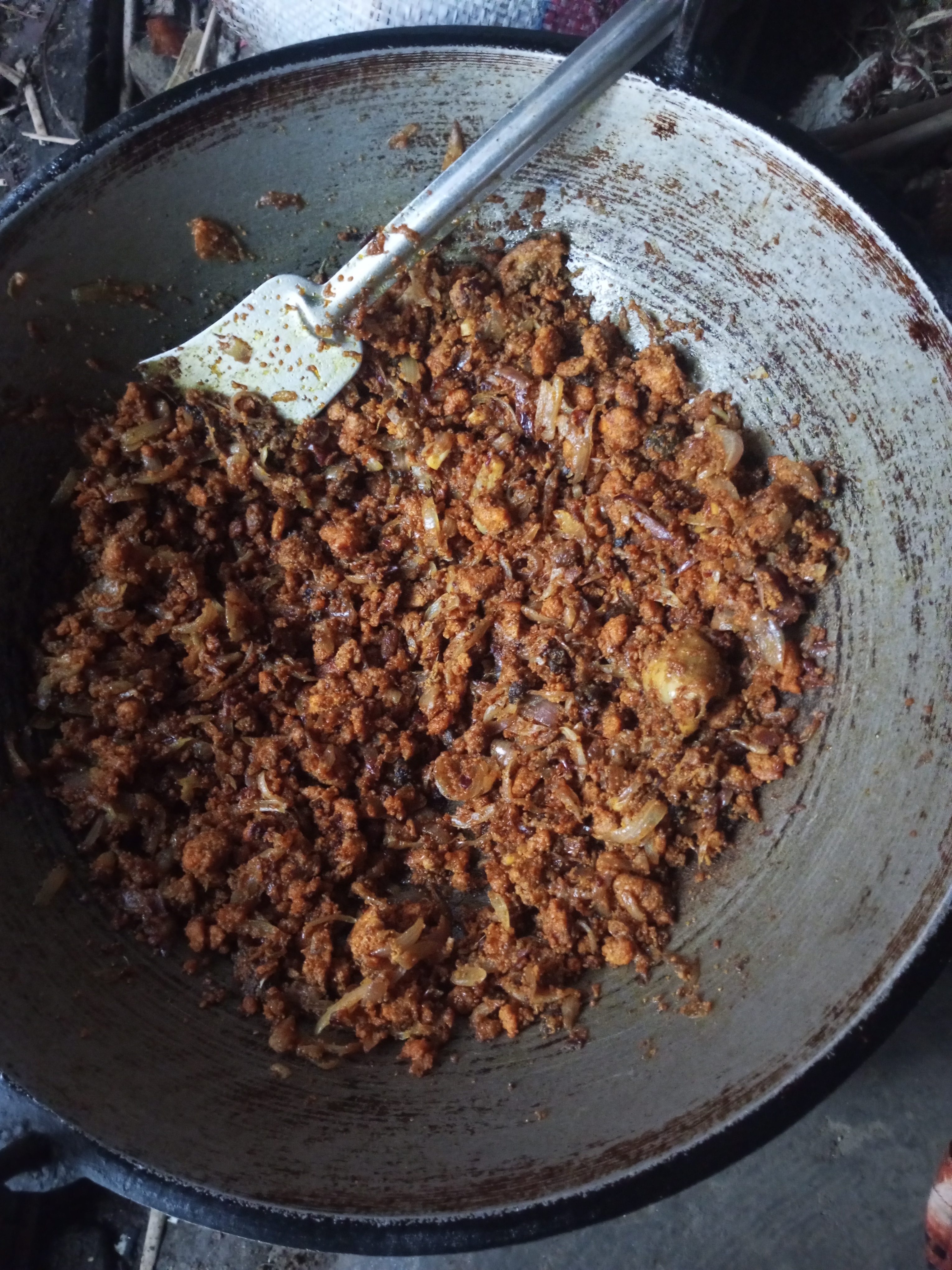 চুলার পাড়ে যথেষ্ট অন্ধকার থাকাই ভালোভাবে রান্না এবং পাশাপাশি ফটোগ্রাফি করা আমার জন্য বড় হিমশিম হয়ে পড়েছিল। তাই চেষ্টা করছিলাম খুব সুন্দর করে খুন্তি দিয়ে নেড়েচেড়ে রান্নার কার্যক্রম করার জন্য। একটি পর্যায়ে সমস্ত তেল আর মাছের ডিমের মধ্যে থাকা রসগুলো শুকিয়ে যেতে থাকলো। বারবার খুন্তি দিয়ে ভালোভাবে নাড়তে থাকায় মাছের ডিম বেশি সুন্দর ঝুর ঝুরি হয়ে যেতে লাগলো। যেহেতু এটা মাছের ডিম তাই বেশি একটা জোরেশোরে জ্বাল দেওয়া যাবে না, কারণ বেশি জাল দিলে পুড়ে যাওয়ার সম্ভাবনা থাকে।