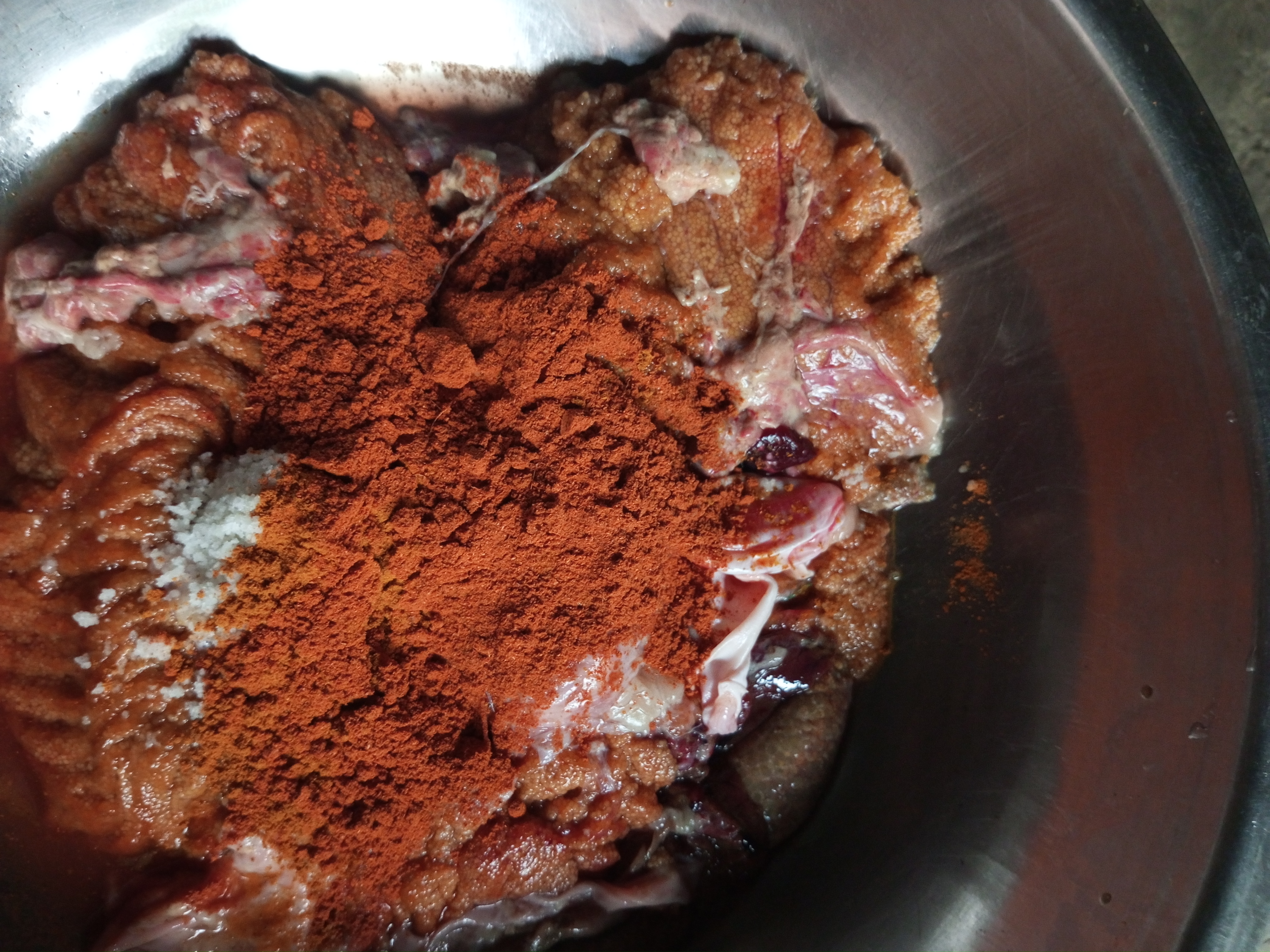 এবার ডিমগুলো একটি গামলার মধ্যে রাখলাম। যেহেতু মাছের ডিম তাই ঝাল হলুদের গুড়া খুব ভালোভাবে মেশাতে হবে তার সাথে। তাই পর্যাপ্ত পরিমাণে ঝাল হলুদের গুড়া গামলার মধ্যে থাকা ডিমের উপরে ভালো করে ছিটিয়ে দিলাম। এরপর খুব ভালোভাবে মনোযোগ সহকারে তা মিসিয়ে দিলাম। যেহেতু মাছের ডিম তাই বেশি একটা নাড়াচড়া না করাটাই ভালো। তবে মসলা গুড়াগুলো যেন ভালোভাবে মিক্সার হয় সেদিকেও লক্ষ্য রাখতে হবে।