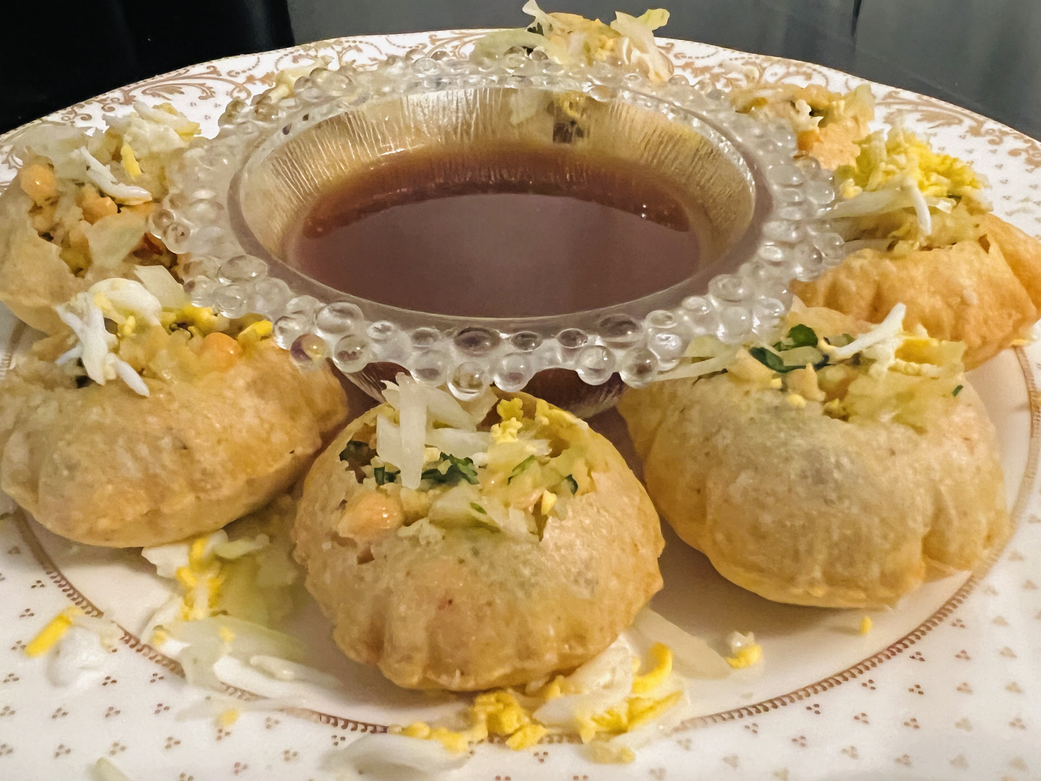 এরপর পানিপুরির সস মাঝখানে বসিয়ে দিলাম পরিবেশনের জন্য।
