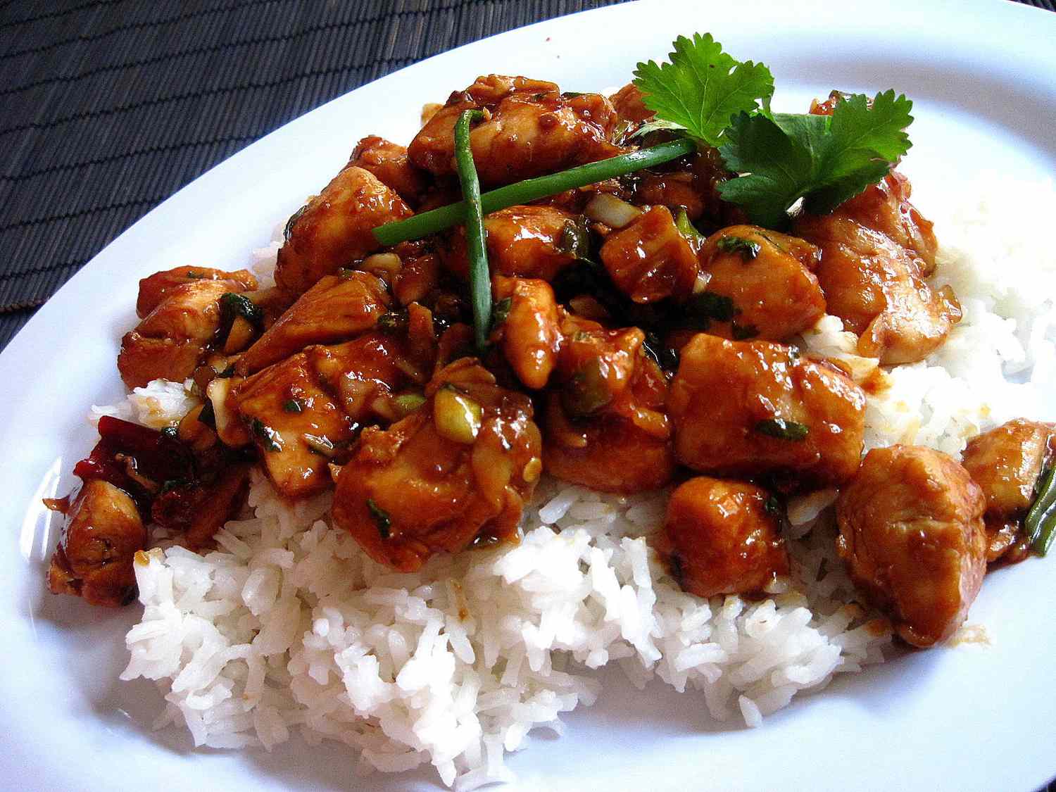 宮保雞丁通常是熱騰騰的放在米飯上。鮮嫩的雞肉、脆脆的花生和辛辣濃郁的醬汁形成鮮明對比,打造出令人難以置信的令人滿意的一餐。