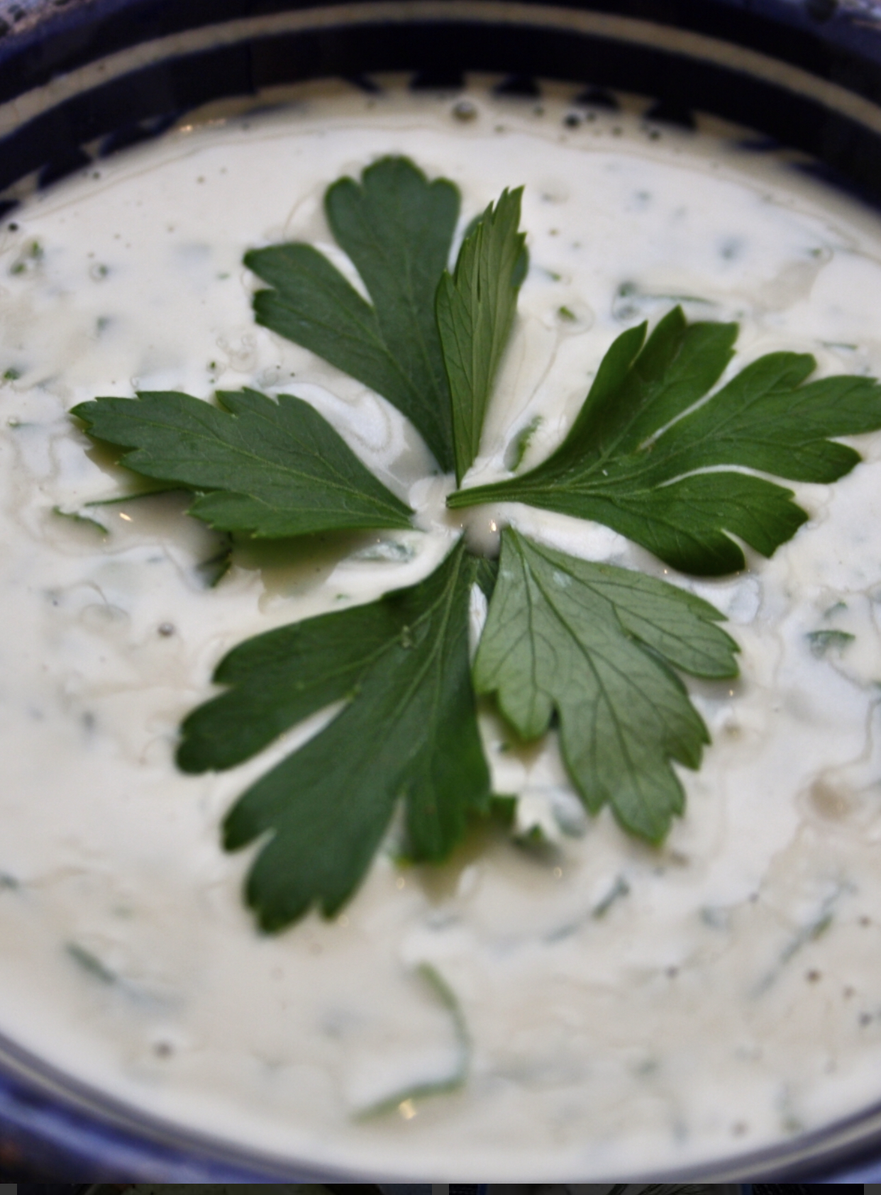 Add the chopped parsley and toss to coat the leaves. Serve with crackers, veggies, ornuse as a spread or dressing!