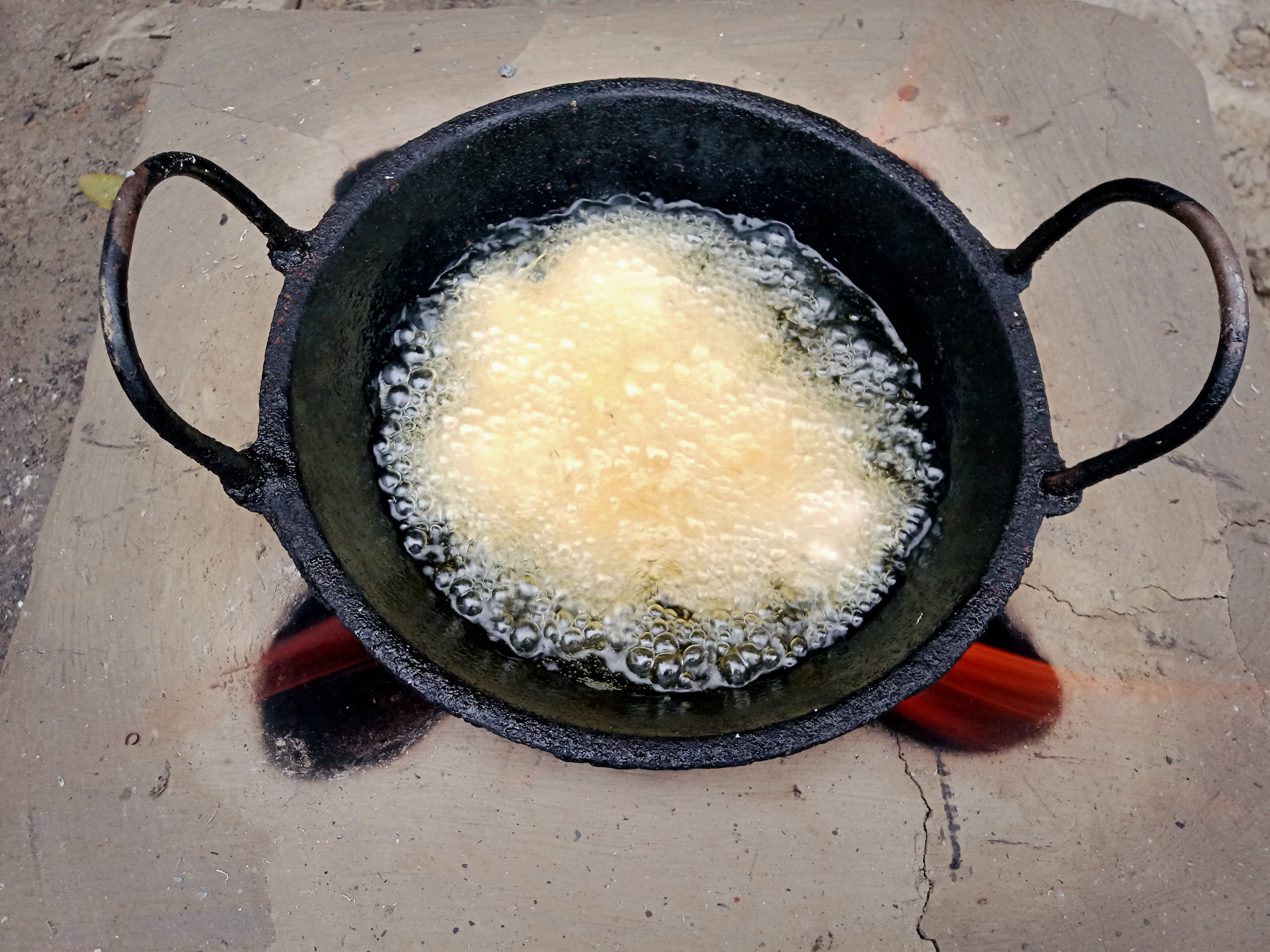 | তারপর চুলায় কড়াি বসিয়ে দিলাম। বসানোর পর তেল গরম করে নিলাম কিছুক্ষণ |
