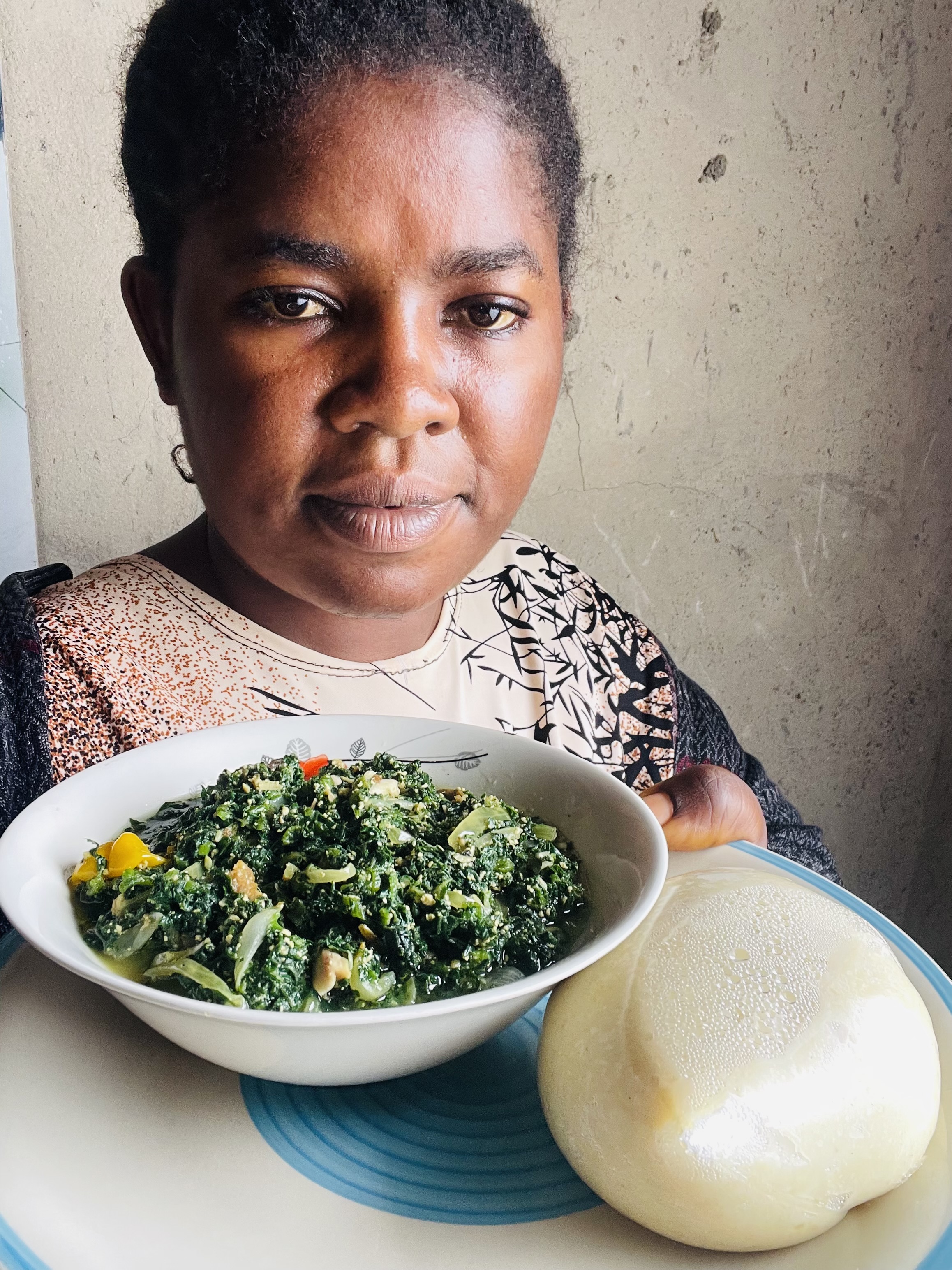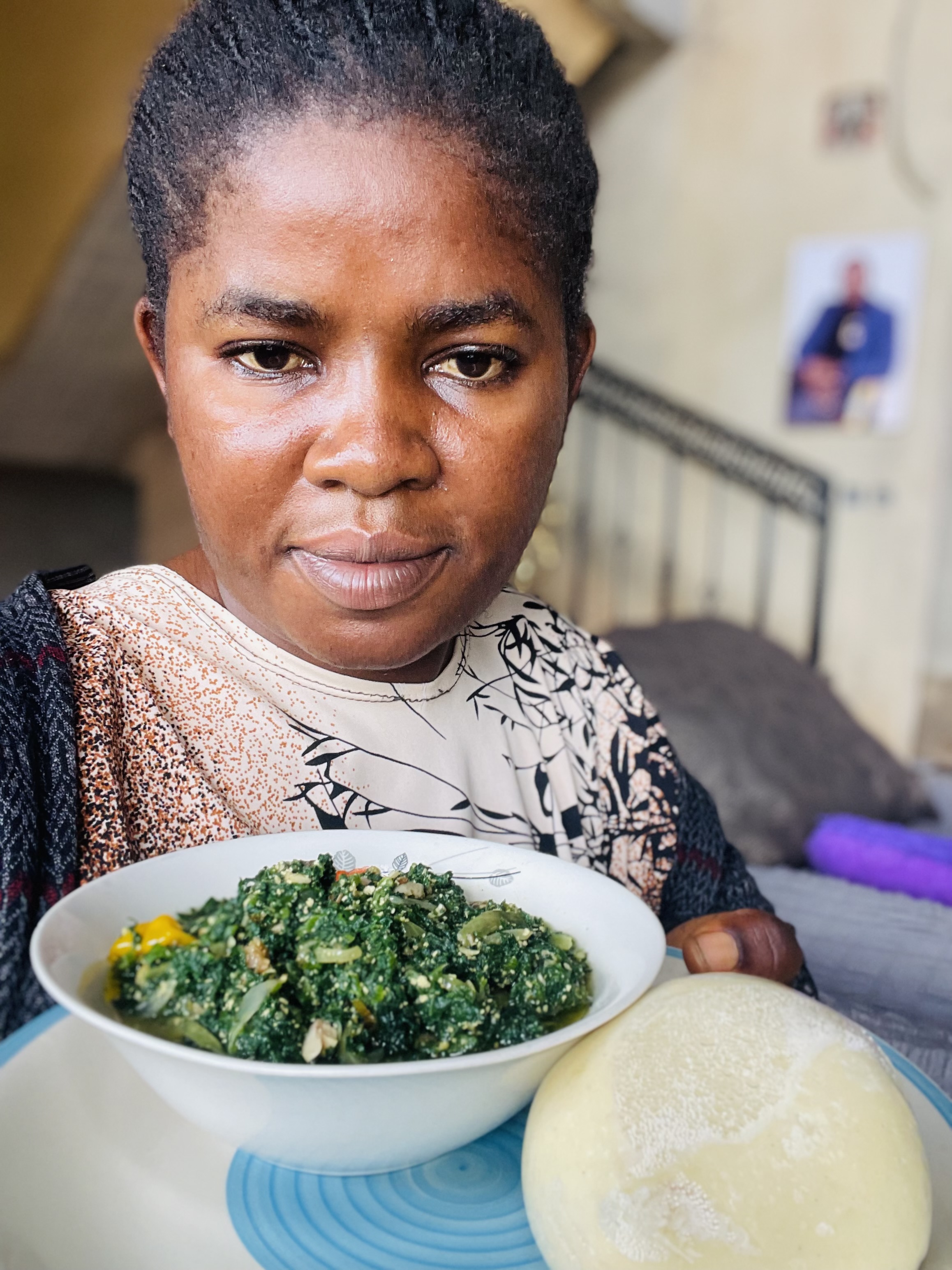 The next thing was to prepare my fufucorn in less than 1 few minutes I was done in preparing fufucorn . I had to settle down and served this delicious pumpkin leaves meal to eat .There was not hesitatation as I enjoyed everything in my pan .
