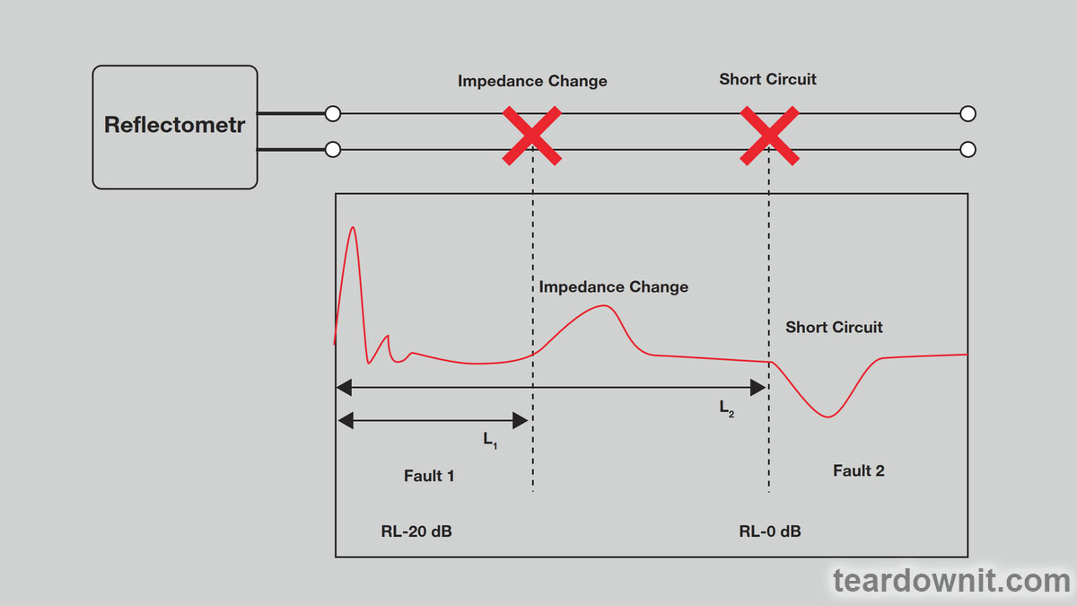 Any damage to the cable leads to a change in impedance, and any change in impedance shows itself in the reflectogram. The amplitude of the reflected signal depends on the degree of impedance change and the distance to the spot of the change occurrence (both the pulse and the reflected signal are attenuated as they propagate along the cable). This fact significantly complicates fault localization. The pulse reflected from the defect will have a lower amplitude on the reflectogram (if the defect is located far from the reflectometer) than signals from other insignificant but closely located inhomogeneities (for example, cable splice points).
