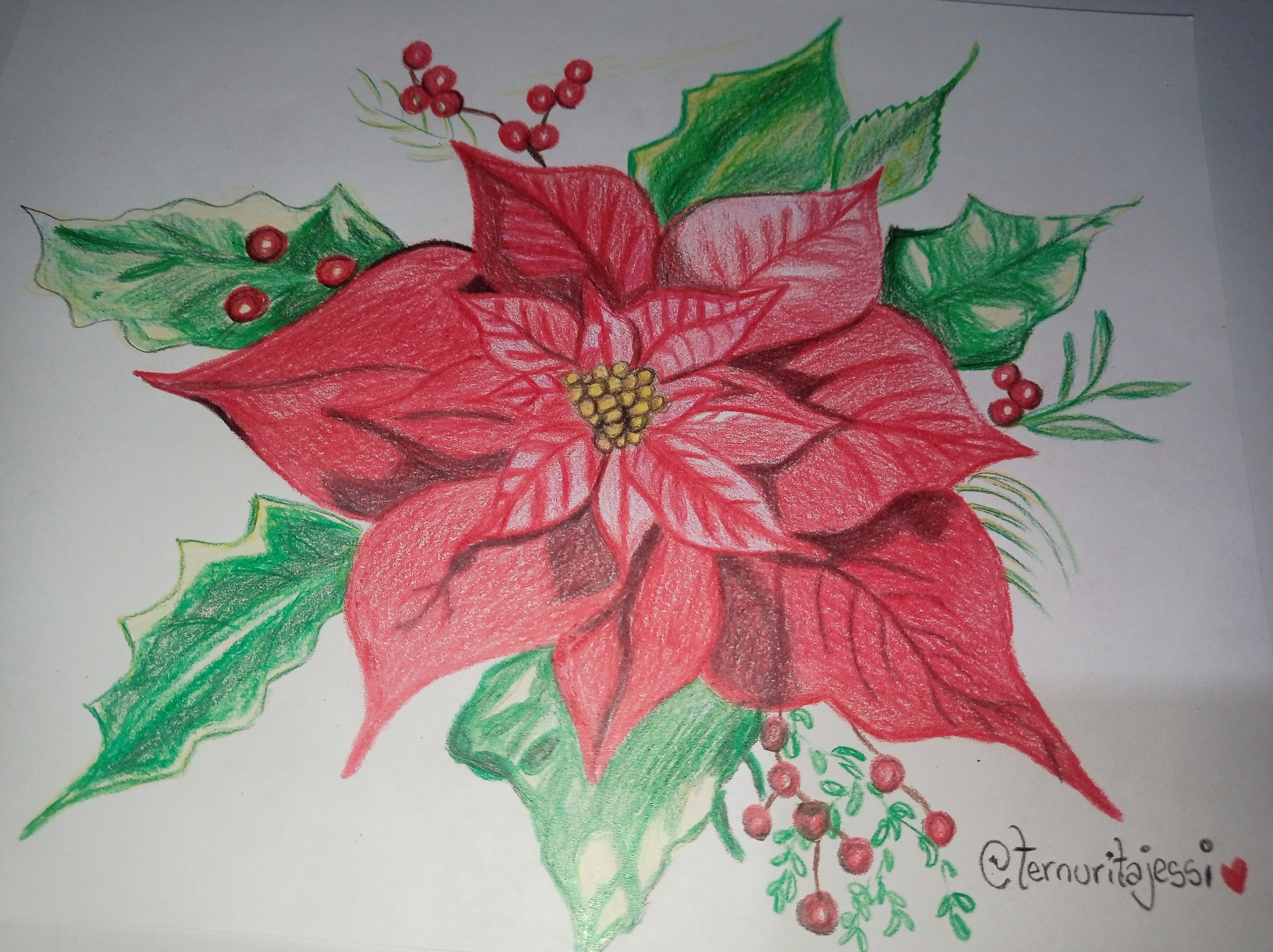 Se nota lo dedicada que eres con los dibujos, eso me recuerda a que en años anteriores mi mama decoraba el árbol de navidad con alguna de estas flores rojas con verdes jaja.