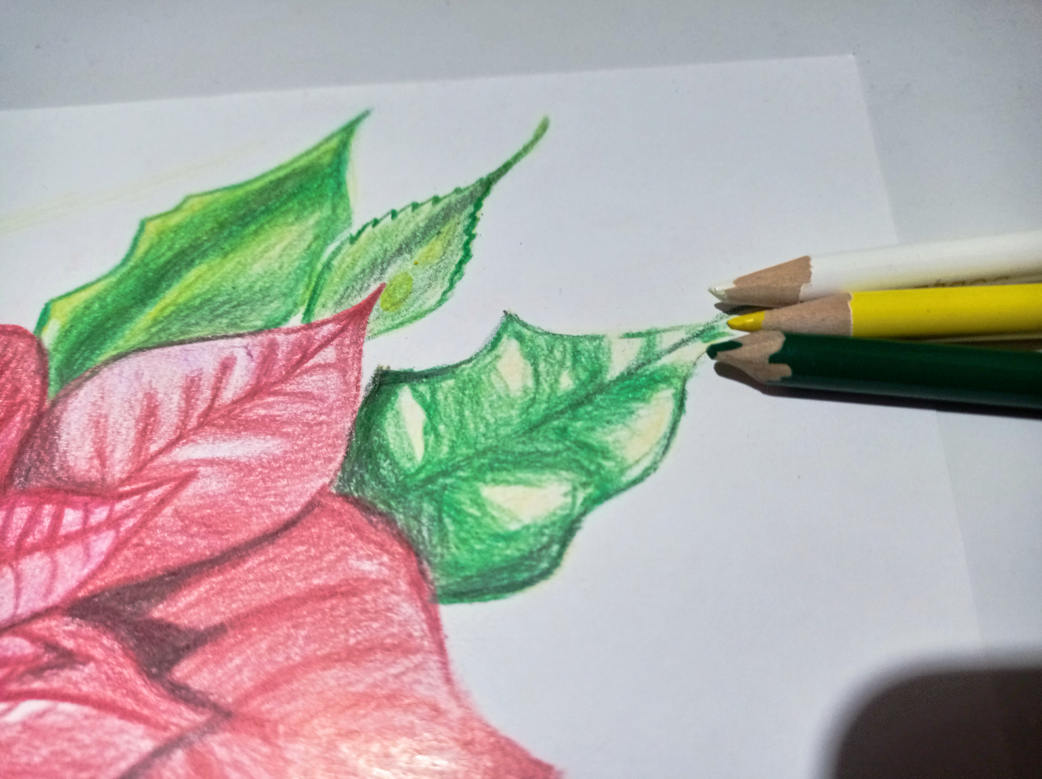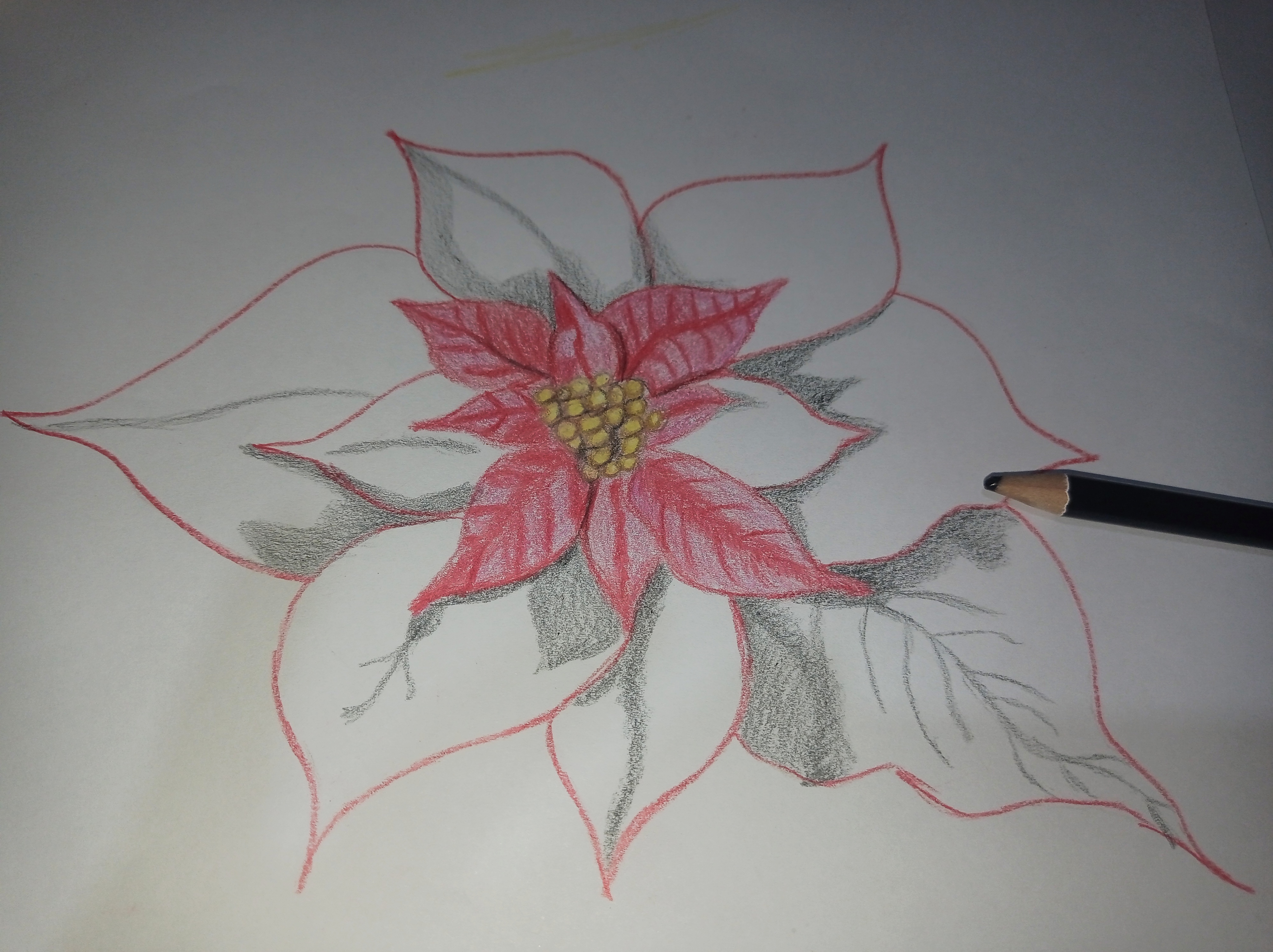 Manos a la obra: Dibujo a lápices de colores Flor de Navidad
