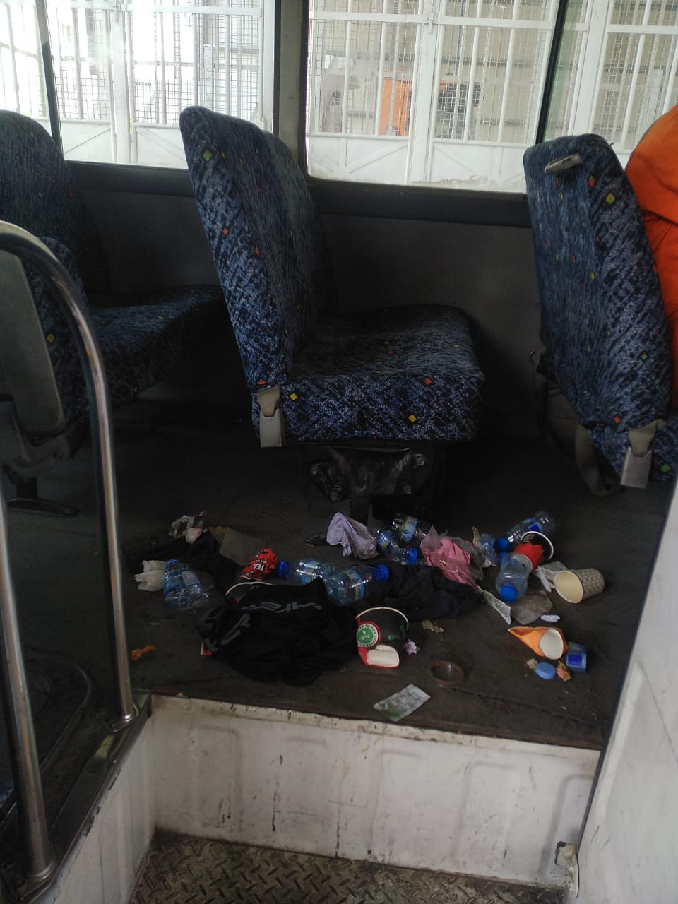 It's ok to use things in the vehicle but I fail to understand why people cannot take away their mess with them and why do they have to leave it behind for others to clean it. We have no separate cleaner for the bus so eventually it was bus driver and the transport coordinator who cleaned it up. They brought the matter late to me; else I would made the people using the bus only clean up the space. Because if they are creating the mess, then they need to clean it up as well.