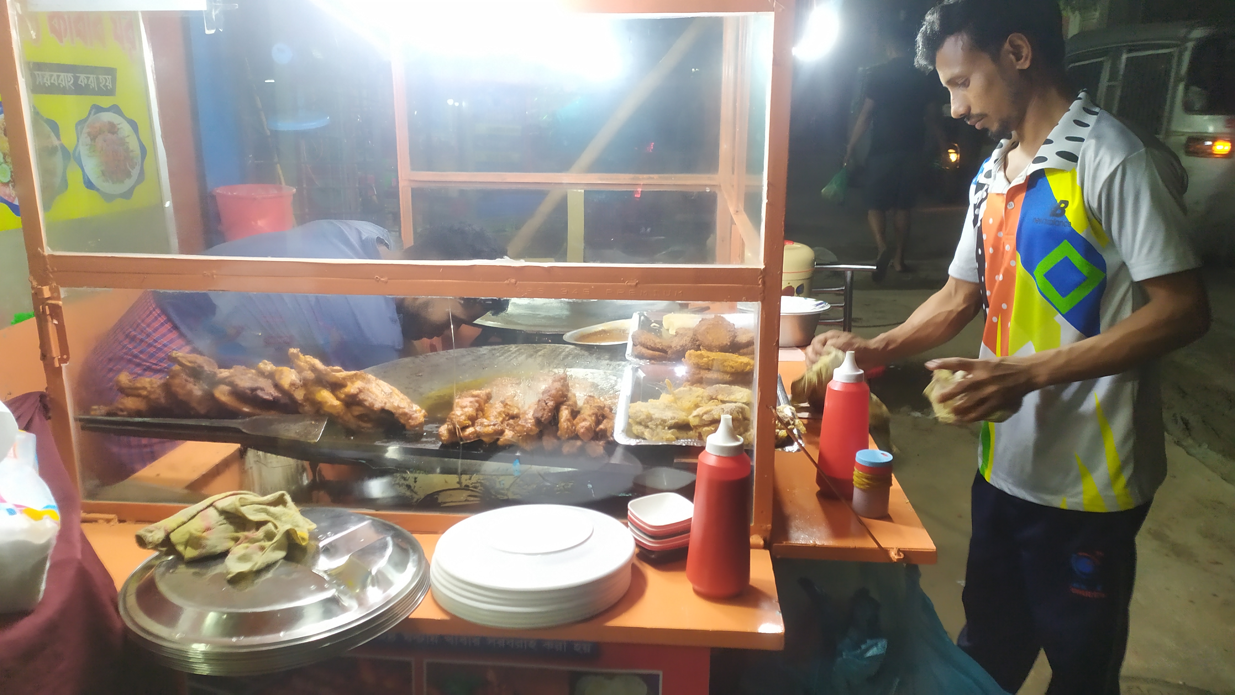 দোকানের দূর থেকে দেখলাম ছেলেরা বেশ ইয়াং এবং সব কিছু পরিস্কার পরিচ্ছন্ন।এই জন্য বেশি আগ্রহ জাগলো। কাছে গিয়ে দেখলাম আসলে ছেলেরা একজন কলেজে এবং একজন ভার্সিটিতে পড়ে।শোনার পর খাবার এর আগ্রহ টা বেড়ে গেল। পড়ে তাদের সাথে গল্প করতে করতে কখন যে খেয়ে ফেললাম অনেক গুলো আইটেম। সবচেয়ে বেশি ভালো লেগেছে তাদের কথা শুনে তাঁরা নিজেরা কাজ করে নিজেদের খরচে পড়াশোনা চালিয়ে যাচ্ছে। আসলে এই ঢাকা শহরে মানুষ কত রকমের তা বোঝার কোন উপায় নেই দূর থেকে।তারা এই বিজনেস করে ভালো চলছে। আমরা বাঙালিরা সমস্যা হচ্ছে লজ্জা। লজ্জা জন্য আমরা পিছিয়ে আছি অন্য দেশের মানুষের কাছে থেকে। তাদের খাবার এর মান গুলো মোটামুটি ভালো ছিল। বেশি ভালো লেগেছে পরিস্কার পরিচ্ছন্নতা দিক দিয়ে ভালো ছিল।
