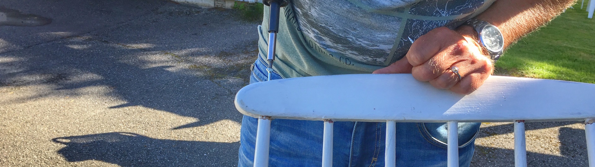With all the loose ends of the rails treated with the utmost precision by my experienced hands, it was time to test-mount the back to the rocking chair.