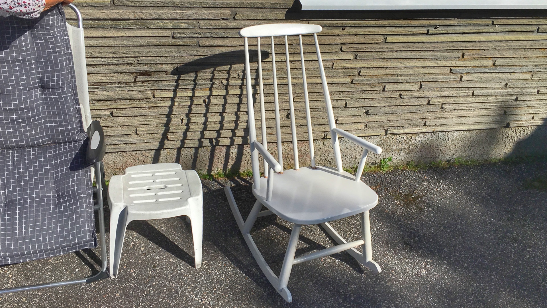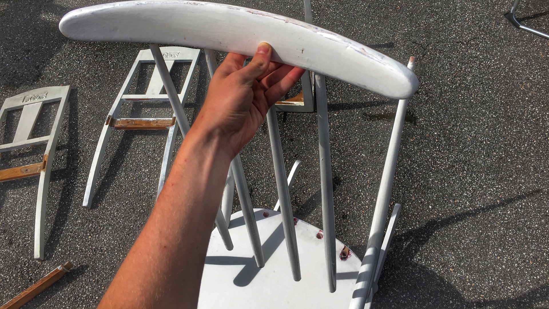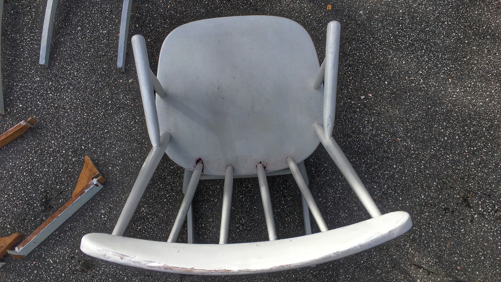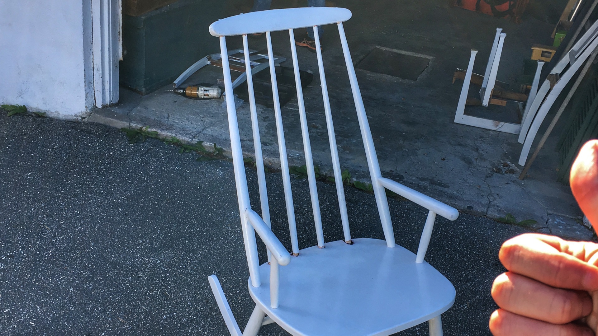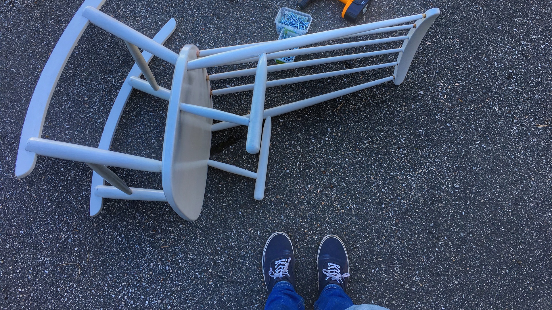 The rocking chair in question had a back which it didn't have anymore, since the rails forming the back had had their mounting points broken.